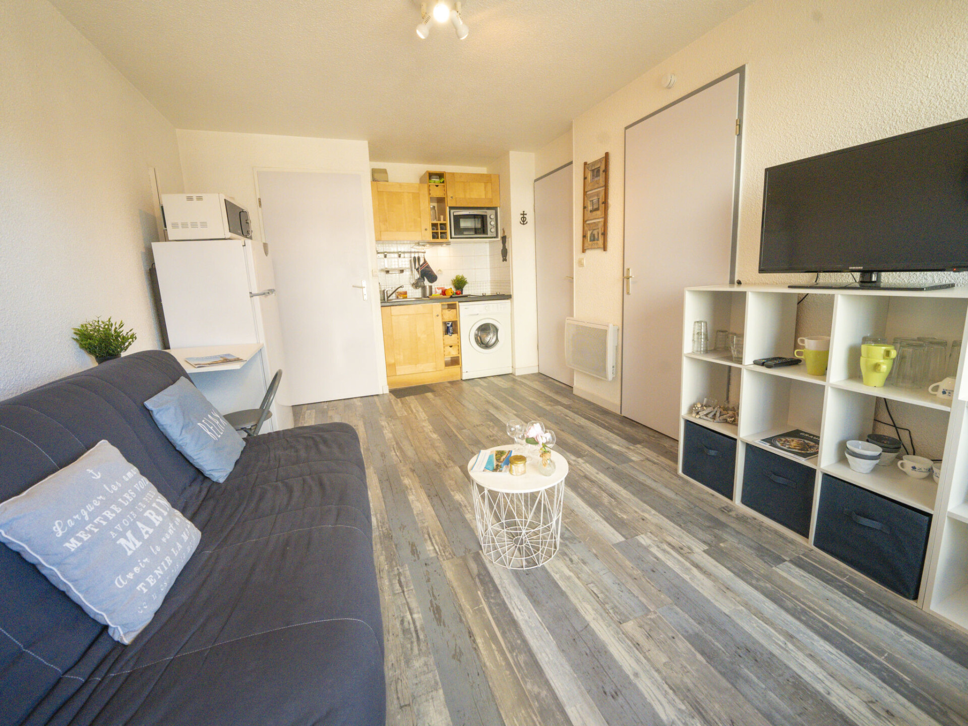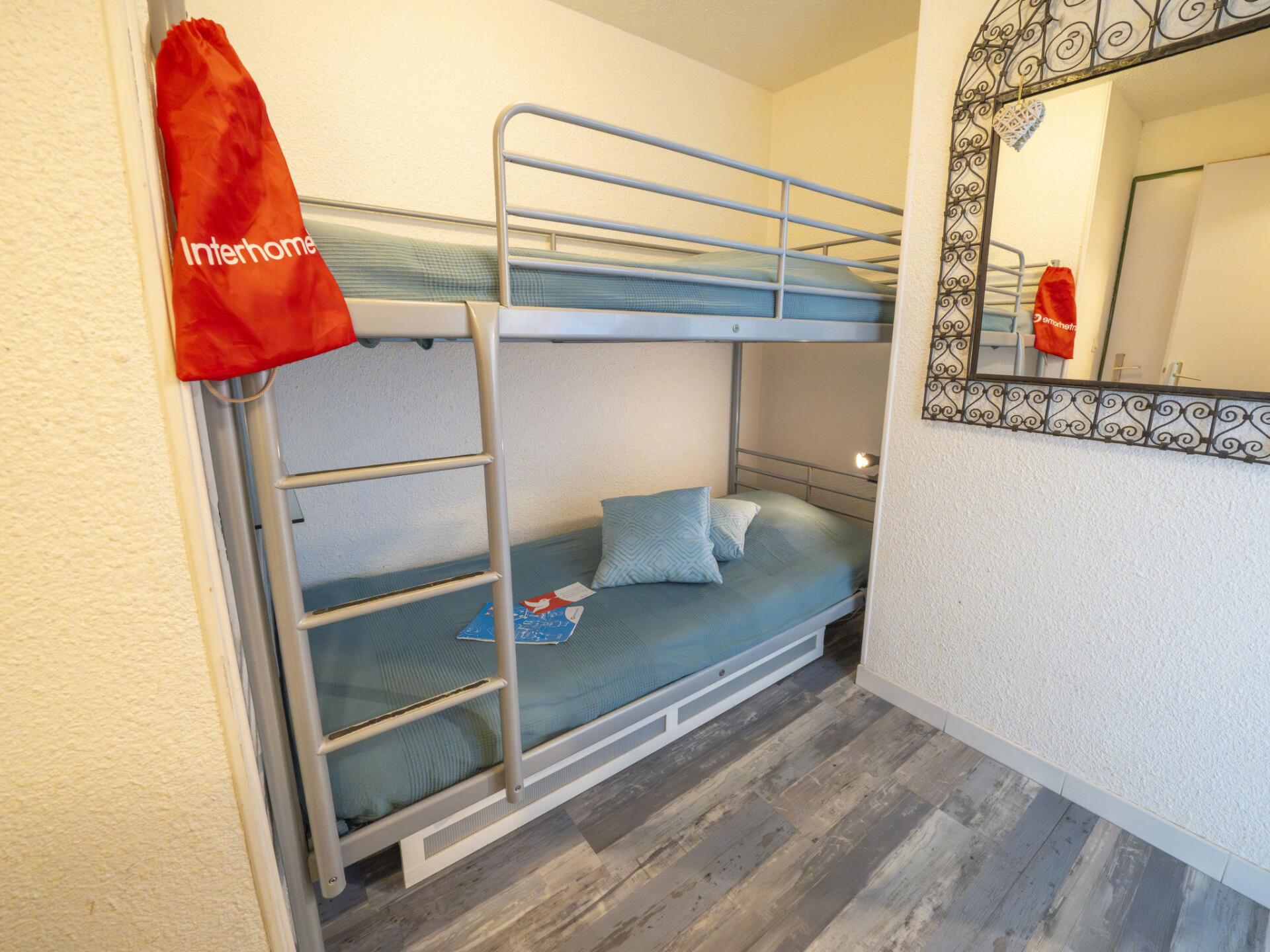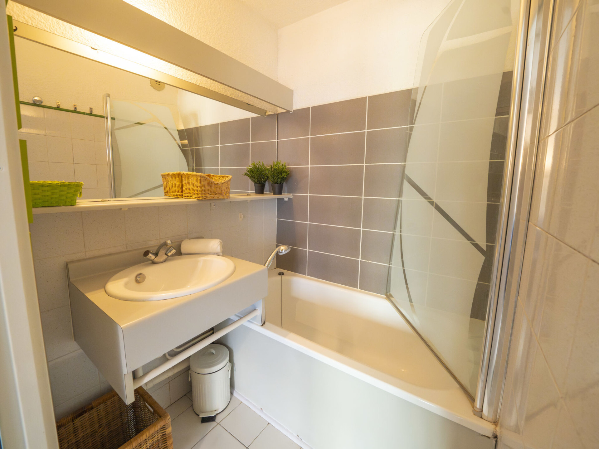 "Les Terrasses du Lac", appartement 2-kamers 28 m2 op de 1e verdieping, op het noordoosten gelegen. Het objekt is geschikt voor 2 volwassenen + 2 kinderen. Licht, mooi ingericht: woon-/eetkamer met kookhoek, bad/WC, aparte WC en TV (Flatscreen TV), elektrische kachel en ventilator. Uitgang naar het balkon. 1 kleine kamer 10 m2 met 1 bed (140 cm, lengte 190 cm). Cabine 6 m2, zonder ramen met 1 x 2 stapelbedden (90 cm, lengte 190 cm). Balkon 10 m2, op het noorden gelegen en op het oosten gelegen. Terrasmeubelen, loggia. Beperkt uitzicht op het meer. Ter beschikking: wasmachine. Internet (WiFi, gratis). Parkeerplaats nr. 23 (1 Auto). Niet rokers woning. Maximaal 1 huisdier/hond toegestaan. Rookmelders. Aanbod door een particulier volgens art. 155, IV van CGI. 30133000783I3