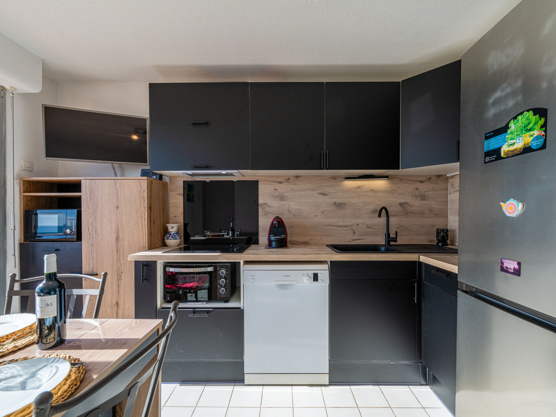 Appartement 3-kamers 40 m2 op de 4e verdieping, op het zuidoosten gelegen. Volledig gerenoveerd in 2024, doelmatig en mooi ingericht: woon-/eetkamer met TV. Uitgang naar het terras. 1 kamer met 1 2-pers bed (140 cm). Uitgang naar het terras. 1 kamer met 2 bedden (90 cm). Kookhoek (4-pits kookplaat, mini-oven, afwasmachine, magnetron, diepvriezer, elektrische koffiemachine, pads voor de koffiemachine (Nespresso) extra). Douche, aparte WC. Elektrische verwarming, air-conditioning. Balkon 10 m2, op het zuidoosten gelegen. Terrasmeubelen. Mooi panoramazicht op zee. Ter beschikking: haardroger. Internet (Internet (WiFi), extra). Parkeerplaats. Rookmelders. Aanbod door een particulier volgens art. 155, IV van CGI. FR48263