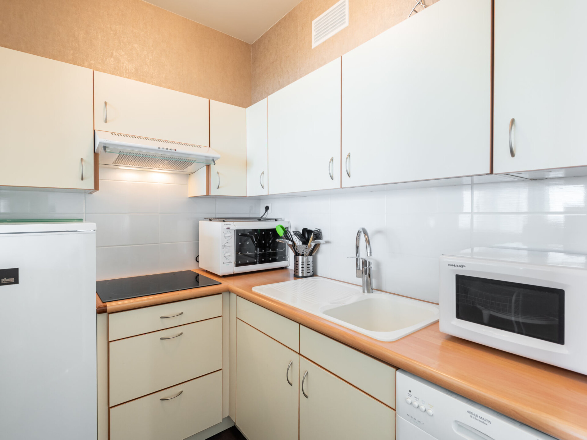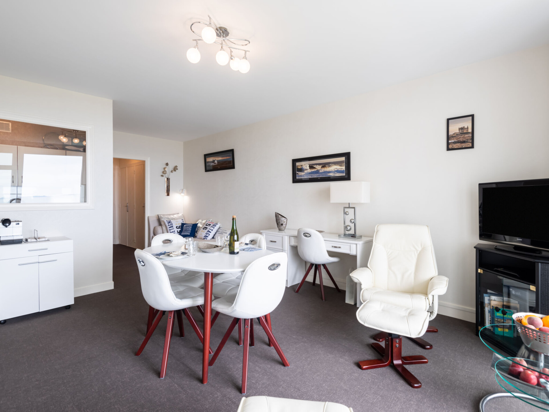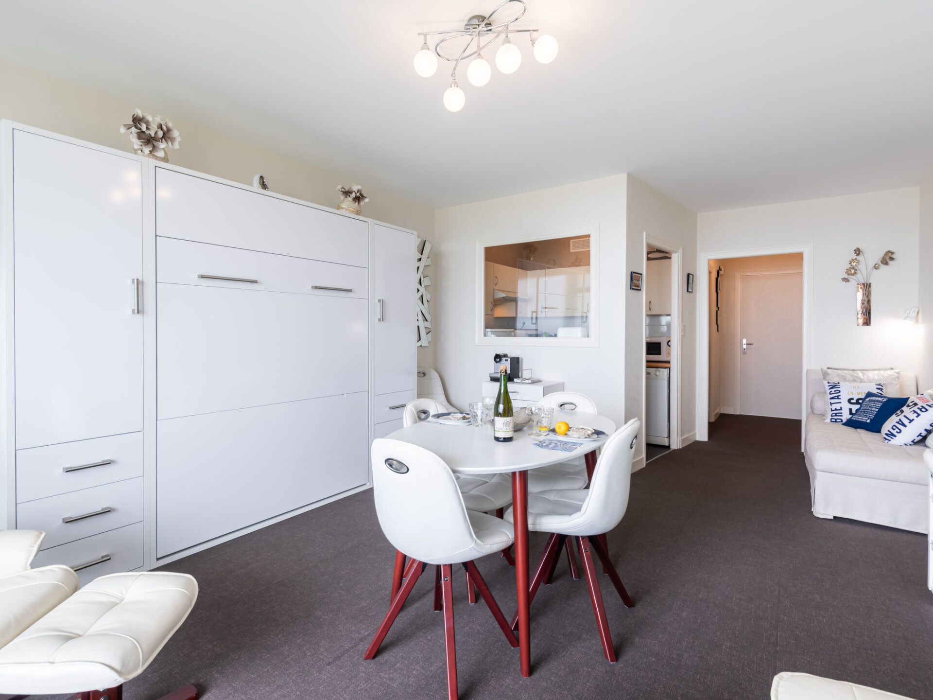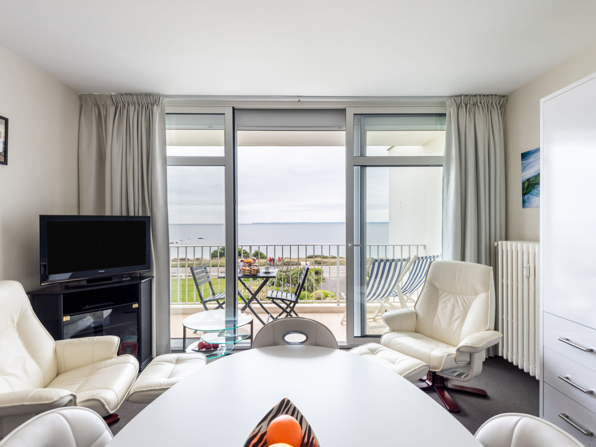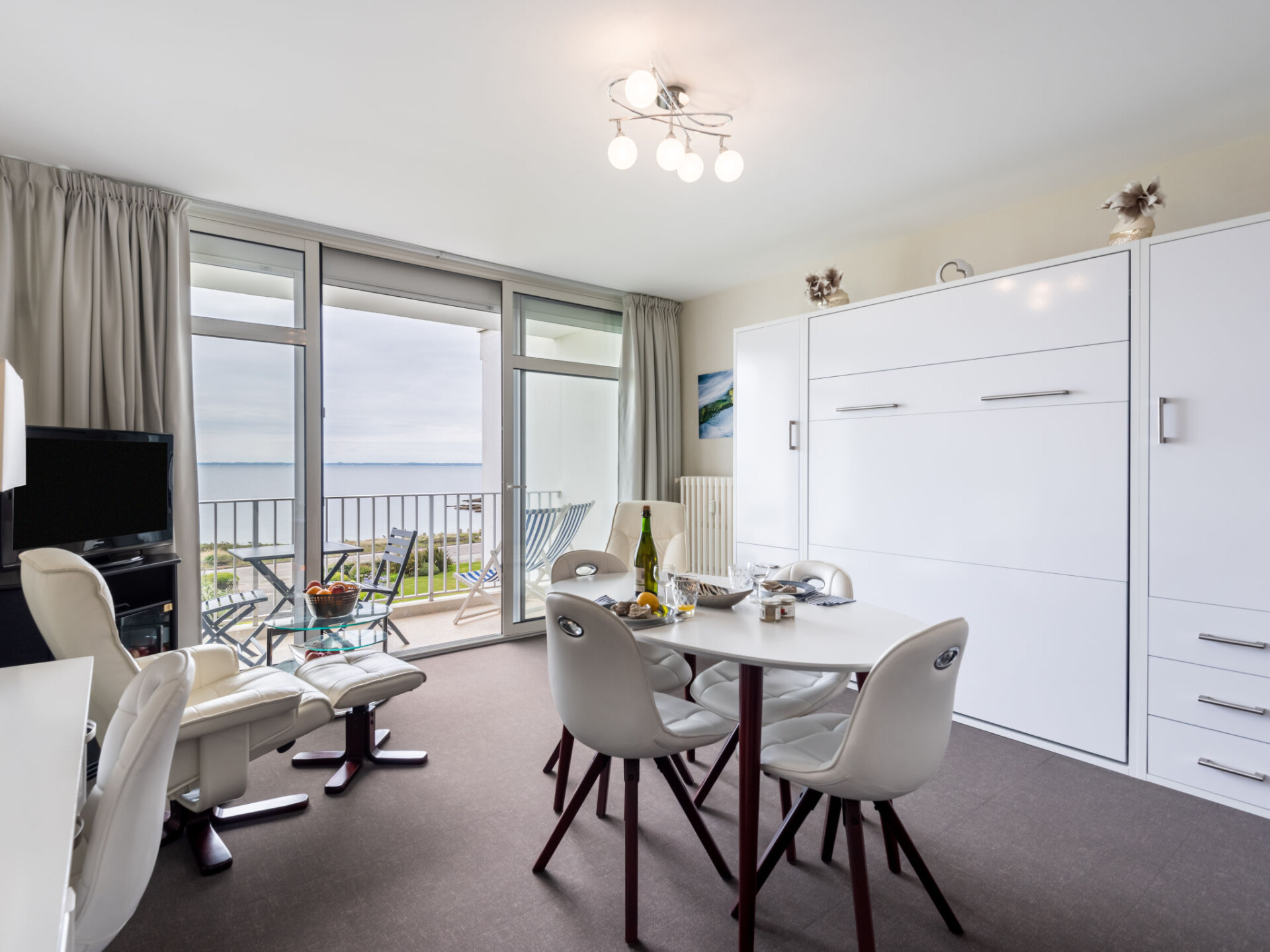Appartement 1-kamer 33 m2 op de 2e verdieping. Comfortabel ingericht: woon-/eetkamer met 1 2-pers kastbed (1 x 140 cm, lengte 190 cm), TV (Flatscreen TV). Uitgang naar het balkon. Keuken (afwasmachine, 3 inductiekookplaten, waterkoker, elektrische koffiemachine). Douche/WC. Verwarming. Balkon. Balkonmeubilair. Mooi uitzicht op zee. Ter beschikking: wasmachine. Internet (WiFi, gratis). Parkeerplaats. Rookmelders. 56186 000751 2N