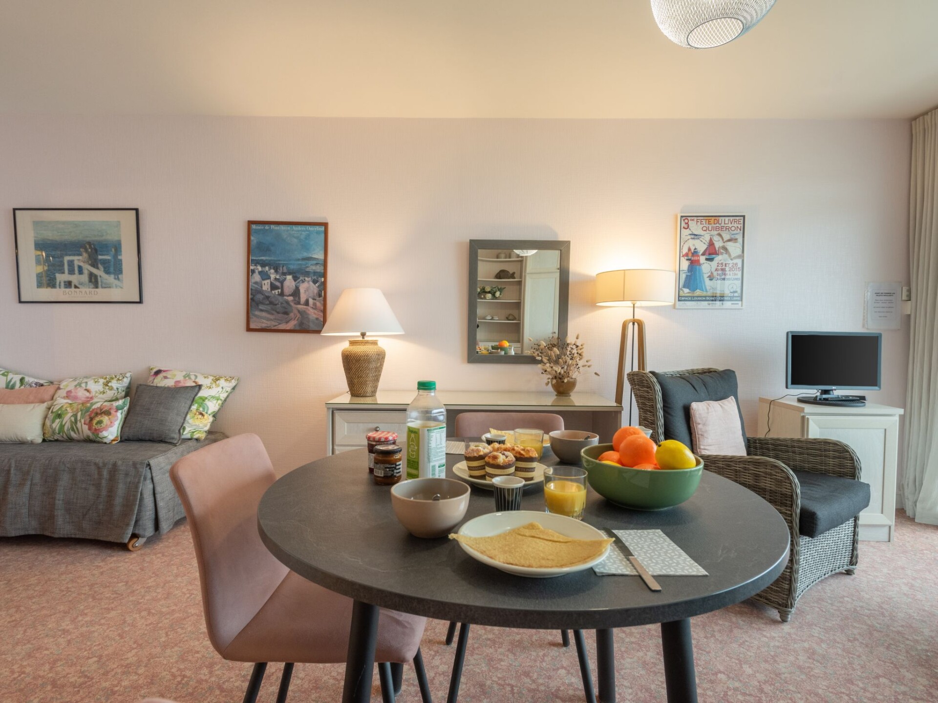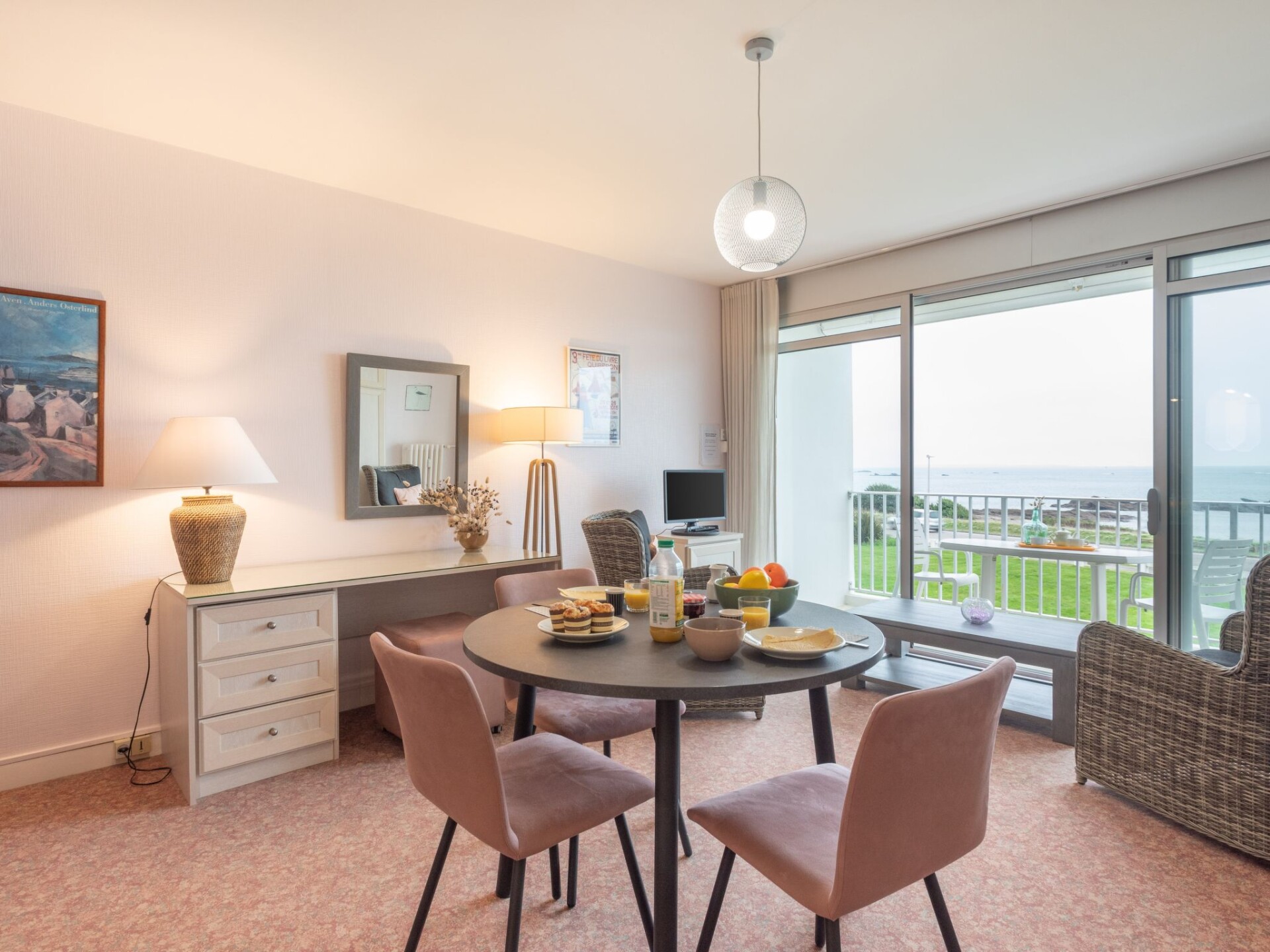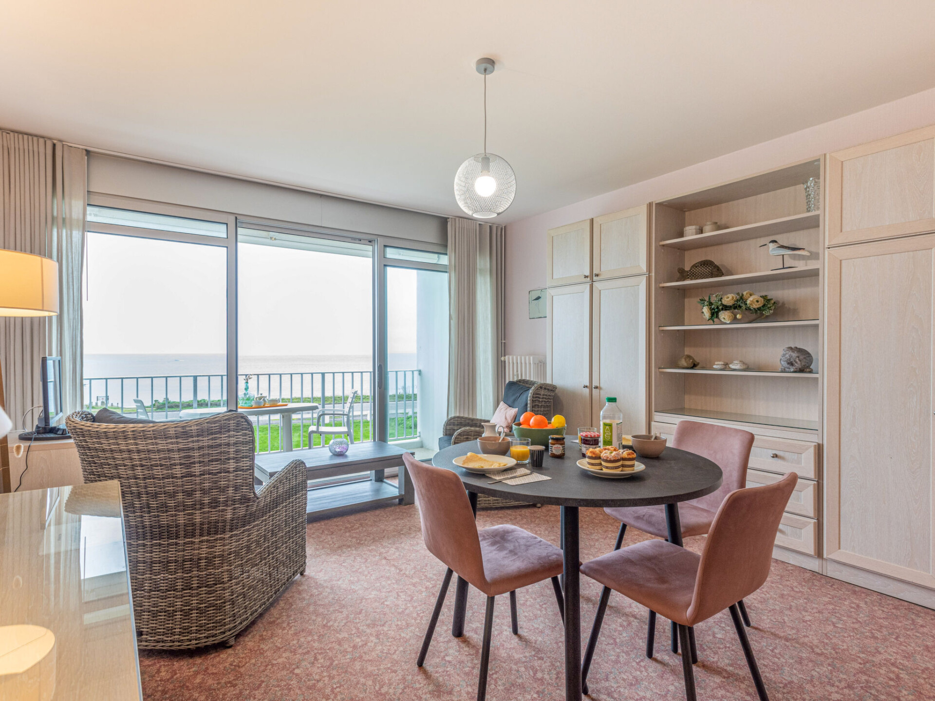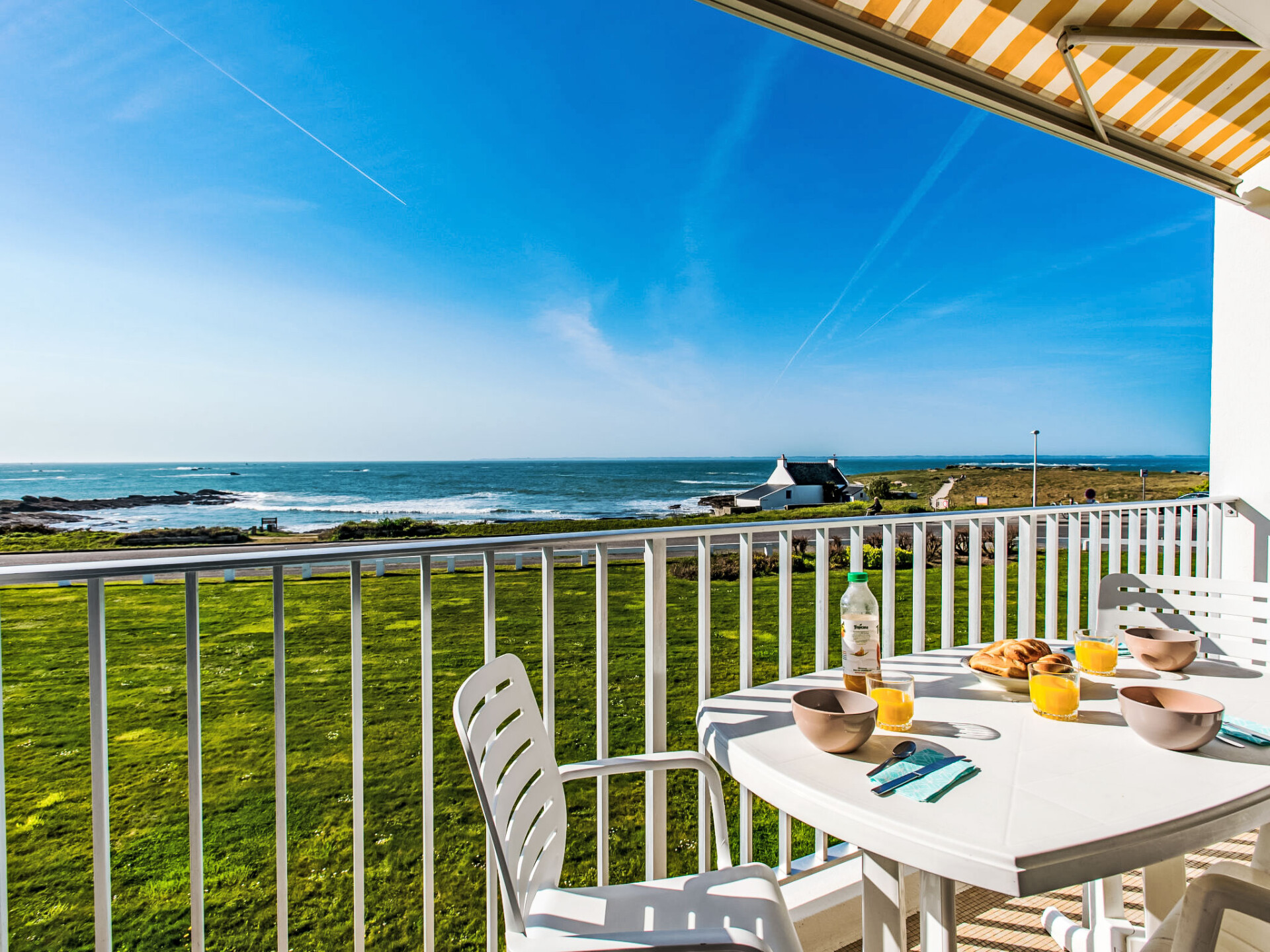 Quiberon: Kleine residentie "Les Trois Iles", van 2 verdiepingen. In de plaats, 2 km van het centrum van Quiberon, rustige ligging, 20 m van zee, 30 m van het strand. Parkeerplaats. Winkel 1.5 km, levensmiddelenwinkel 2 km, supermarkt 2.4 km, restaurant 2 km, bushalte 200 m, treinstation "Quiberon" 2.5 km, veerboot "Port Maria" 2.5 km, zandstrand "Plage du Conguel" 600 m, thermaalbad "Thalassothérapie de Quiberon" 200 m. Jachthaven 3 km, golfterrein (9 holes) 500 m, zeilschool 3 km. Attracties in de buurt: Presqu'ile de Quiberon et côte sauvage 3 km, Gare maritime les iles Houat, Hoedic. 3 km, Les alignements de Carnac 26 km, Auray et le port de St Goustan 33 km, Vannes 48 km, Lorient 63 km. De sleuteloverdracht vindt plaats bij het agentschap Interhome in Quiberon, 2 km.