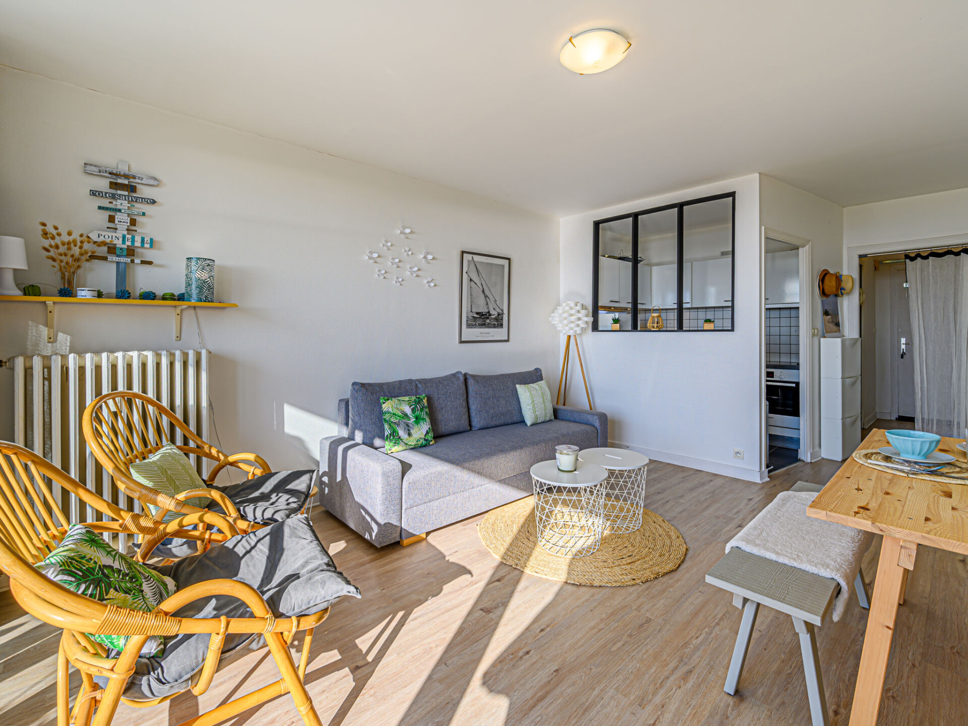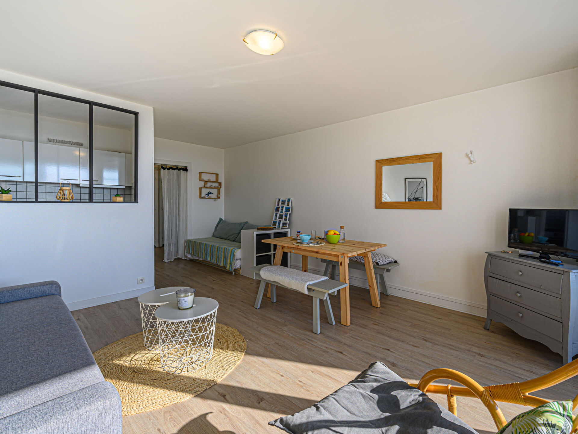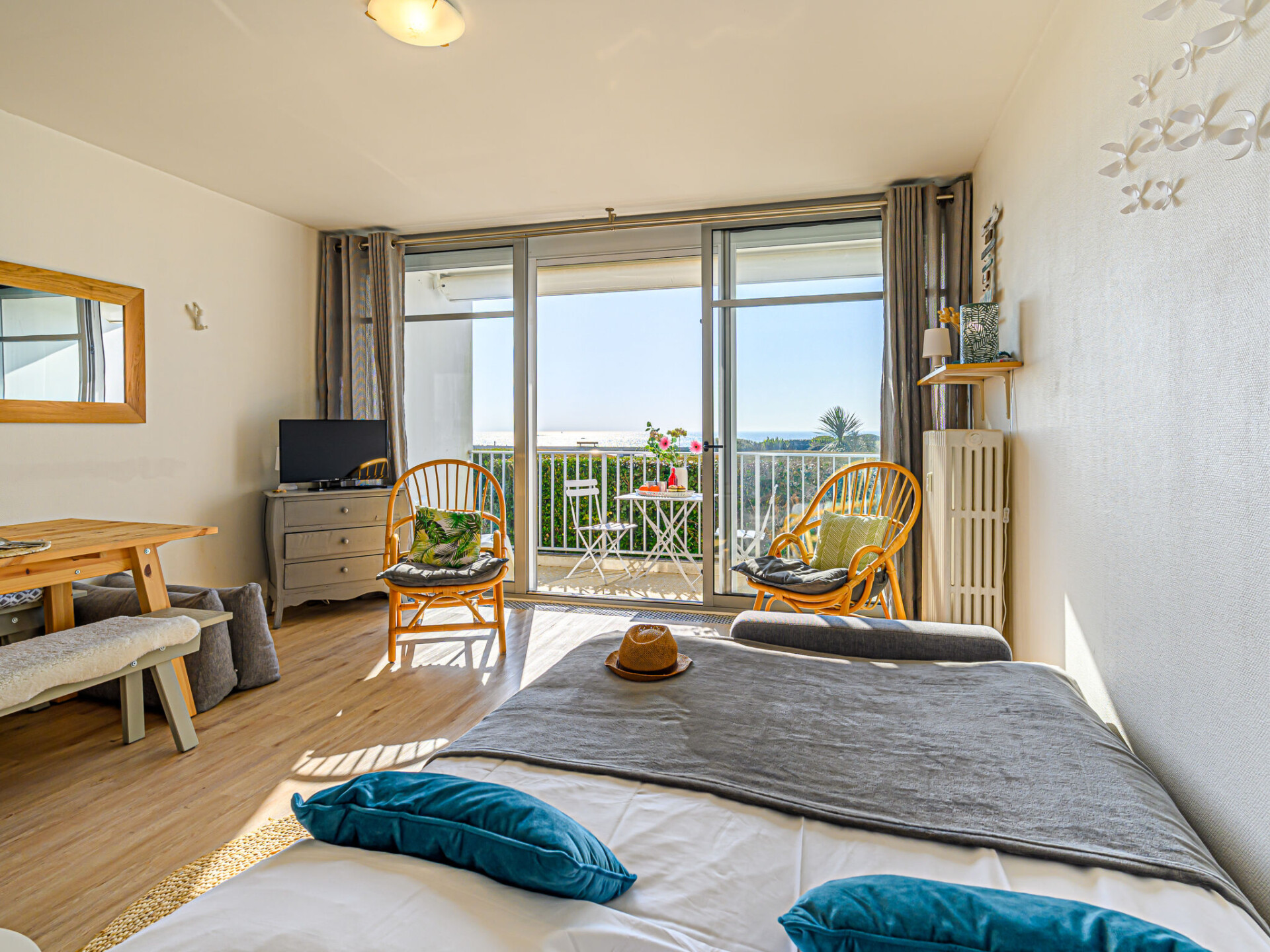 Studio 1-kamer 33 m2, op verhoogde begane grond. Comfortabel ingericht: woon-/eetkamer met 1 2-pers divanbed (1 x 140 cm, lengte 190 cm), TV (Flatscreen TV). Uitgang naar het terras. Keuken (2 keramische glas kookplaten, broodrooster, waterkoker, elektrische koffiemachine, combimagnetron). Douche/WC. Gas-verwarming. Terras 6 m2, op het oosten gelegen. Terrasmeubelen. Mooi uitzicht op zee. Ter beschikking: strijkijzer, haardroger. Internet (WiFi, gratis). Parkeerplaats. Rookmelders. Aanbod door een particulier volgens art. 155, IV van CGI. 56186 000533 57