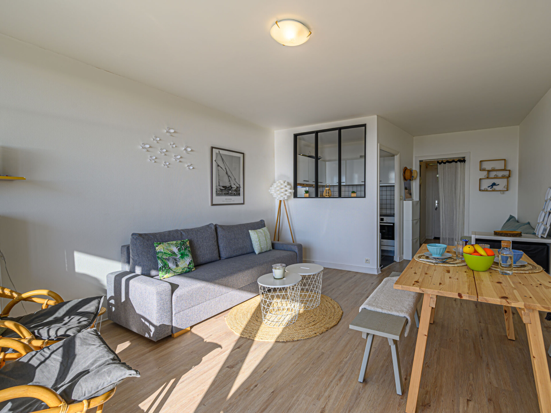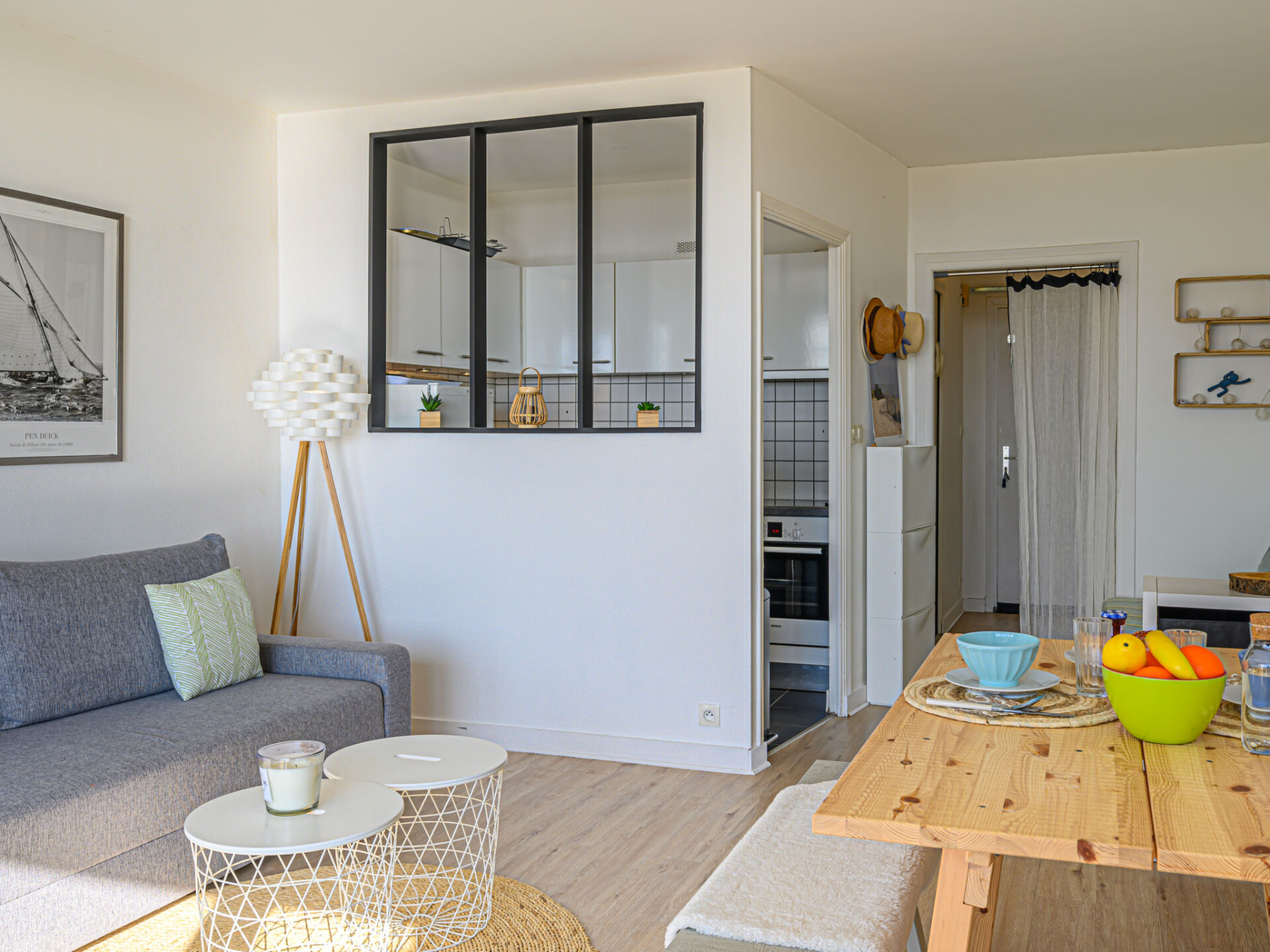 Quiberon: Kleine residentie "Les Trois Iles", van 2 verdiepingen. In de plaats, 2 km van het centrum van Quiberon, rustige ligging, 20 m van zee, 30 m van het strand. Parkeerplaats. Winkel 1.5 km, levensmiddelenwinkel 2 km, supermarkt 2.4 km, restaurant 2 km, bushalte 200 m, treinstation "Quiberon" 2.5 km, veerboot "Port Maria" 2.5 km, zandstrand "Plage du Conguel" 600 m, thermaalbad "Thalassothérapie de Quiberon" 200 m. Jachthaven 3 km, golfterrein (9 holes) 500 m, zeilschool 3 km. Attracties in de buurt: Presqu'ile de Quiberon et côte sauvage 3 km, Gare maritime les iles Houat, Hoedic. 3 km, Les alignements de Carnac 26 km, Auray et le port de St Goustan 33 km, Vannes 48 km, Lorient 63 km. De sleuteloverdracht vindt plaats bij het agentschap Interhome in Quiberon, 2 km.
