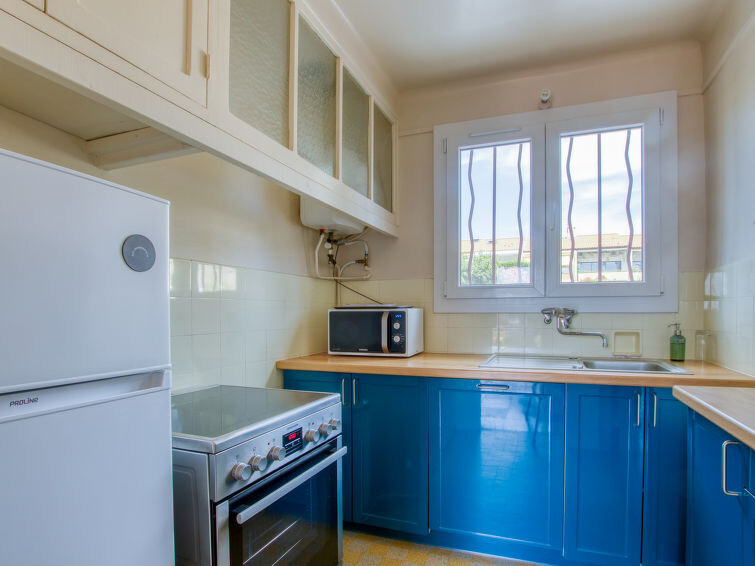 Les Lecques: Residentie "Les Vagues", van 2 verdiepingen. In de plaats, 500 m van het centrum van des Lecques, 50 m van zee, de straat oversteken. Parkeerplaats. Winkel 500 m, supermarkt 1.5 km, restaurant, café 400 m, bushalte "Le Viguier" 1.2 km, treinstation "Saint Cyr les Lecques-La Cadière" 2.1 km, zandstrand "Les lecques" 50 m. Golfterrein (18 holes) 5 km, tennis 2 km. Attracties in de buurt: aqualand 2 km. Wandelgebied Sainte Baume, Sainte Victoire, Calanques Port-Cros, Porquerolles, Ile verte, Embiez, Figuerolles, Cassis. De sleuteloverdracht vindt plaats bij het agentschap INTERHOME in St Cyr sur mer, 2 km.