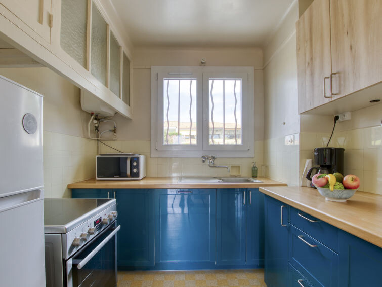 Appartement 2-kamers 46 m2, op de begane grond. Licht, mooi ingericht: woon-/eetkamer met 1 2-pers divanbed (140 cm, lengte 190 cm), open haard (alleen decoratie), TV (Flatscreen TV). Uitgang naar de zitplaats in de tuin, op het zuidwesten. 1 kamer met 1 2-pers bed (160 cm, lengte 200 cm). Keuken (oven, afwasmachine, 4 keramische glas kookplaten, broodrooster, magnetron, diepvriezer, elektrische koffiemachine). Douche/WC. Elektrische verwarming. Terrasmeubelen. Uitzicht in de verte op zee. Ter beschikking: wasmachine. Internet (WiFi, gratis). TV alleen FR. Rookmelders. Aanbod door een particulier volgens art. 155, IV van CGI. 83115000830Q1