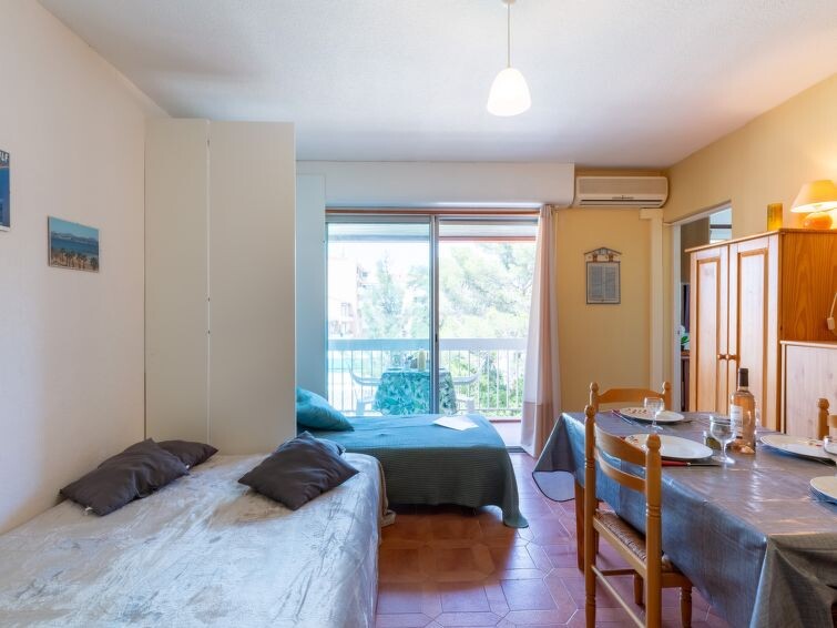 Residentie "L'Espelido". In het centrum van Saint Aygulf, 250 m van zee, 1.3 km van het strand. Winkel 100 m, winkelcentrum 5 km, bushalte "Saint-Aygulf La Poste" 170 m, treinstation "Fréjus" 6 km, zandstrand "Grandes Plages de St Aygulf" 1.3 km kiezelstrand 250 m, park "Areca" 300 m, duikschool 6 km, thermaalbad "Thalasso de Port Fréjus" 6 km. Jachthaven 800 m, golfterrein (18 holes) 8 km, zeilschool 7 km, manege 1 km, sportcentrum 50 m. Attracties in de buurt: Aqualand Lunapark 5 km, Fréjus 6 km, Saint Raphaël 8 km, St Tropez 30 km, Cannes 45 km, Nice 71 km. Bekende skigebieden kunnen gemakkelijk worden bereikt: Auron, Isola 2000 150 km. Bekende meren kunnen gemakkelijk worden bereikt: Lac de St Cassien 45 km, Lac du Du Verdon 90 km. Wandelgebied Estérel 16 km, Sentier du Littoral 25 m. Gesloten residentie met een elektrische deur. De sleuteloverdracht vindt plaats bij het agentschap Interhome in Saint Aygulf.