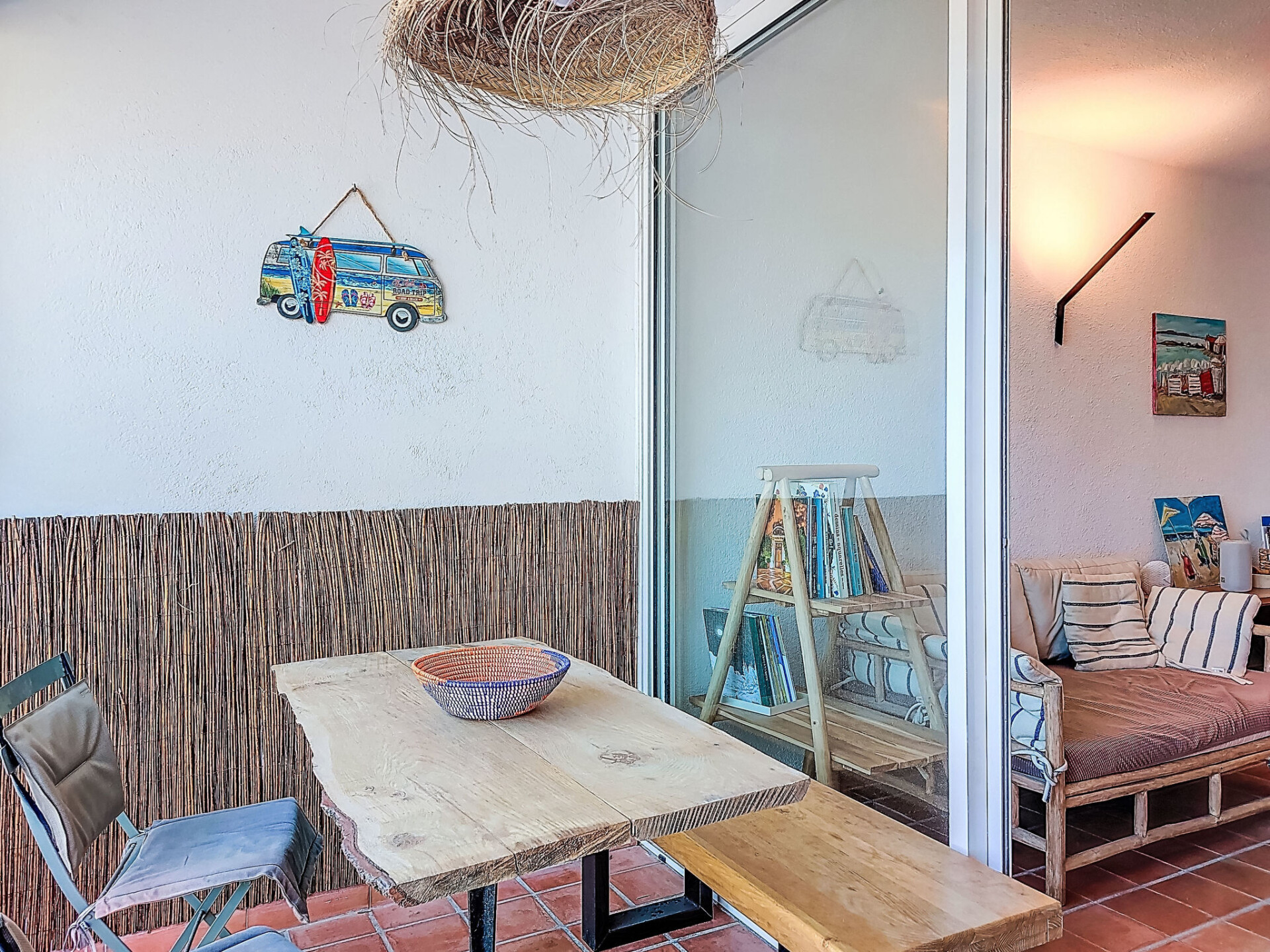 Appartement 3-kamers 50 m2 op de 1e verdieping, op het oosten gelegen. Licht, comfortabel ingericht: woon-/eetkamer met TV (Flatscreen TV), ventilator. Uitgang naar het balkon. 1 kamer met 1 2-pers bed (140 cm, lengte 190 cm). 1 kamer met 1 x 2 stapelbedden (80 cm, lengte 190 cm), 1 uitschuifbaar bed (2 x 80 cm, lengte 190 cm). Kookhoek (4-pits kookplaat, mini-oven, afwasmachine, broodrooster, waterkoker, magnetron, elektrische koffiemachine). Badkamer, aparte WC. Elektrische verwarming. Balkon 7 m2, op het oosten gelegen. Balkonmeubilair. Mooi uitzicht op zee. Ter beschikking: wasmachine, strijkijzer, haardroger. Internet (WiFi, extra). Parkeerplaats op 350 m. Geschikt voor families. Niet rokers woning. Maximaal 1 huisdier/hond toegestaan. TV alleen FR. Rookmelders, geen lift. Aanbod door een particulier volgens art. 155, IV van CGI. 830700023763J