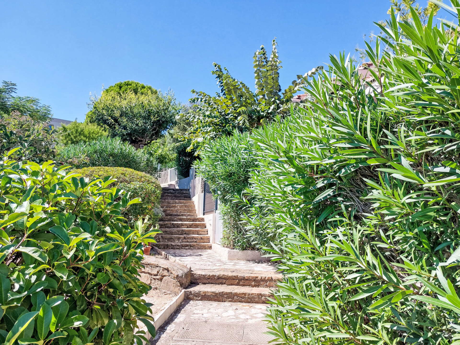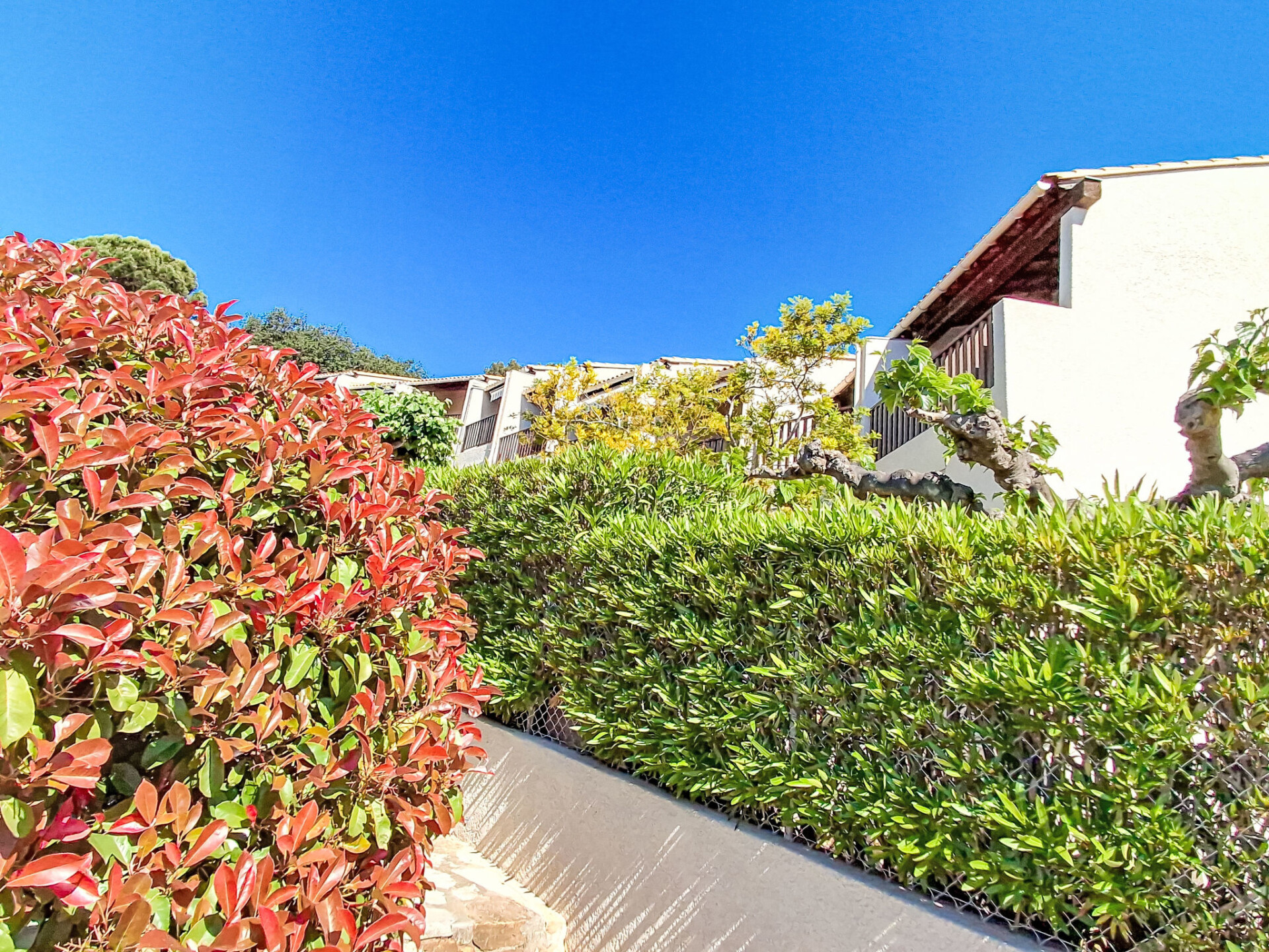 Residentie "L'Olympie". 500 m van zee. Trappenweg (15 treden) naar het huis. Parkeerplaats (beperkt aantal). Winkel, levensmiddelenwinkel, restaurant, bakkerij 500 m, bushalte 1 km, kiezelstrand 500 m. Golfterrein (18 holes) 15 km. Wandelgebied Sainte Baume, Sainte Victoire, Calanques Port-Cros, Porquerolles, Ile verte, Embiez, Figuerolles, Cassis. De sleuteloverdracht vindt plaats bij het agentschap Interhome in SIX FOURS LES PLAGES, 2 km.