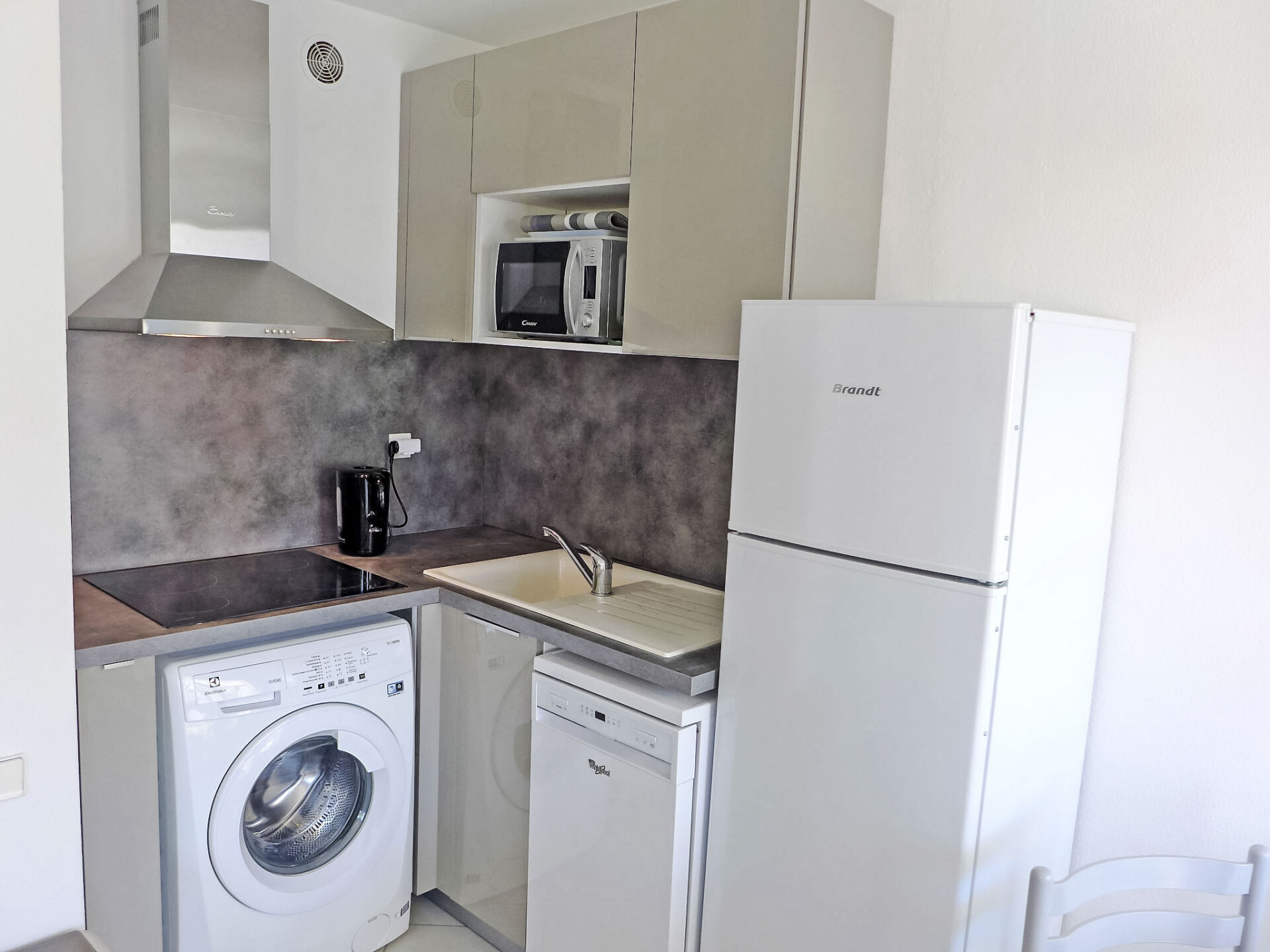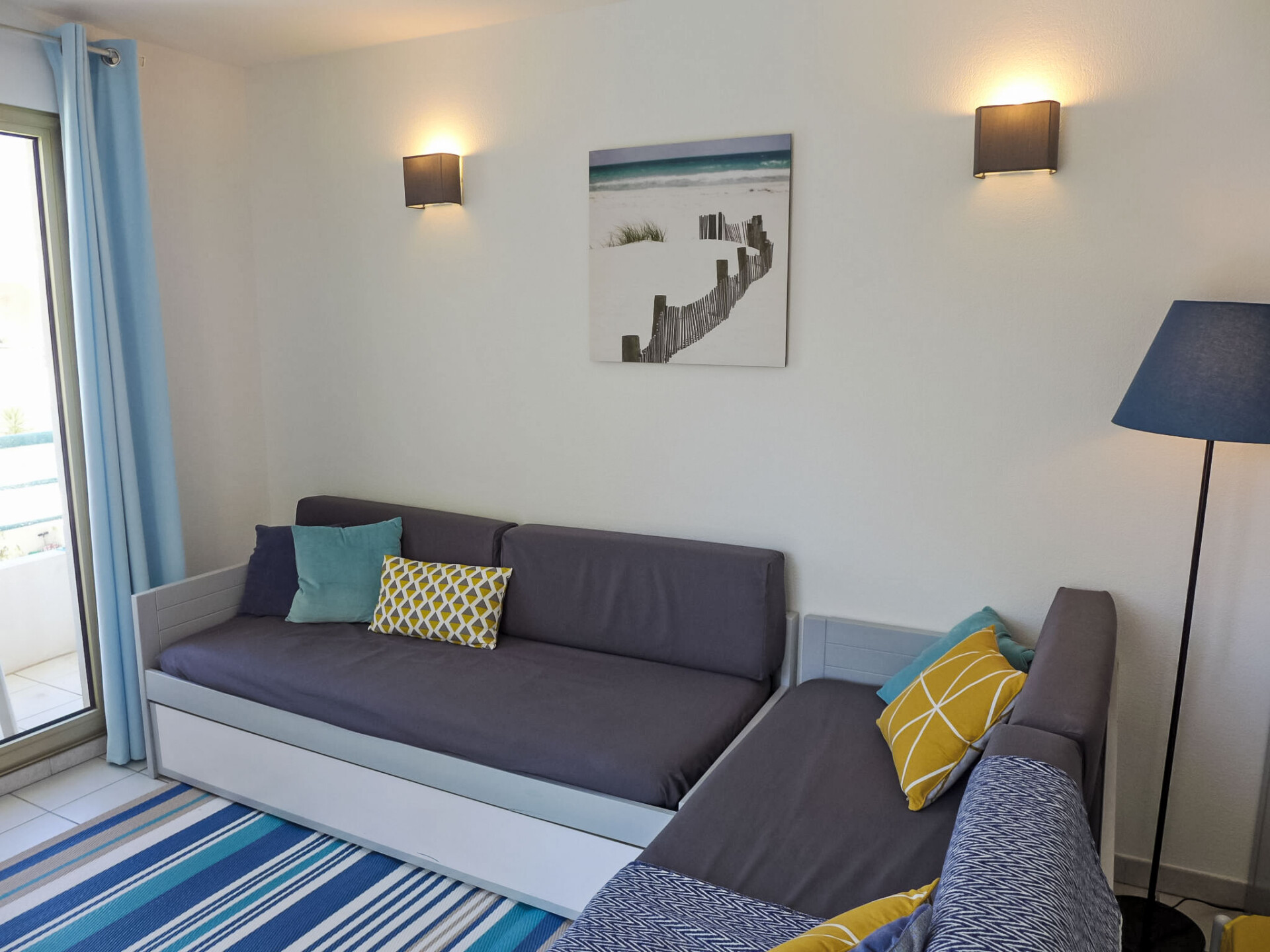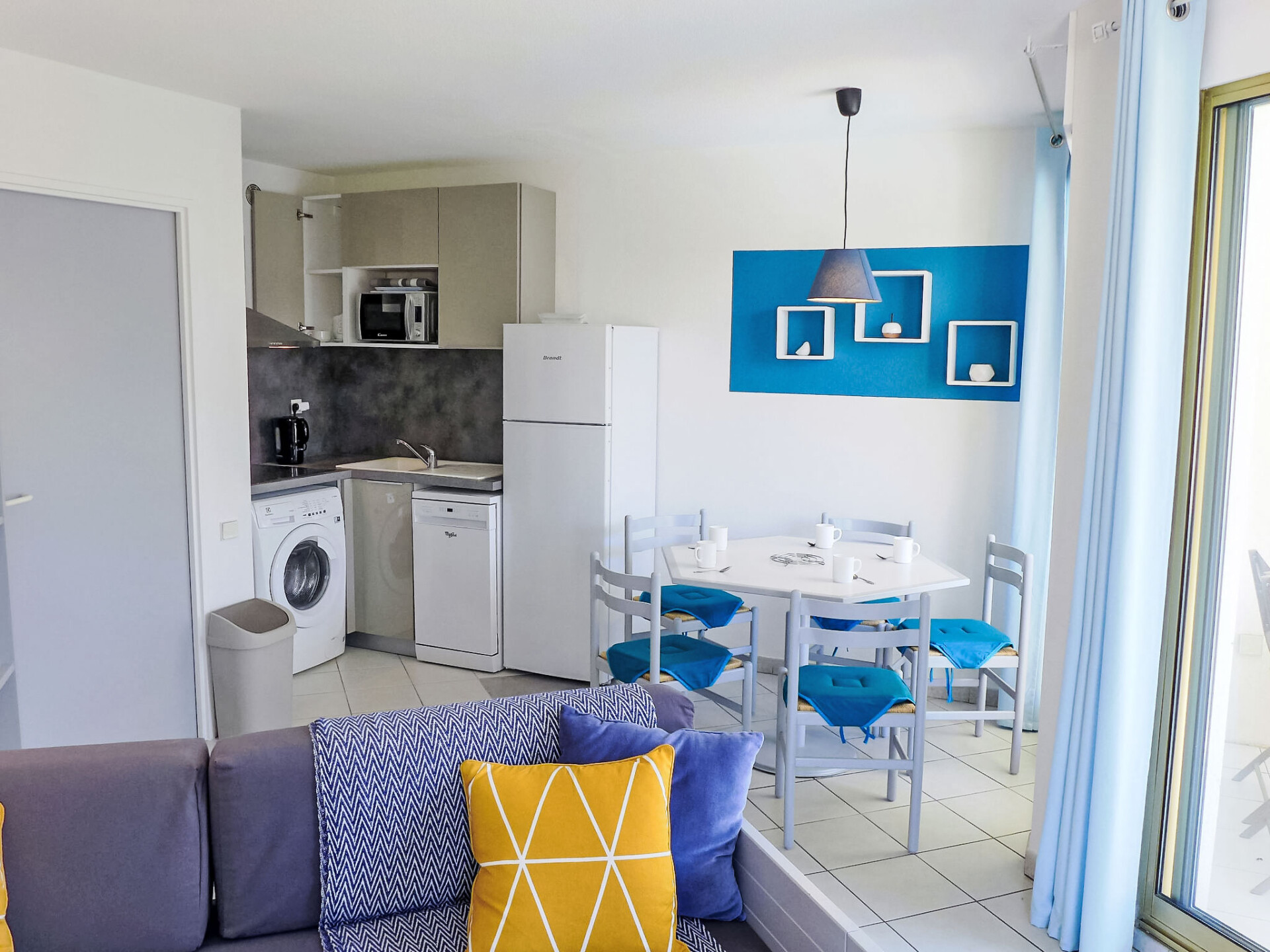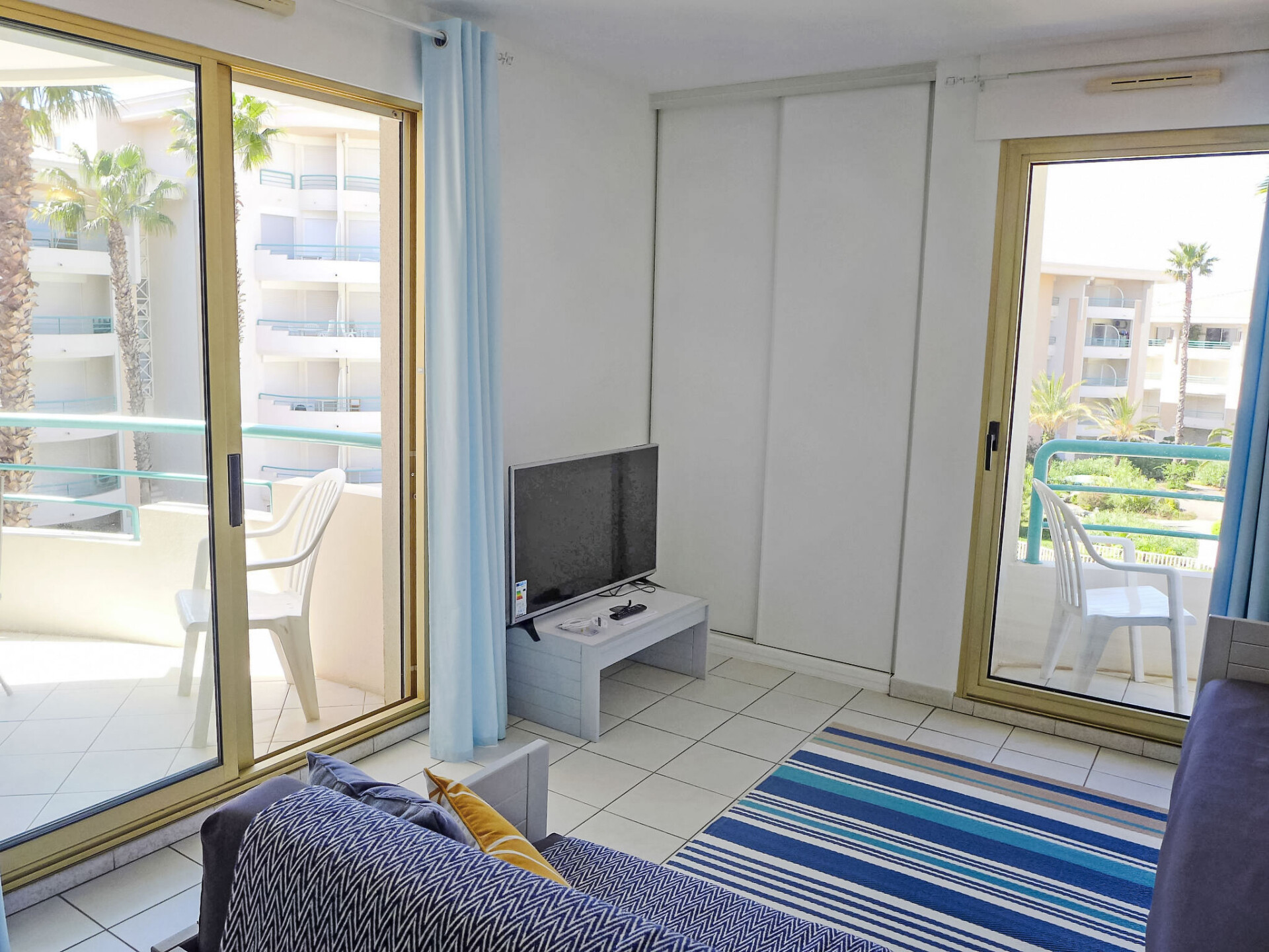 Appartement 2-kamers 42 m2 op de 3e verdieping. Mooi ingericht: woon-/eetkamer met 2 bedden (80 cm, lengte 190 cm), TV en air-conditioning. Uitgang naar het balkon. 1 kamer met 1 2-pers bed (1 x 160 cm). Uitgang naar het balkon. Open keuken (afwasmachine, 4 keramische glas kookplaten, broodrooster, waterkoker, magnetron, diepvriezer, elektrische koffiemachine). Badkamer, aparte WC. Elektrische verwarming. Klein balkon terras 5 m2. Terrasmeubelen. Uitzicht op het zwembad en de haven. Ter beschikking: wasmachine, strijkijzer, haardroger. Internet (Internet (WiFi), gratis). Parkeerplaats nr. 7037 (overdekt), hoogte 190 cm, breedte 220 cm. Niet rokers woning. Rookmelders.