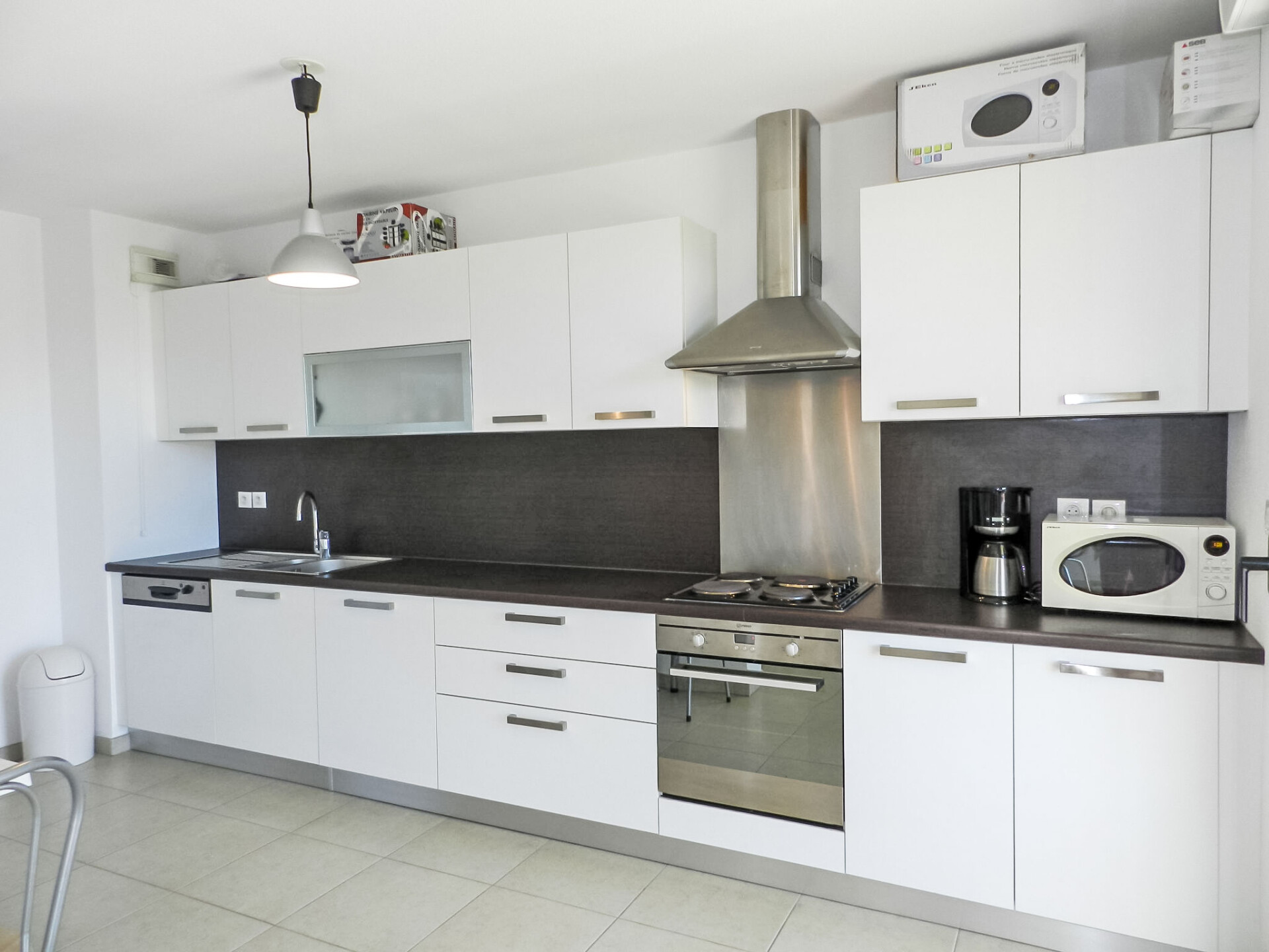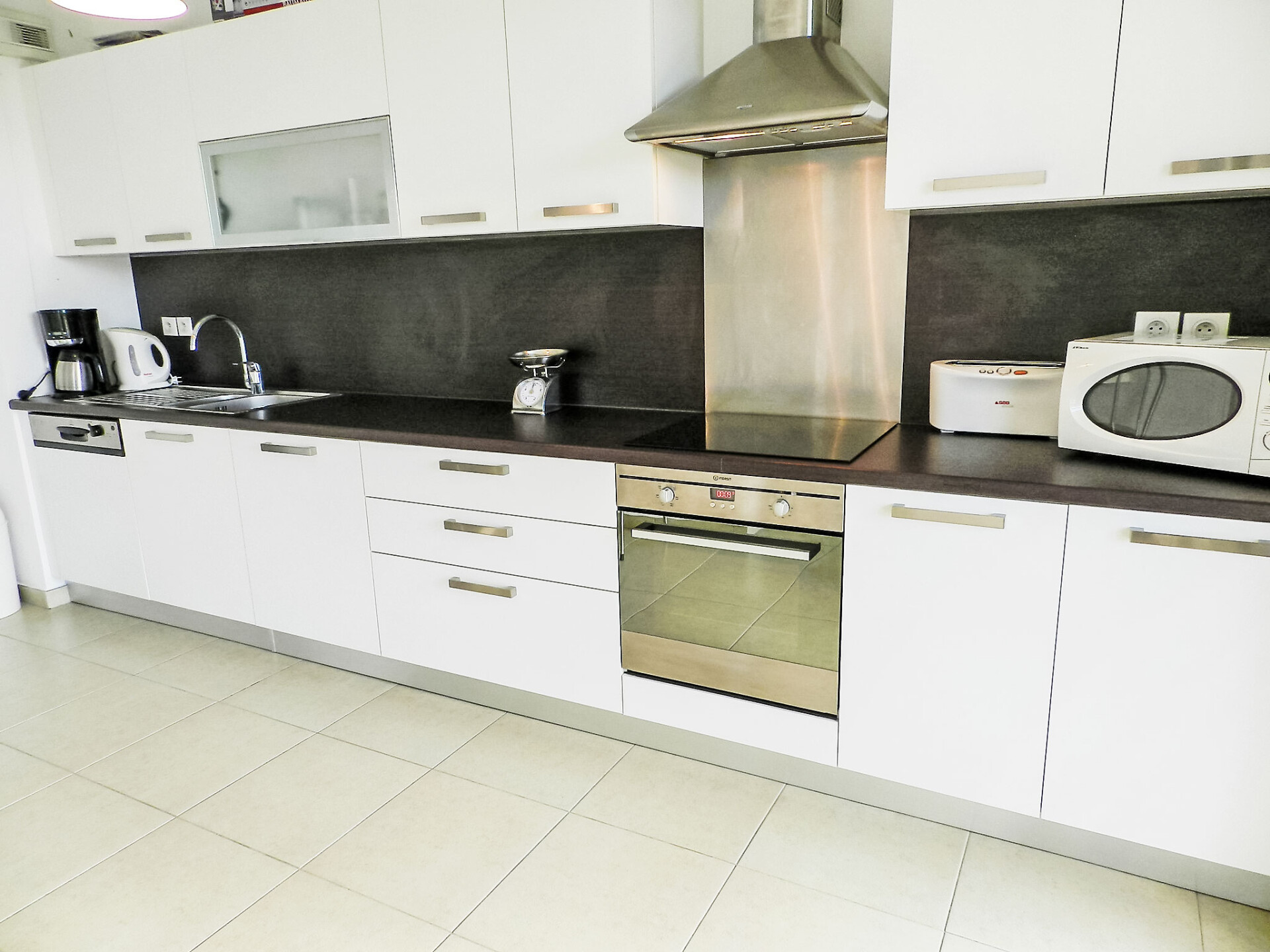 Appartement 4-kamers 84 m2 op de 1e verdieping. Ruim en licht, modern ingericht: woon-/eetkamer met TV, Flatscreen TV, DVD en air-conditioning. Uitgang naar het balkon. 2 kamers, elke kamer heeft 1 2-pers bed (1 x 140 cm, lengte 190 cm). 1 kamer met 2 bedden (90 cm, lengte 190 cm). Open keuken (2-pits kookplaat, oven, afwasmachine, magnetron, diepvriezer, elektrische koffiemachine). Uitgang naar het balkon. Badkamer, aparte WC. Elektrische verwarming. Groot balkon 15 m2. Balkonmeubilair, elektrische barbecue. Ter beschikking: wasmachine. Internet (WiFi, gratis). Parkeerplaats bij het huis. Woning aan de straatzijde. Rookmelders. 2B3030164608