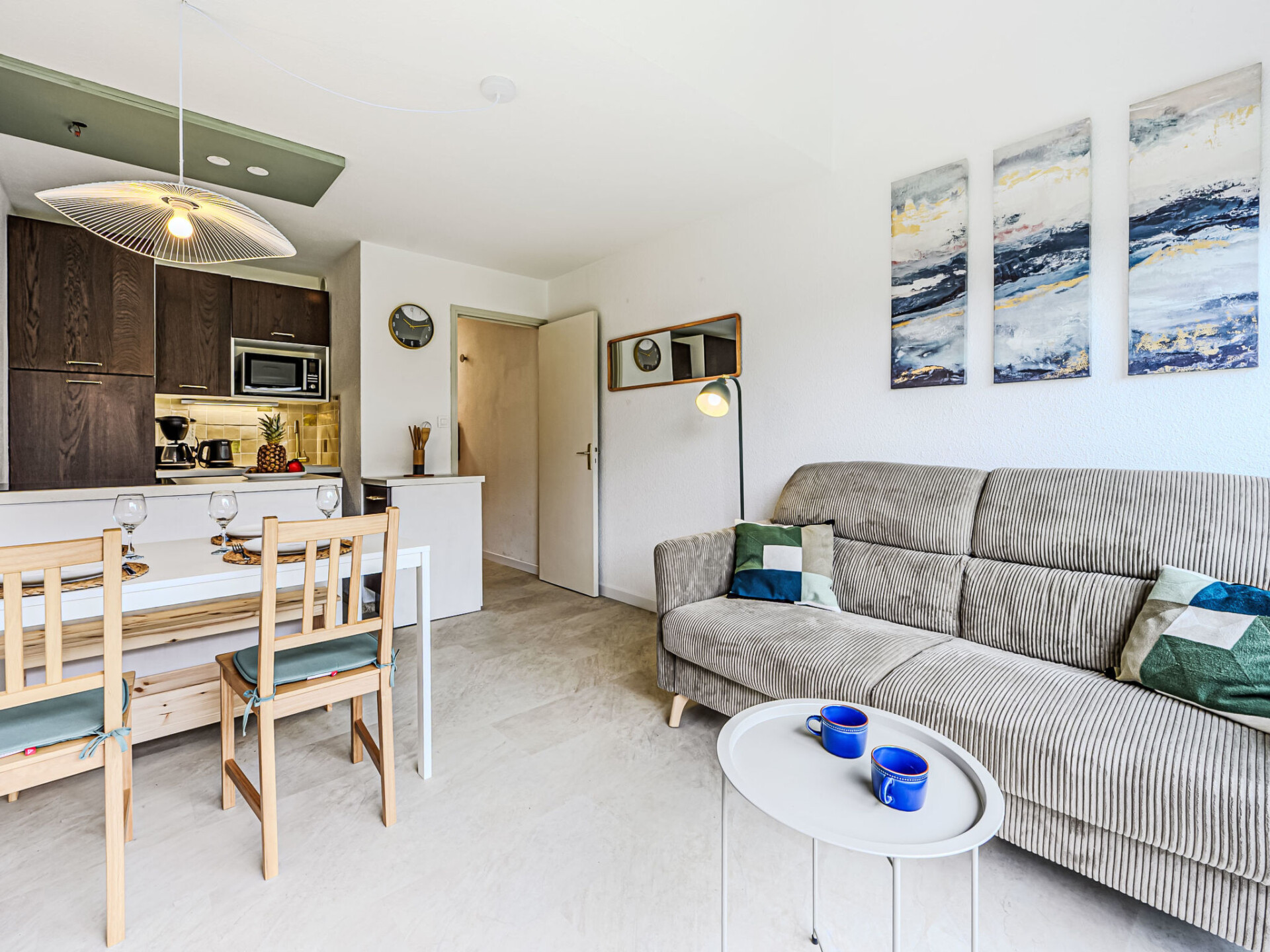 Appartement 2-kamers 35 m2, op de begane grond, op het zuiden gelegen. Comfortabel ingericht: woon-/eetkamer met 1 divanbed (140 cm, lengte 190 cm), TV (Flatscreen TV). Uitgang naar het terras. 1 kamer met 1 2-pers bed (1 x 140 cm, lengte 190 cm). Open cabine met 1 x 2 stapelbedden (90 cm, lengte 190 cm). Keuken (afwasmachine, 3 kookpitten (vlammen), broodrooster, waterkoker, magnetron). Douche, aparte WC. Terras 5 m2, op het zuiden gelegen. Terrasmeubelen, ligstoelen (2). Ter beschikking: wasmachine, kinderbed, haardroger. Internet (WiFi, gratis). Rookmelders. Bedindeling is flexibel. Er zijn meer slaapmogelijkheden beschikbaar dan het maximaal toegestane aantal personen dat echter niet mag worden overschreden. Aanbod door een particulier volgens art. 155, IV van CGI. 560340008039C