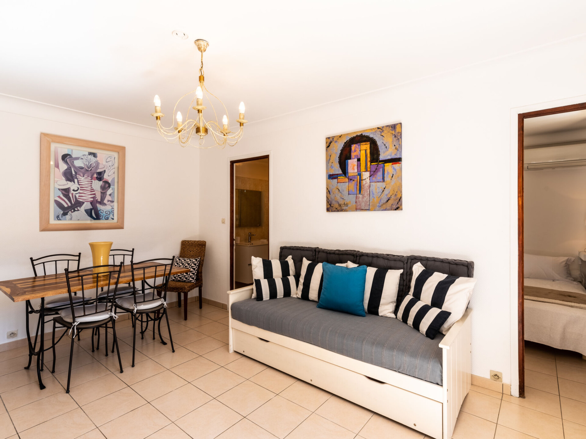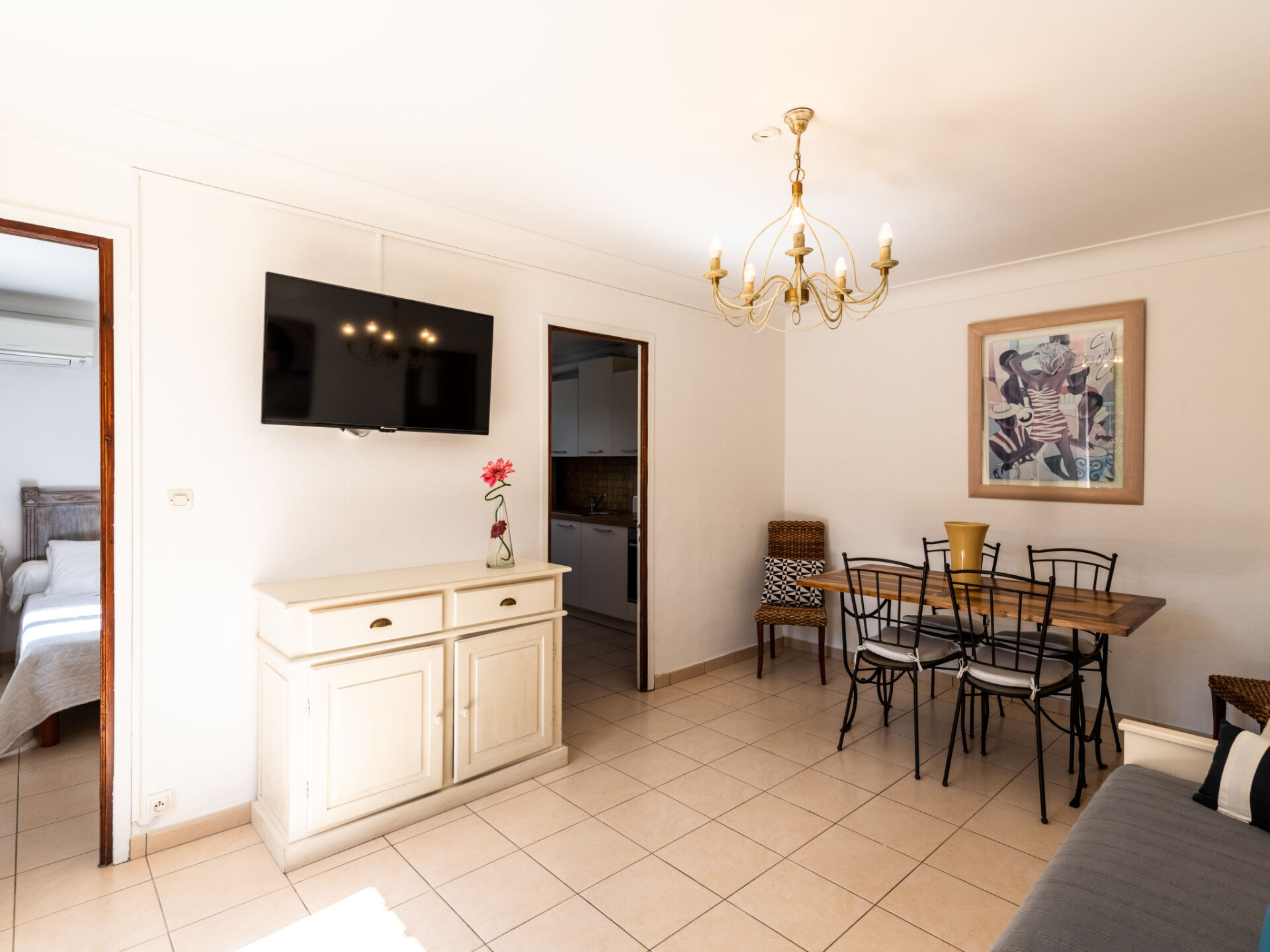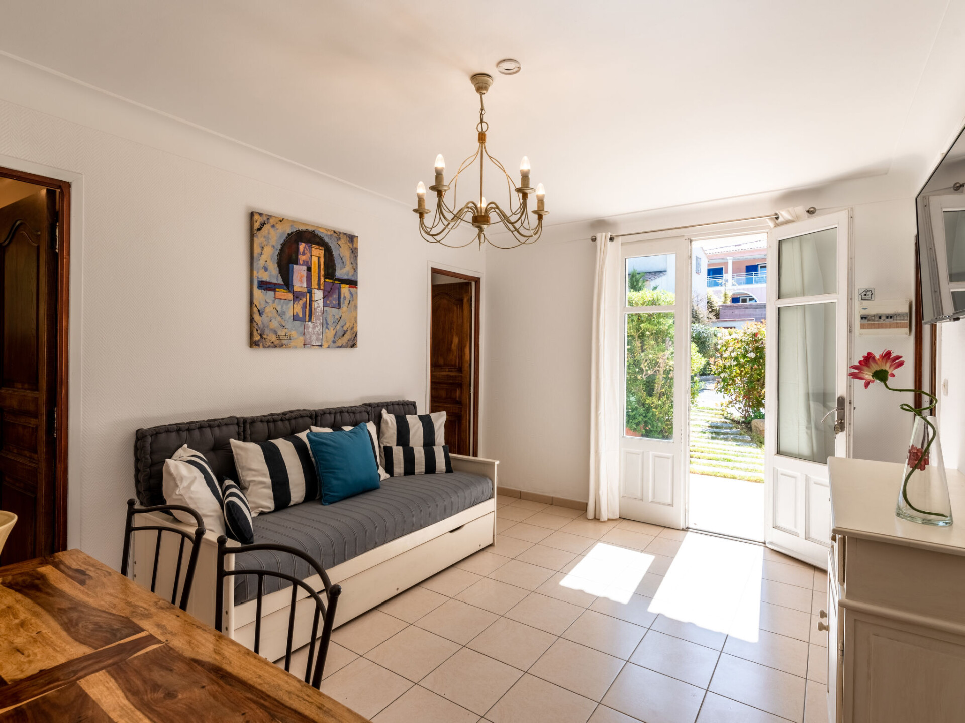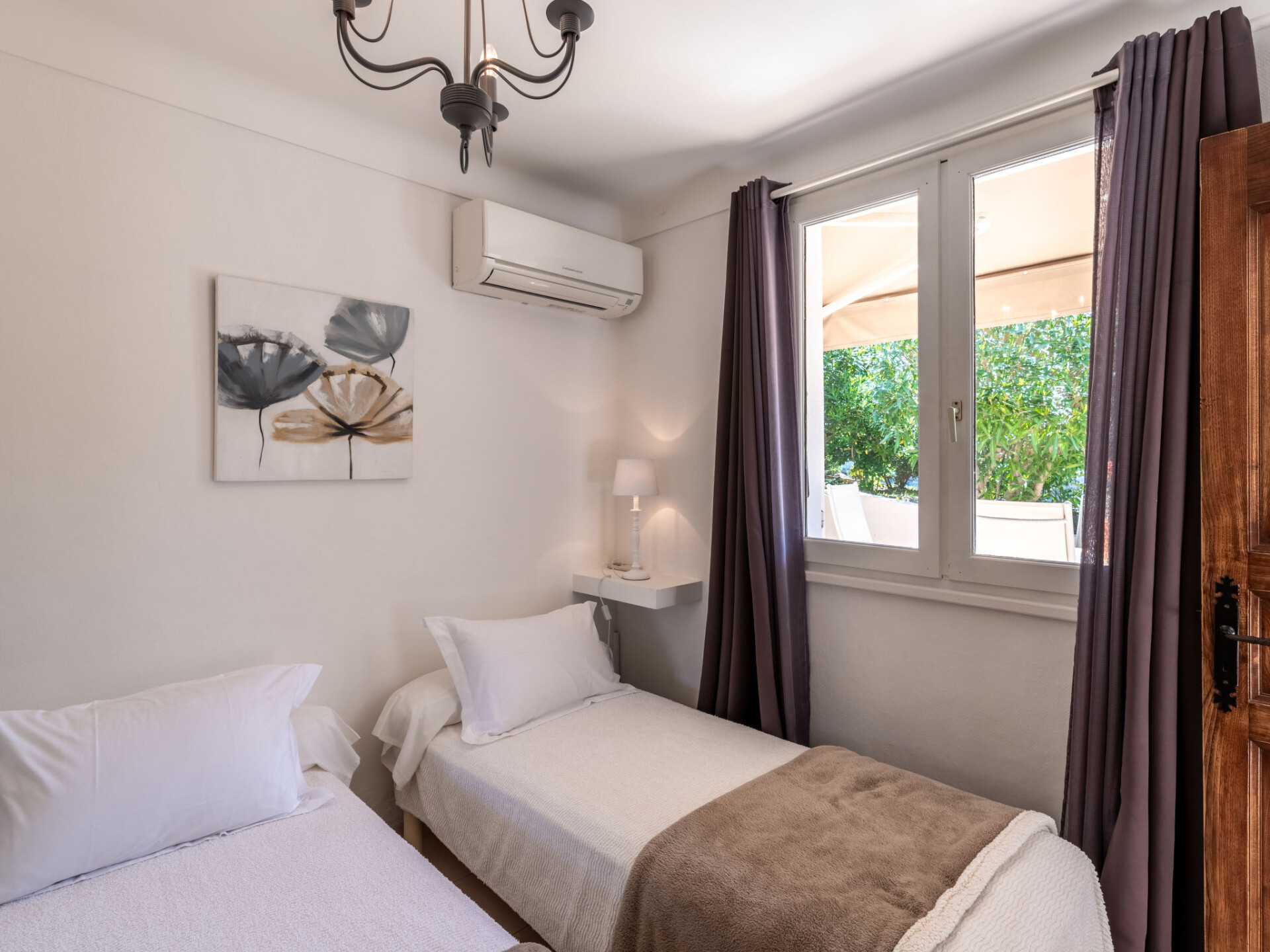"Marie Diane", appartement 3-kamers 50 m2, op de begane grond. Het objekt is geschikt voor 4 volwassenen + 1 kinderen. Comfortabel en mooi ingericht: woon-/slaapkamer met 1 bed (70 cm), open haard, eettafel en TV. 1 kamer met 2 bedden. 1 kamer met 1 2-pers bed. Keuken (oven, afwasmachine, 4 kookpitten (vlammen), broodrooster, waterkoker, magnetron, diepvriezer, elektrische koffiemachine). Douche/WC. Verwarming, air-conditioning. Terras. Terrasmeubelen, barbecue. Ter beschikking: wasmachine. Internet (WiFi, gratis). Niet rokers woning. Maximaal 1 huisdier/hond toegestaan. Rookmelders.