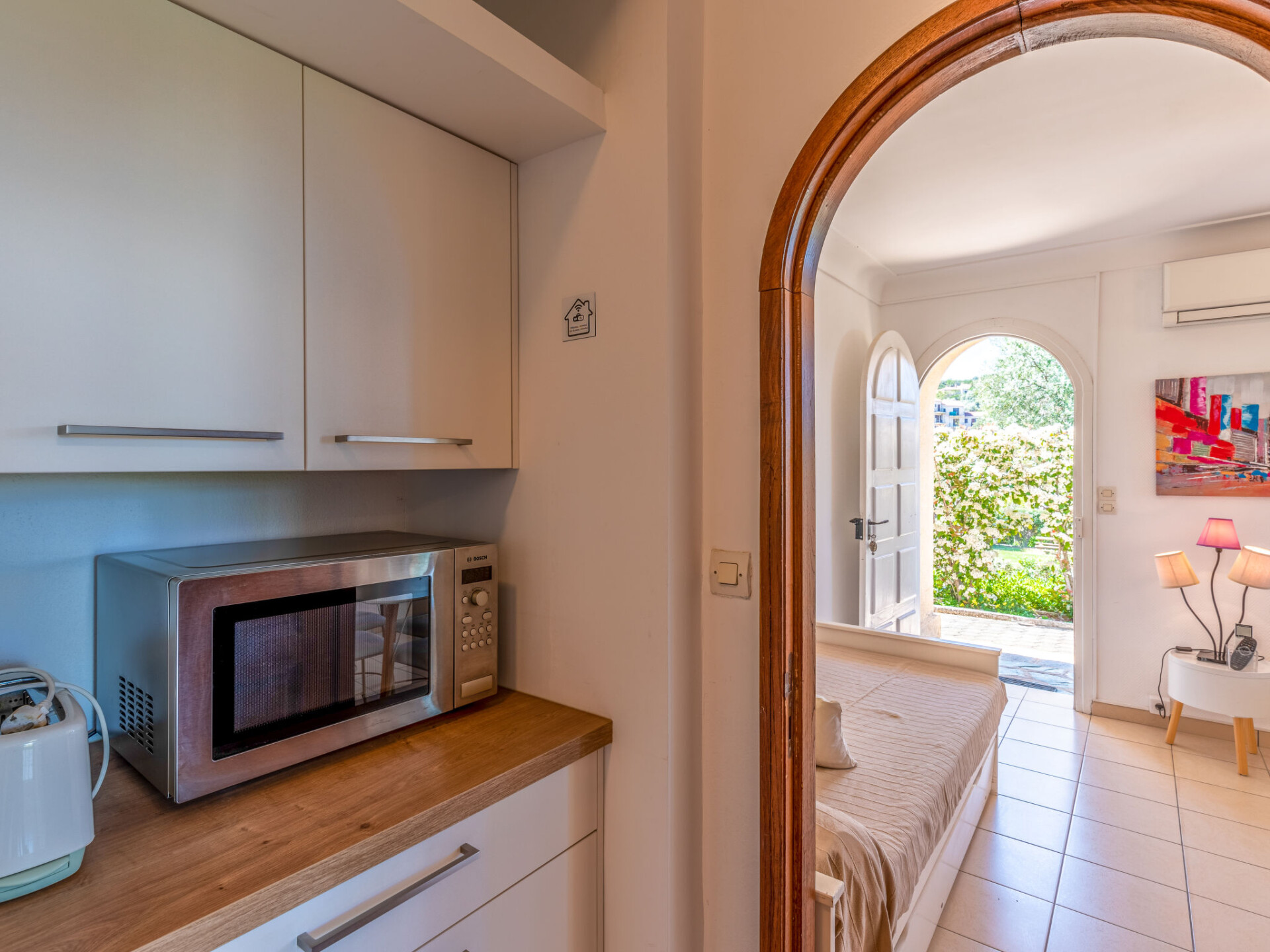 "Marie Diane", appartement 2-kamers 40 m2, op de begane grond. Comfortabel en mooi ingericht: woon-/slaapkamer met 2 bedden, open haard, eettafel en TV. Uitgang naar het terras. 1 kamer met 1 2-pers bed. Keuken (oven, afwasmachine, 4 kookpitten (vlammen), broodrooster, waterkoker, magnetron, diepvriezer, elektrische koffiemachine). Douche/WC. Verwarming, air-conditioning. Terras. Terrasmeubelen, barbecue, ligstoelen (2). Uitzicht op zee. Ter beschikking: wasmachine. Internet (WiFi, gratis). Niet rokers woning. Maximaal 1 huisdier/hond toegestaan. Rookmelders.