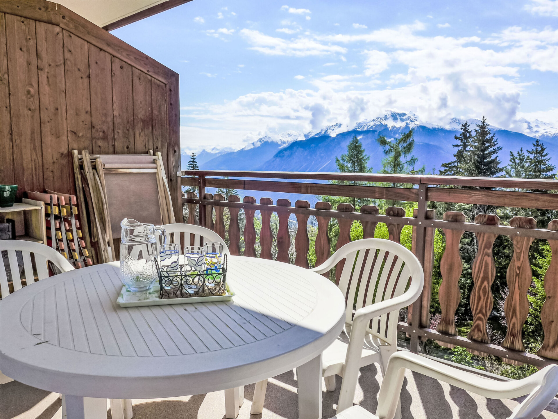 Residentie "Marigny Cervin". In de wijk Marigny, aan de rand van de plaats, 1.5 km van het centrum van Montana, rustige, zonnige ligging, 150 m van de bosrand, 1.3 km van het meer, op het zuiden. In het complex: lift, berging voor ski's, centrale verwarming, wasmachine, droger (voor medegebruik, extra), droogruimte. Parkeerplaats (beperkt aantal). Winkel 1.5 km, supermarkt 1.6 km, restaurant 1.5 km, bakkerij 900 m, bushalte "Marigny" 160 m. Golfterrein (18 holes) 3 km, tennis 1.4 km, tennishal 1.4 km, ski faciliteiten 1.3 km, skibushalte 50 m, ijsbaan 2 km. Bekende meren kunnen gemakkelijk worden bereikt: Etang Long 3 km, Lac Grenon 2.5 km. Gratis skibus.