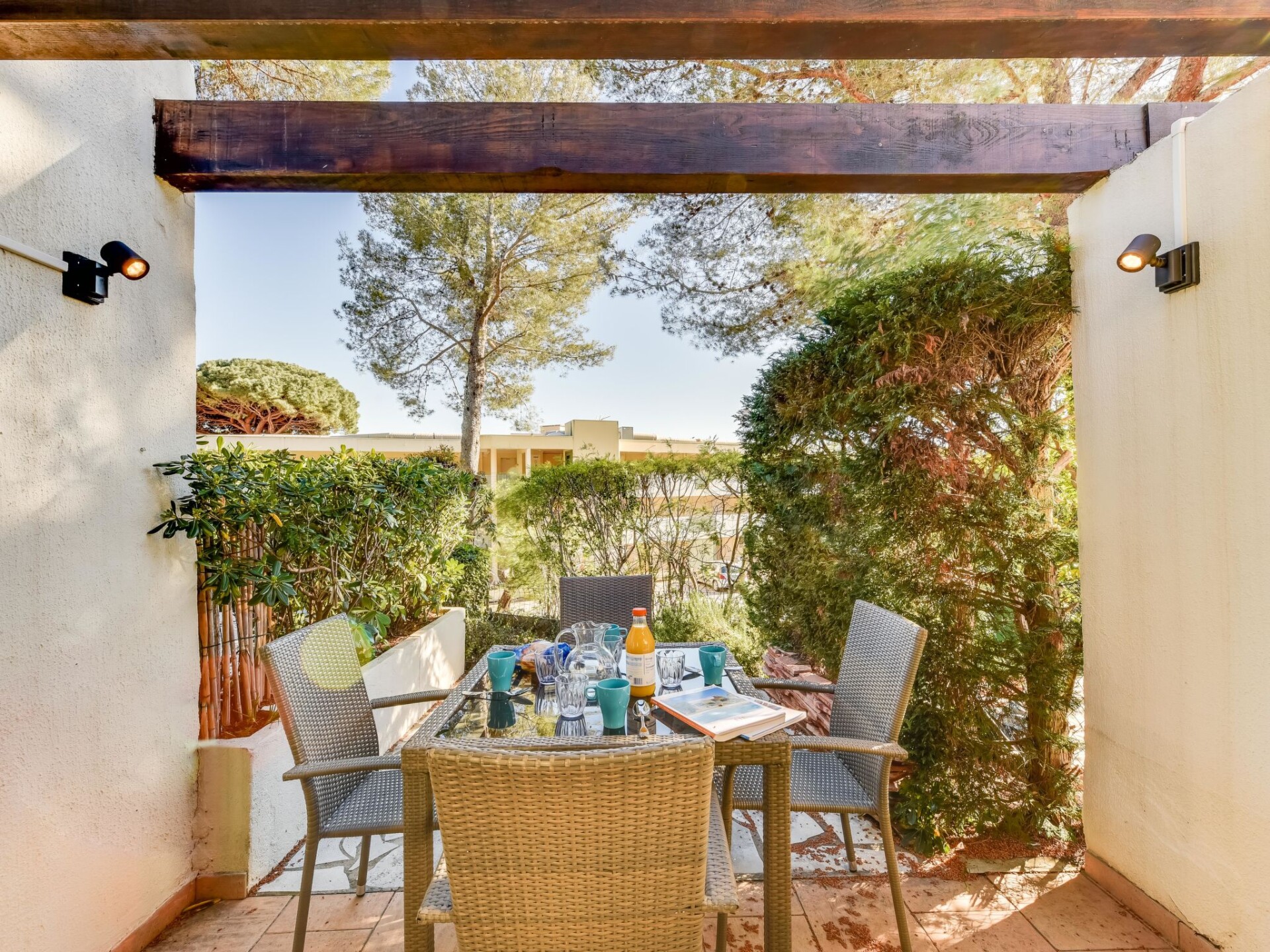Residentie "Mas de la Plage". In het centrum van Cavalaire, direct aan zee, 250 m van het strand, aan een doodlopende weg. Levensmiddelenwinkel 500 m, supermarkt 1 km, restaurant, bakkerij 300 m, bushalte "Halte routière" 650 m, zandstrand "Plage du centre" 250 m. Jachthaven 700 m, midgetgolf 12 km. Attracties in de buurt: Azur Park, Paint-ball 12 km, Bowling, Port-Grimaud 13 km, St-Tropez 17 km, Aqualand, St-Maxime 24 km. Wandelgebied Sentier du Dattier 1.2 km, Sentier du littoral 5 km, Toulon 60 km. De sleuteloverdracht vindt plaats bij het agentschap Interhome in Cavalaire.