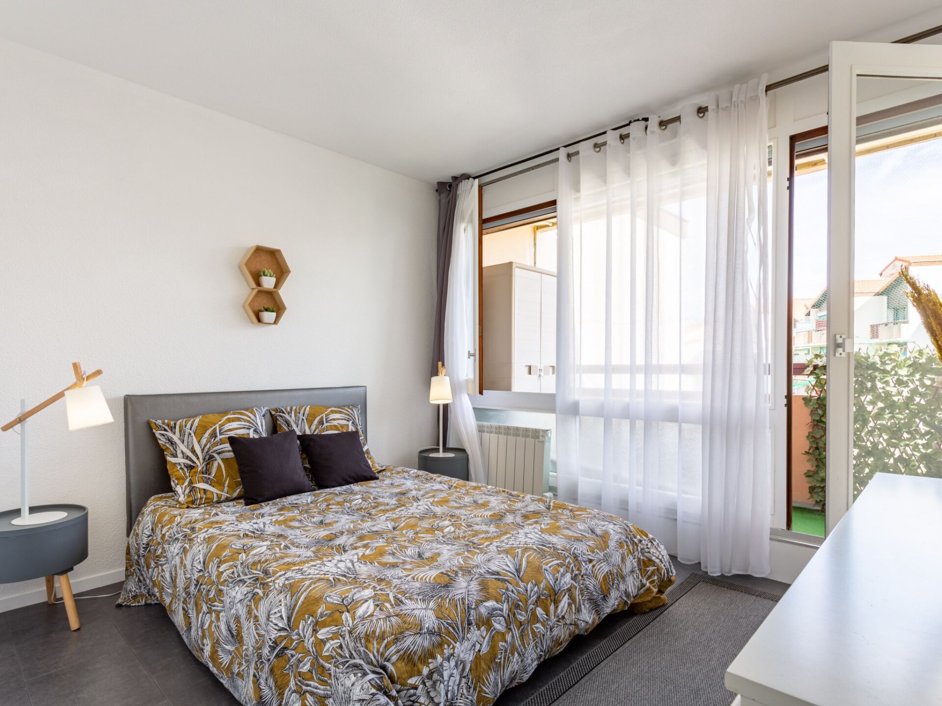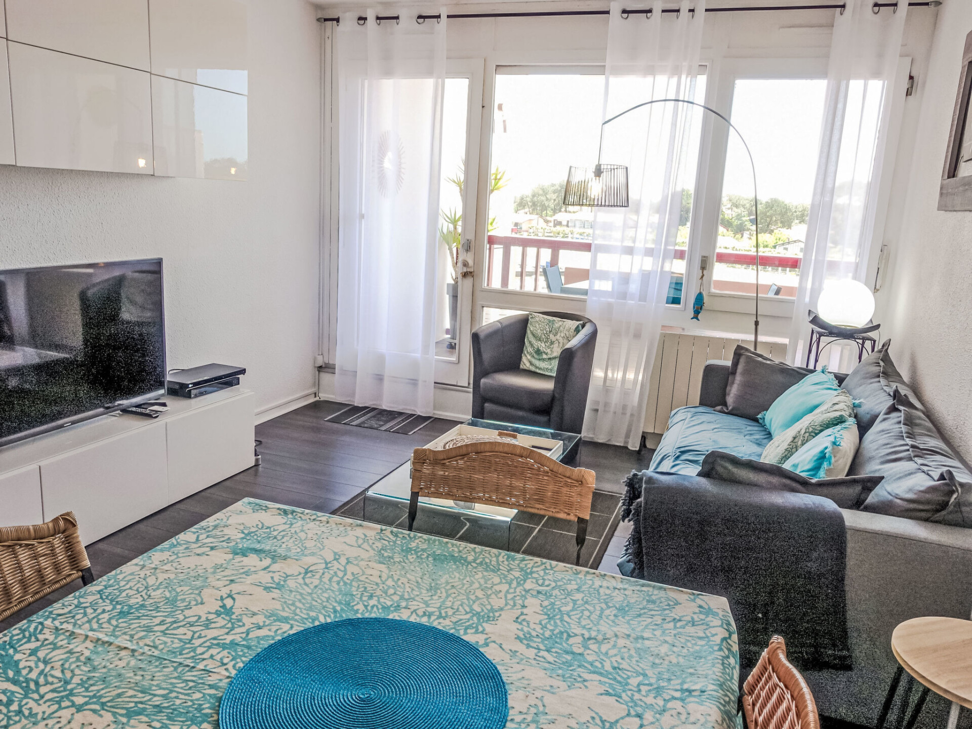 Appartement 3-kamers 70 m2 op de 4e verdieping. Comfortabel en mooi ingericht: woon-/eetkamer met TV (Flatscreen TV). Uitgang naar het terras. 2 kamers, elke kamer heeft 1 2-pers bed (1 x 140 cm, lengte 190 cm). Uitgang naar het balkon. Hal met 1 slaapplaats (80 cm, lengte 190 cm). Open keuken (oven, afwasmachine, 3 keramische glas kookplaten, broodrooster, waterkoker, magnetron, diepvriezer, elektrische koffiemachine). Douche, aparte WC, dubbele wastafels. Elektrische verwarming. Terras 10 m2, overdekt, op het westen gelegen. Terrasmeubelen. Zeer mooi uitzicht op de haven. Ter beschikking: wasmachine, strijkijzer. Internet (Internet (WiFi), gratis). Parkeerplaats. Niet rokers woning. Rookmelders. 400650008929B