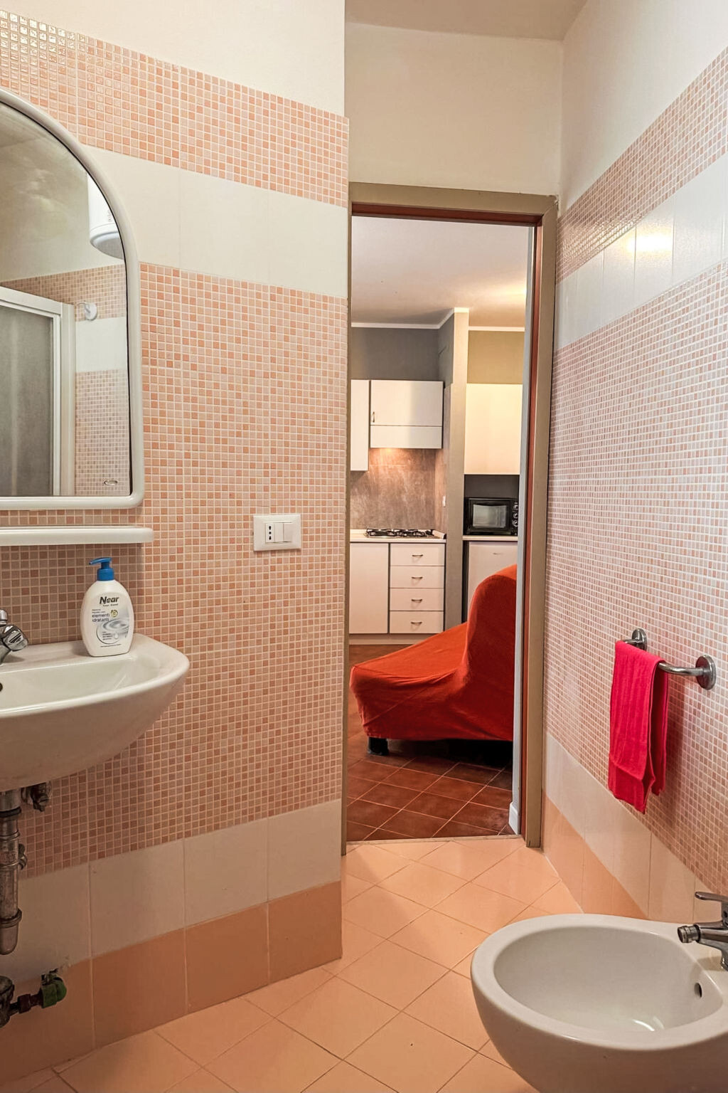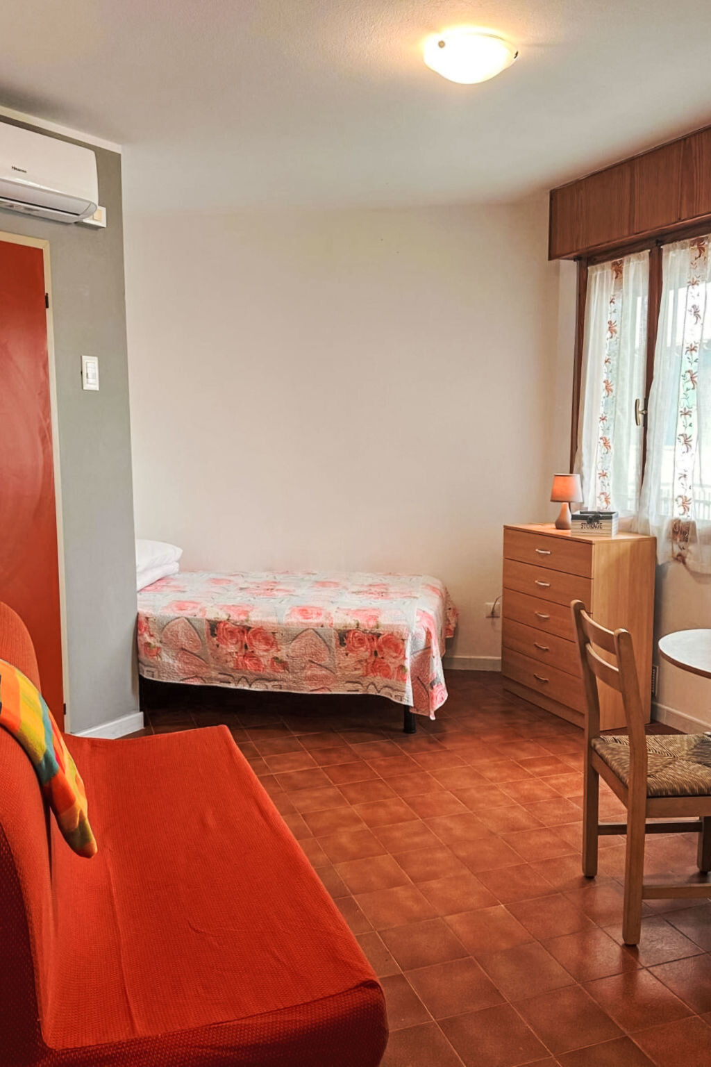 Appartement 1-kamer 28 m2. Eenvoudig en doelmatig ingericht: woon-/eetkamer met 1 2-pers divanbed, 1 2-pers bed, eettafel en TV. Uitgang naar het terras. Kleine kookhoek (4-pits kookplaat, waterkoker). Douche/bidet/WC. Air-conditioning, heteluchtverwarming, boiler (50 liter). Groot terras. Terrasmeubelen. Niet rokers woning. Maximaal 1 huisdier/hond toegestaan. IT027034B48BEG8YCY