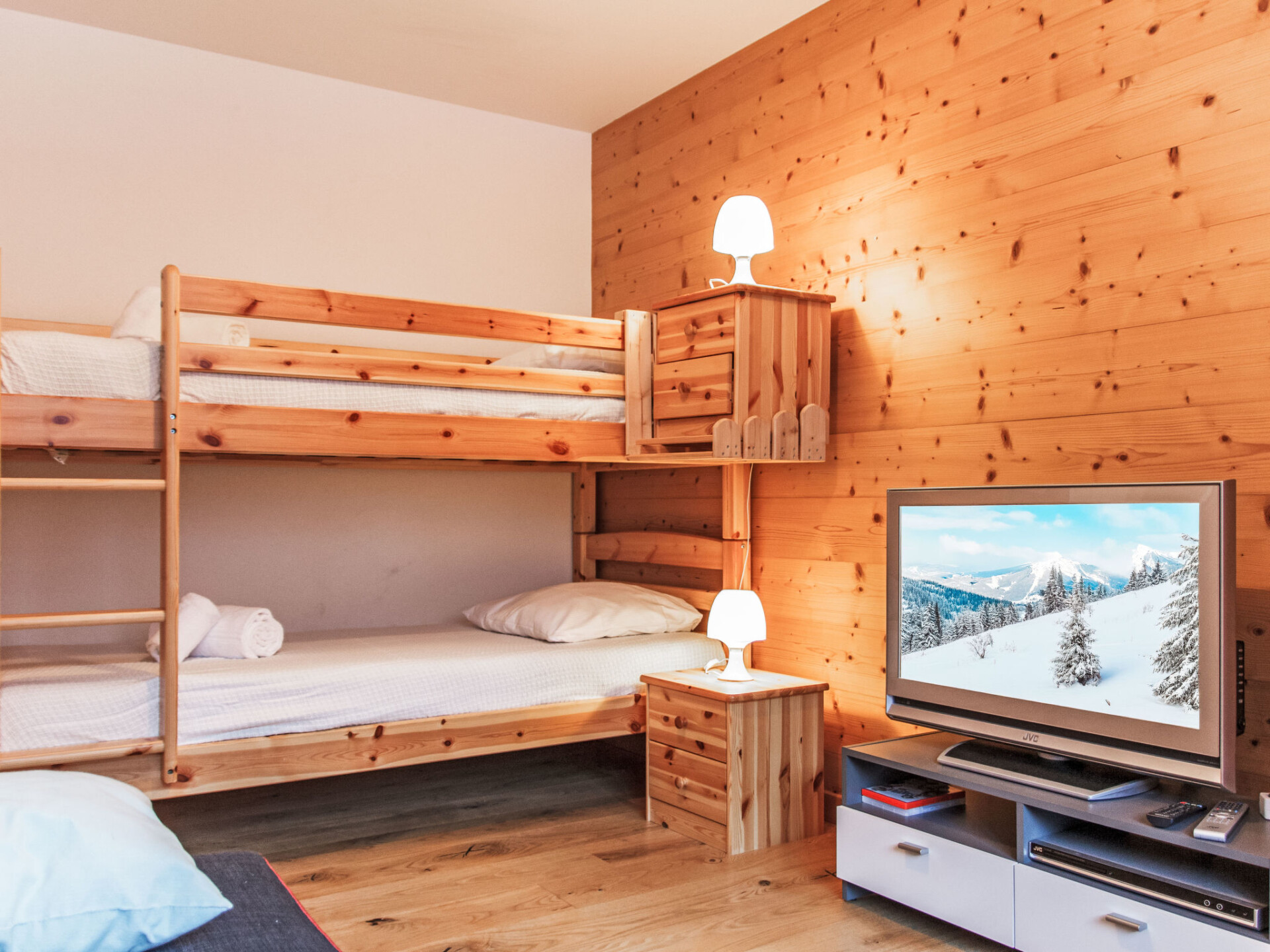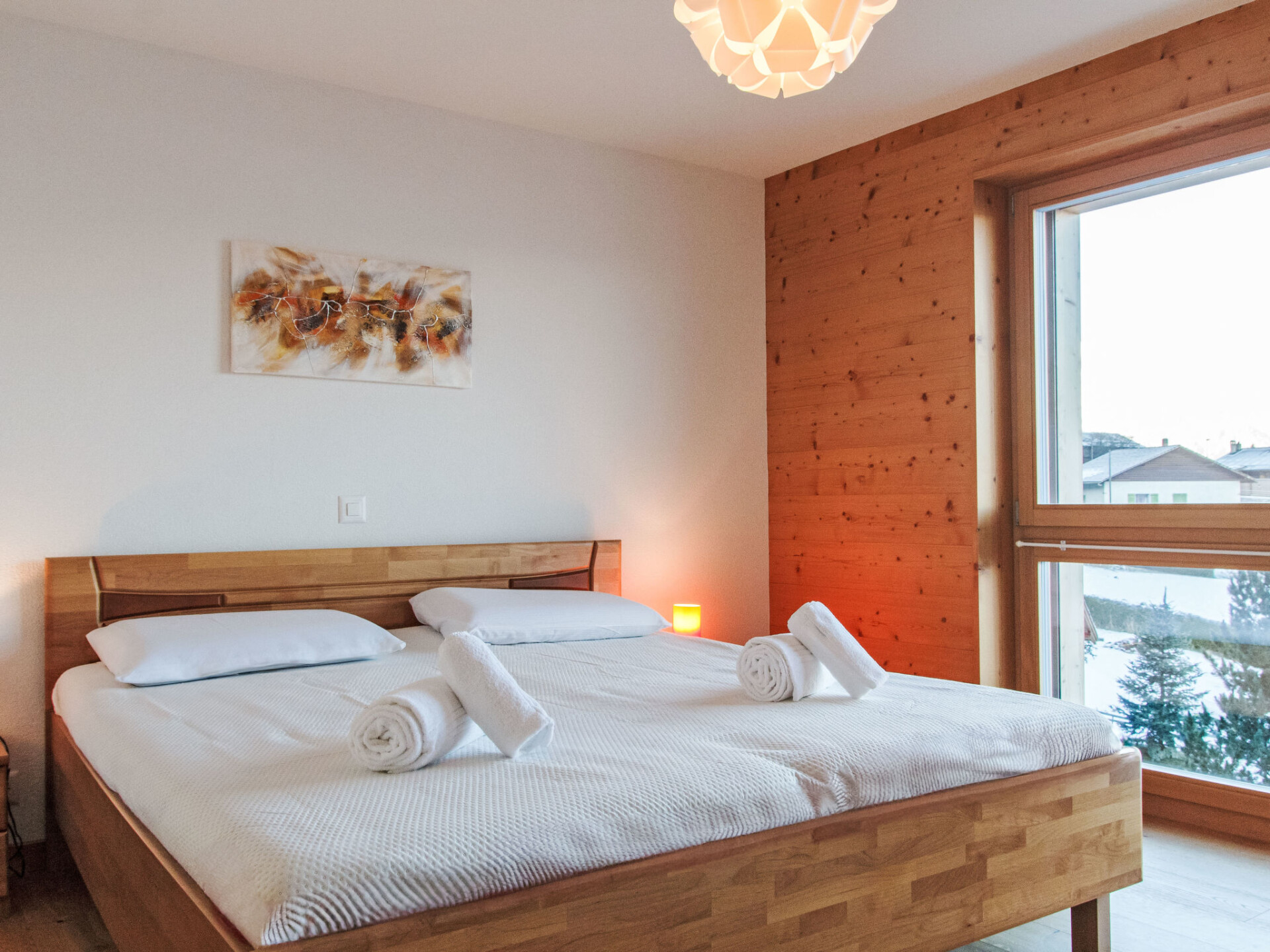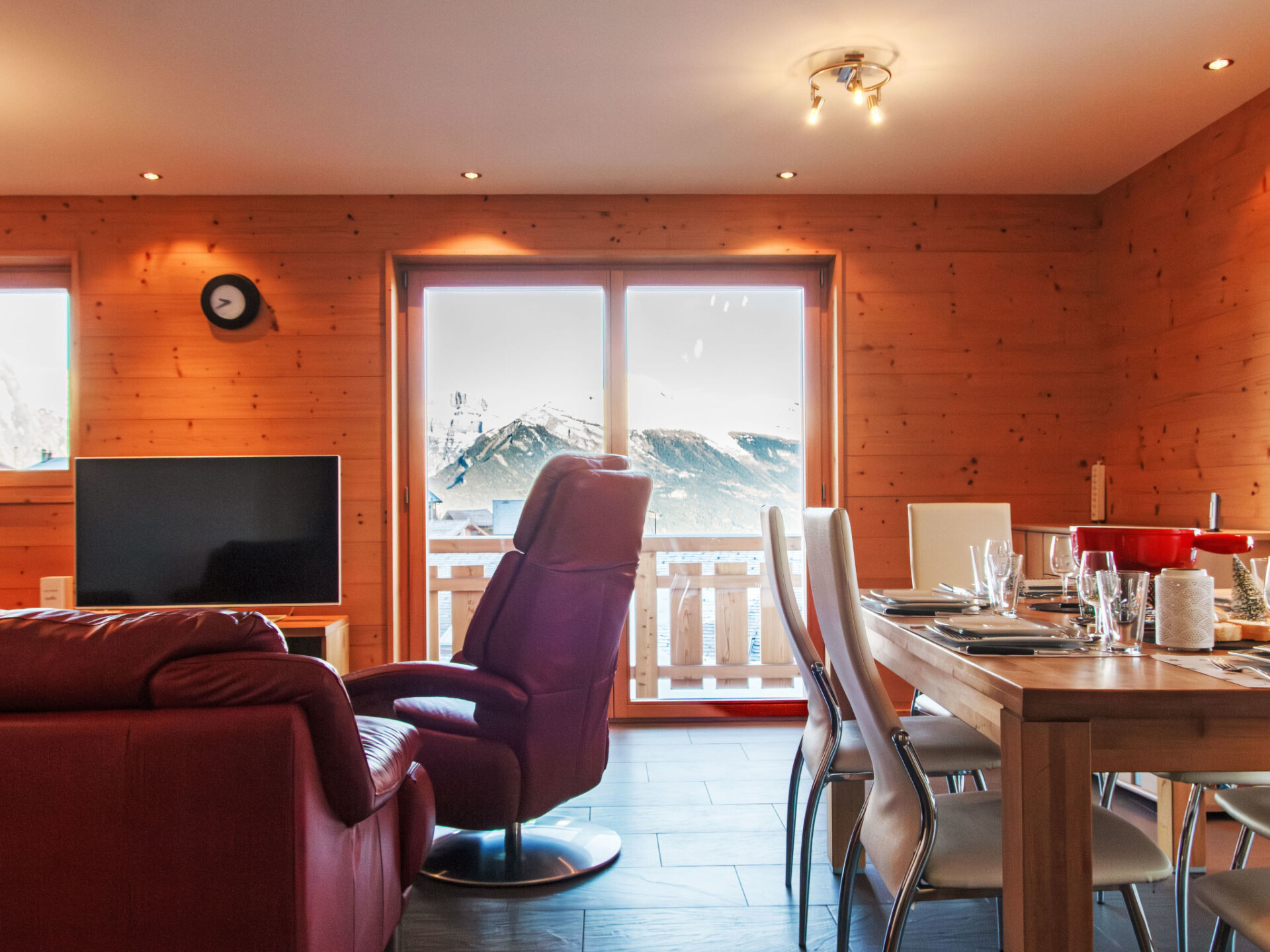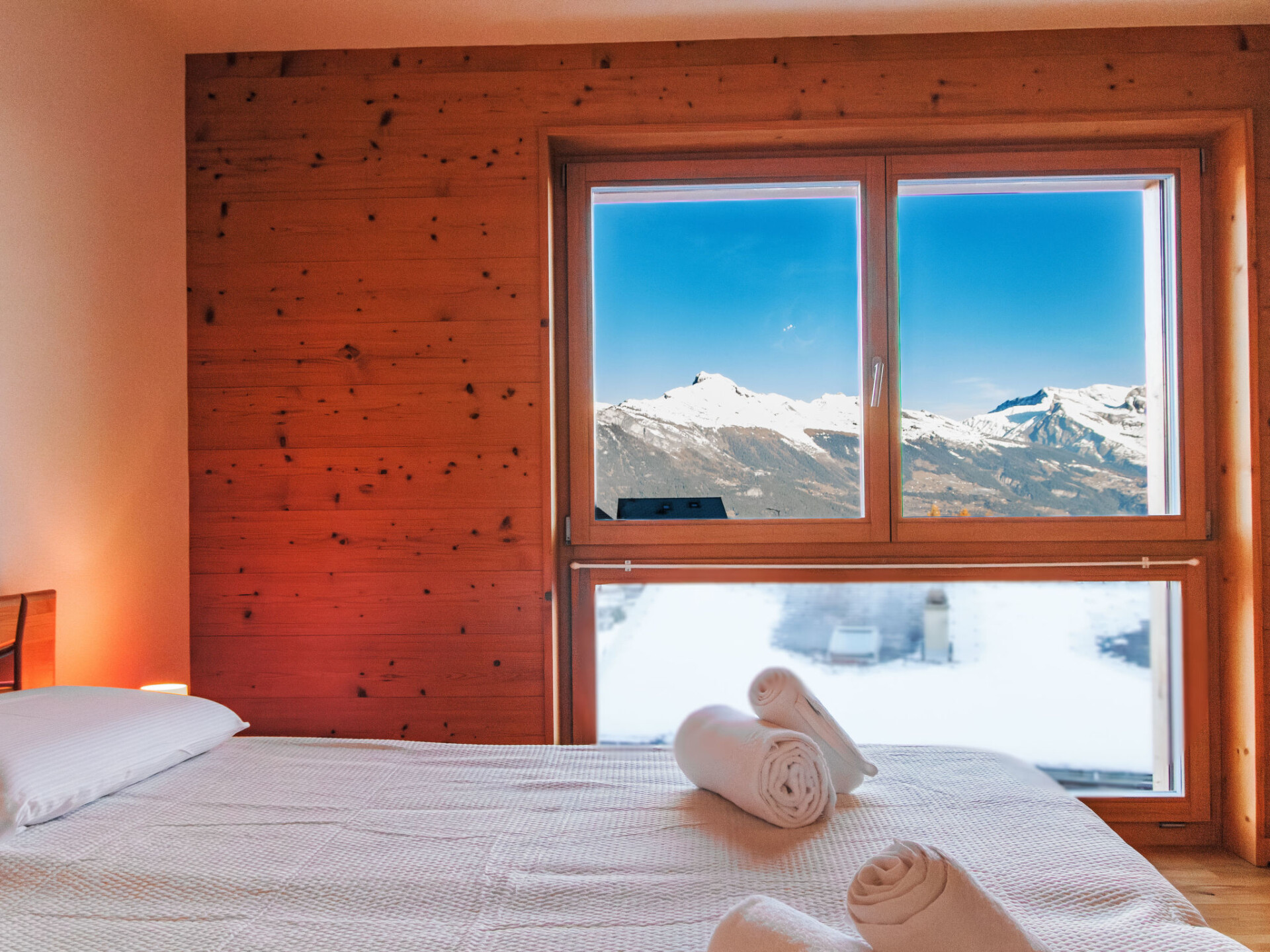 "Moulin du Raé A2", appartement 4-kamers 85 m2, op de begane grond. Het objekt is geschikt voor 4 volwassenen + 2 kinderen. Mooi en modern ingericht: woon-/eetkamer met Kabel-TV. 1 kamer met 2 bedden (90 cm, lengte 200 cm). 1 kamer met 1 2-pers bed (2 x 90 cm, lengte 200 cm). 1 kamer met 1 x 2 stapelbedden (90 cm, lengte 200 cm), Kabel-TV. Open keuken (oven, afwasmachine, 4 inductiekookplaten, magnetron, diepvriezer, elektrische koffiemachine, pads voor de koffiemachine (Nespresso) extra, raclette oven, fondue Set (chinese, kaas)). Uitgang naar het terras. Bad/WC, douche/WC. Vloerverwarming. Groot terras 180 m2, op het noorden gelegen en op het oosten gelegen. Terrasmeubelen, barbecue. Mooi uitzicht op de bergen. Ter beschikking: wasmachine, droger. Internet (WiFi, gratis). Garage nr. 22 et 23 (2 Auto's), hoogte 200 cm. Oplaadstation. Niet rokers woning.