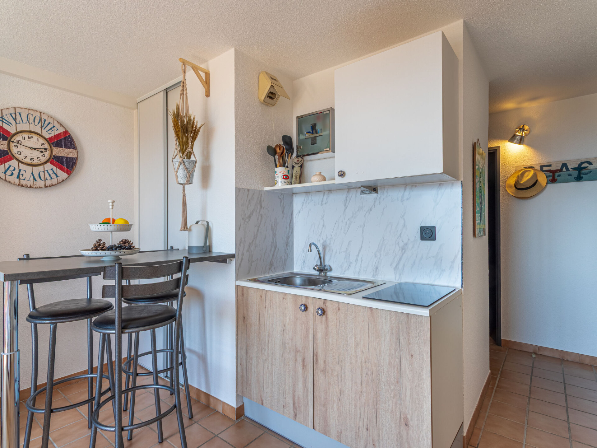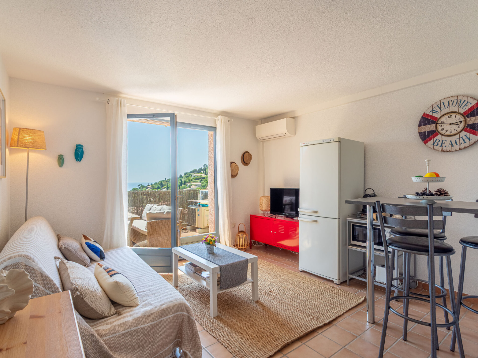 Appartement 2-kamers 30 m2 op de 1e verdieping, op het zuiden gelegen. Comfortabel en mooi ingericht: woon-/eetkamer met 1 divanbed (140 cm, lengte 190 cm), TV (Flatscreen TV). Uitgang naar het terras. 1 kamer met 1 2-pers bed (140 cm, lengte 190 cm). Kookhoek (2 inductiekookplaten, broodrooster, waterkoker, magnetron, diepvriezer, elektrische koffiemachine, pads voor de koffiemachine (Magimix)). Douche, aparte WC. Elektrische verwarming, air-conditioning. Terras 10 m2. Terrasmeubelen, elektrische barbecue (verrijdbaar). Mooi uitzicht op zee. Ter beschikking: wasmachine. Internet (WiFi, extra). Parkeerplaats nr. 12 (omheind, 1 Auto). Rookmelders, geen lift. Aanbod door een particulier volgens art. 155, IV van CGI.