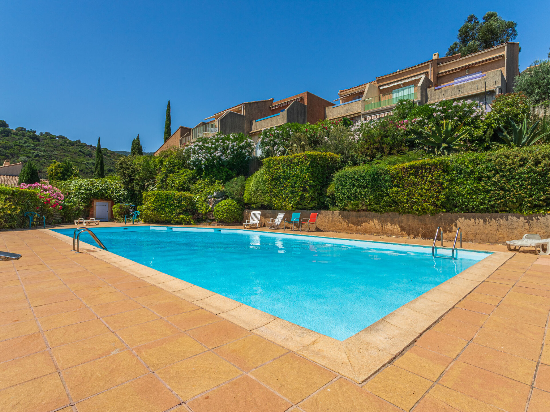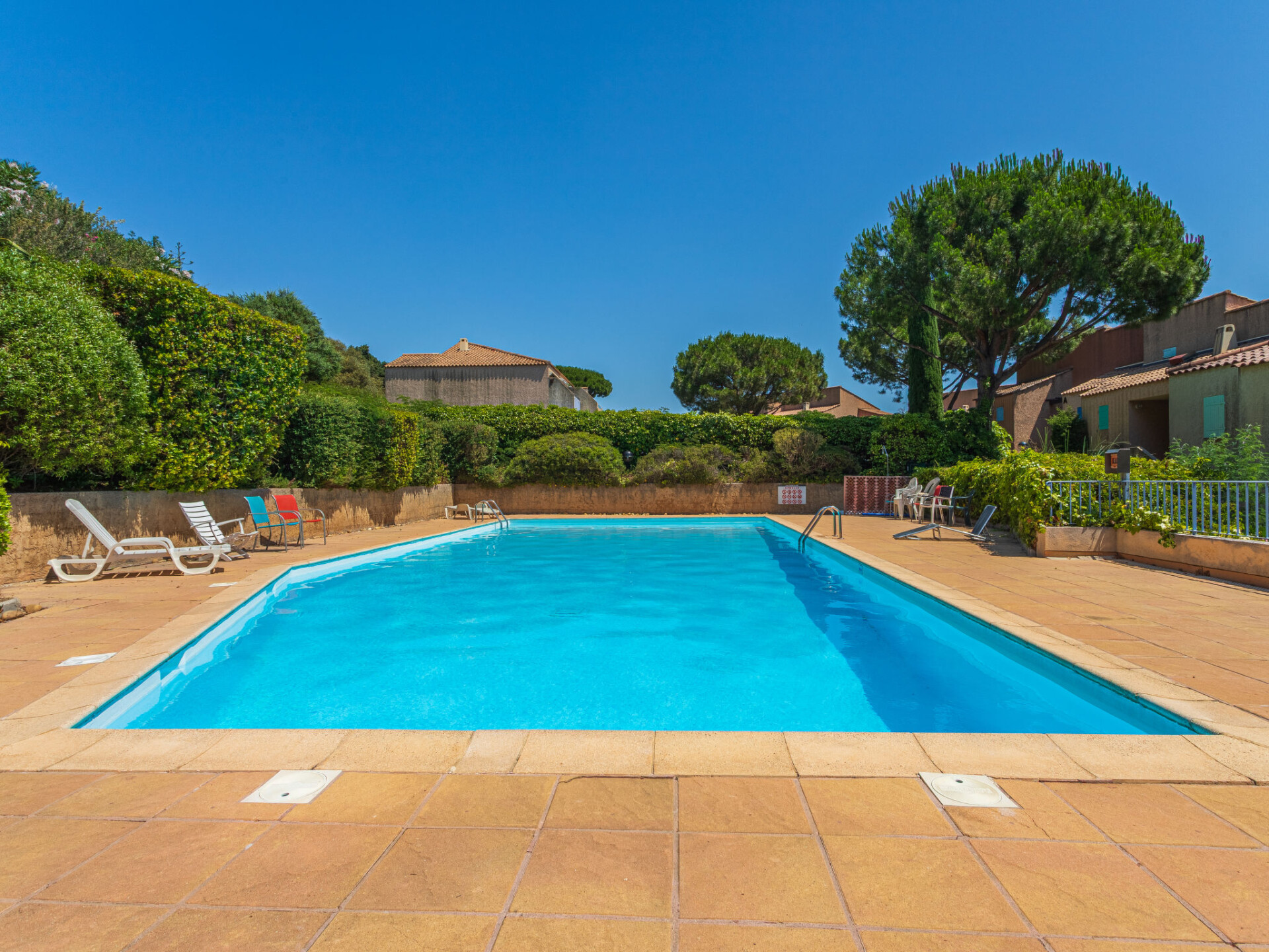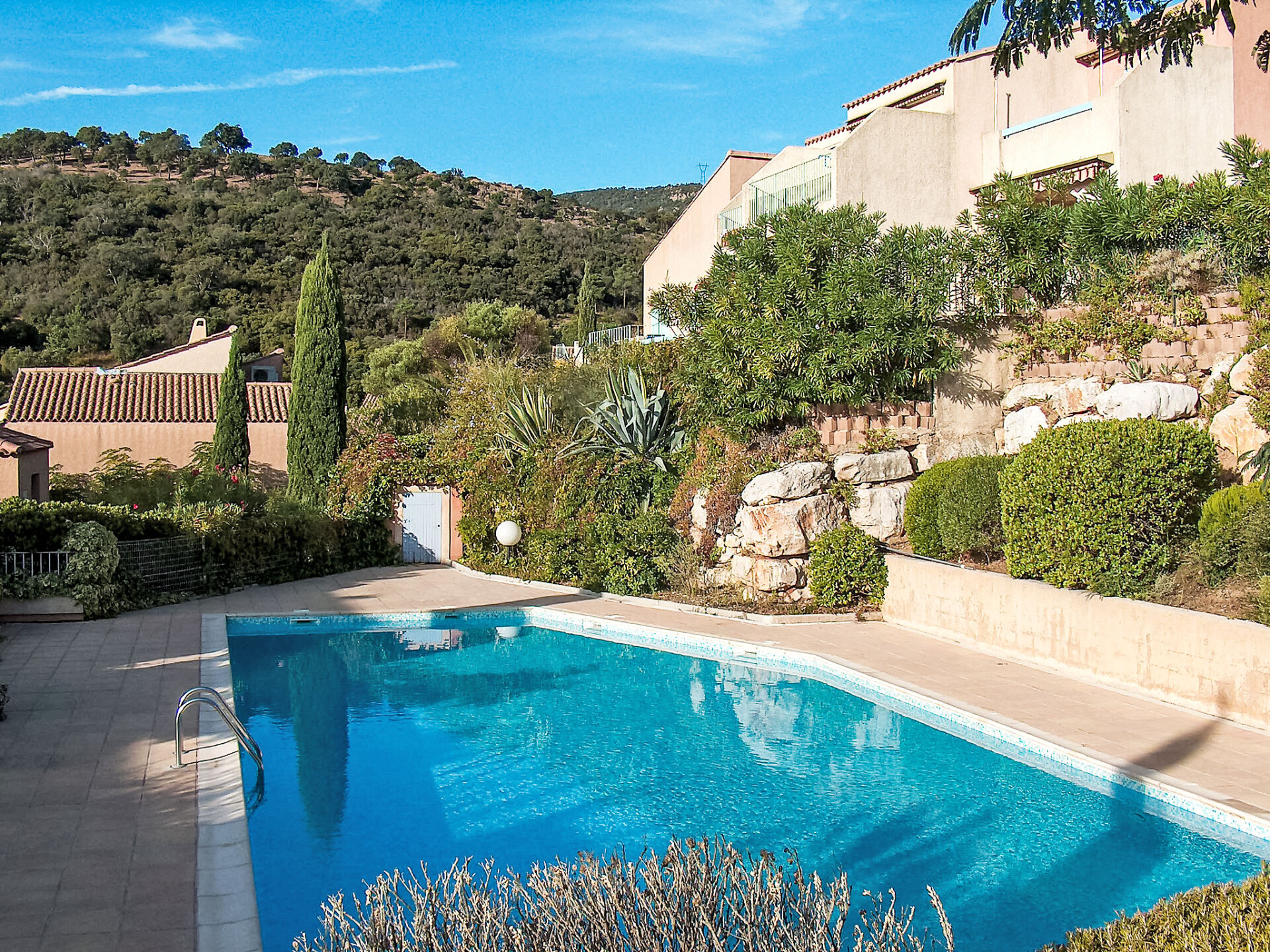 Residentie "Ophélie". Buiten de plaats, 2.8 km van het centrum van Cavalaire sur Mer, 1.8 km van zee, 1.8 km van het strand. Voor medegebruik: openluchtzwembad (17 x 8 m, 110 - 250 cm diepte, seizoensgebonden beschikbaarheid: 01.Jun. - 30.Sep.). Winkel 2.5 km, levensmiddelenwinkel 2 km, supermarkt 3 km, winkelcentrum 10 km, restaurant 2 km, bar 2 km, bakkerij 2 km, bushalte "place du parc" 1.7 km, zandstrand "Des Trois Pins" 1.8 km, park "Aqualand" 25 km, duikschool 3 km. Jachthaven 3 km, zeilschool 2.8 km, midgetgolf 12 km. Attracties in de buurt: Azur Park, Paint-ball 15 km, Bowling à Port-Grimaud 16 km, St-Tropez 18 km, Ste-Maxime 26 km. Wandelgebied Sentier du Fenouillet 5 m, Sentier du littoral 7.8 km, Toulon 61 km. Zwemshorts niet toegestaan in het zwembad. Zwempak verplicht.