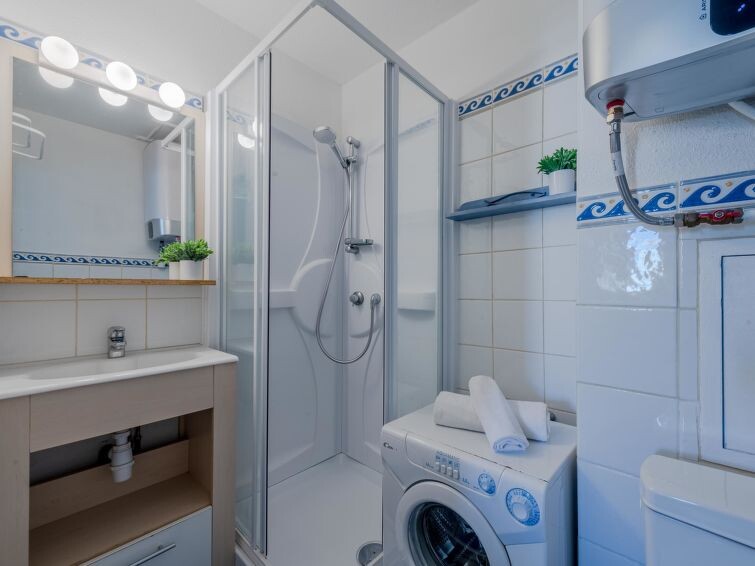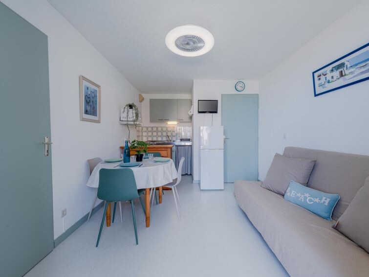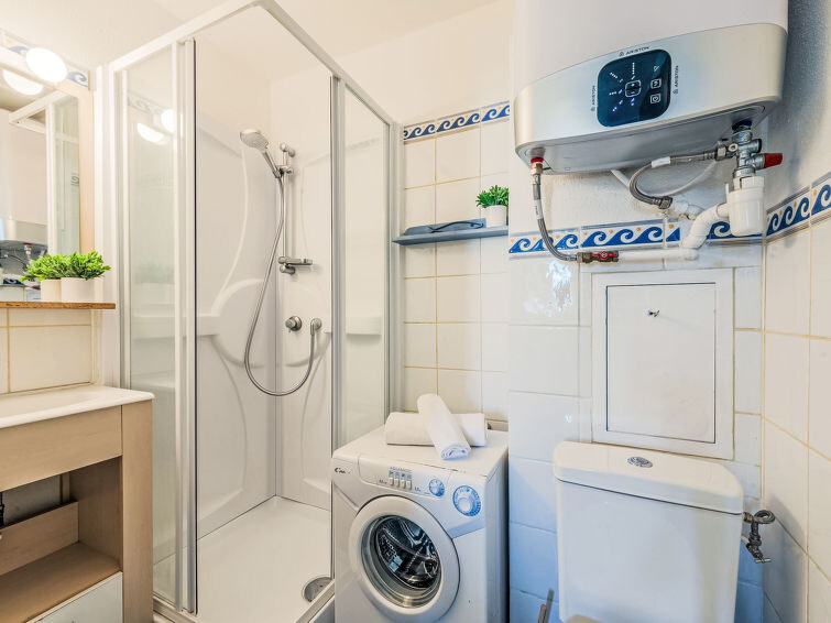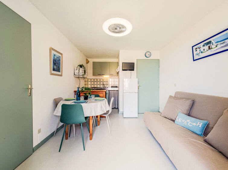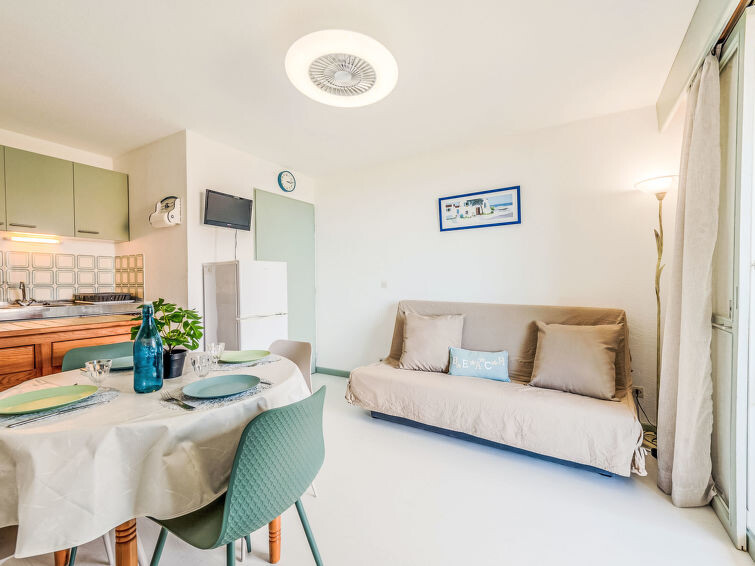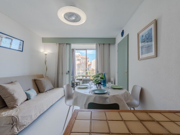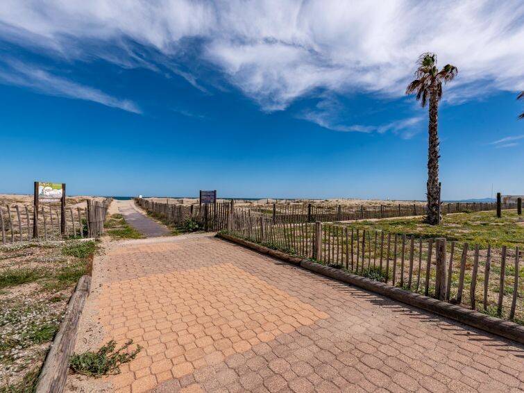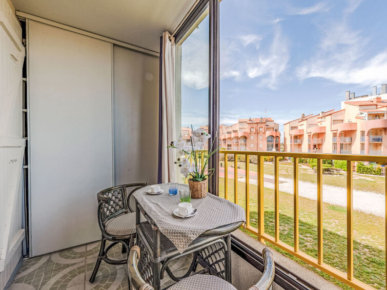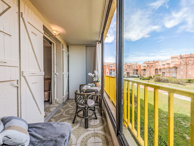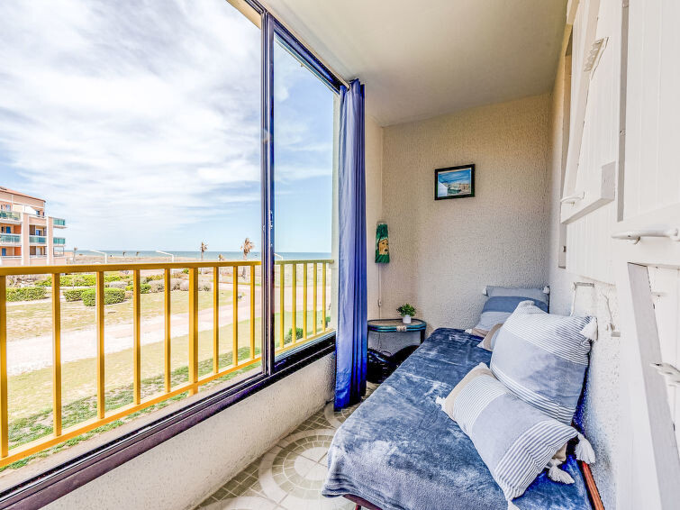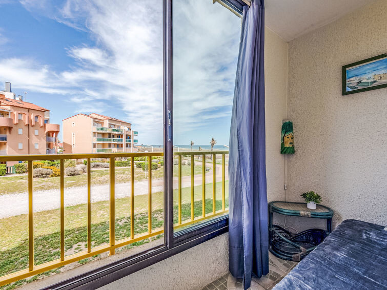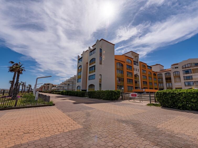 Residentie "Palm Beach", van 3 verdiepingen. 300 appartementen in de woning. In de wijk La Grande Plage, 100 m van zee, 100 m van het strand. Openbare parkeerplaatsen 150 m. Winkel, levensmiddelenwinkel, winkelcentrum, restaurant, bar, café, fietsverhuur 150 m, bushalte "Les Marines" 650 m, treinstation "de la Franqui" 15 km. Jachthaven 4 km. Attracties in de buurt: Aqualand Port Leucate 2 km, Réserve Africaine de Sigean 41 km, site des dosses 4 km, téléski nautique 5 km. Bekende meren kunnen gemakkelijk worden bereikt: Etang de Leucate ou salses 8 km, Lac de Villeneuve de la Raho 28 km. Wandelgebied Sentier du guetteur 8 km, la forteresse de salses 15 km, Sentier du littoral Collioure 40 km. Vergelijkbare accommodaties kunnen worden geboekt.