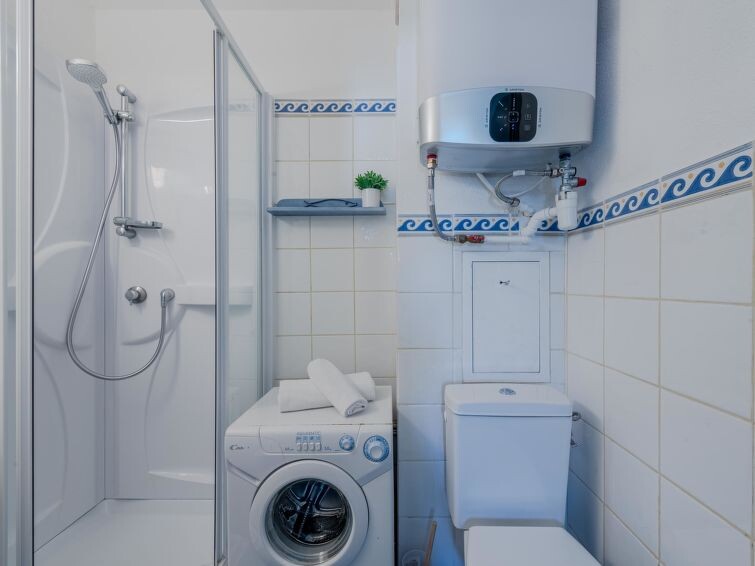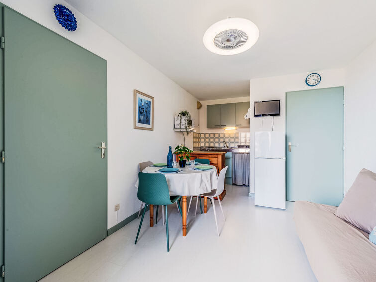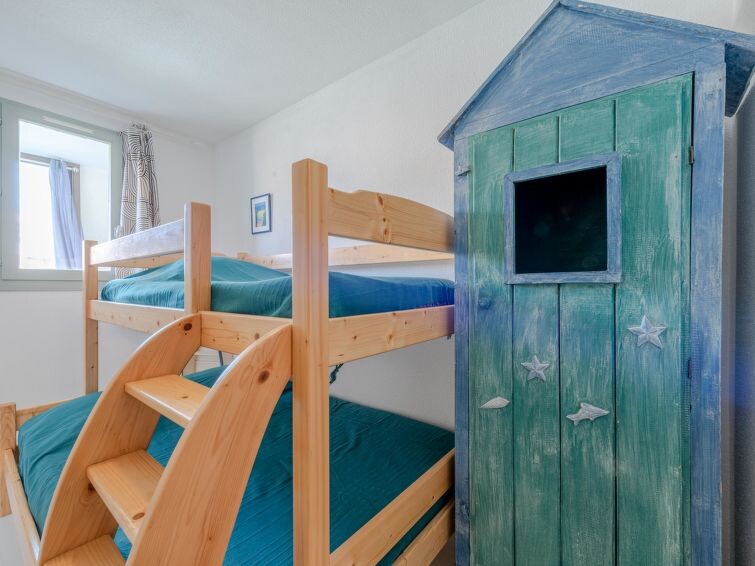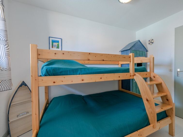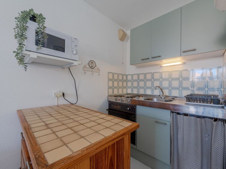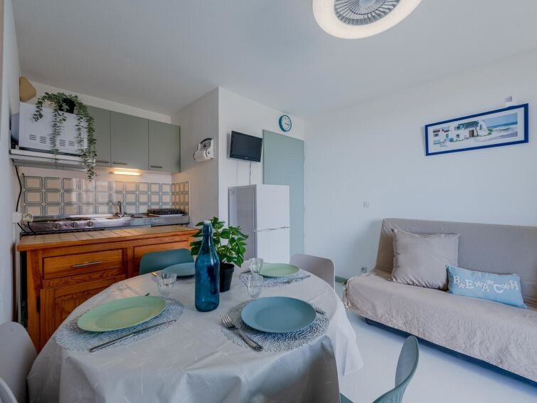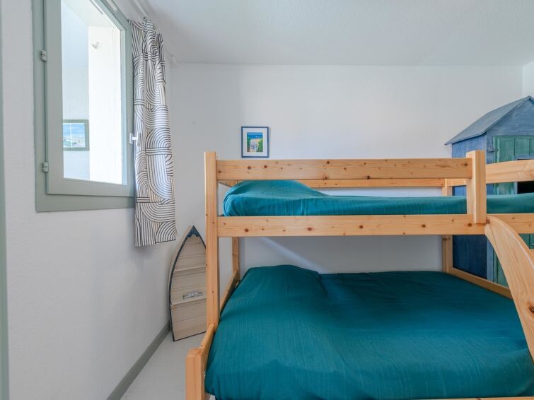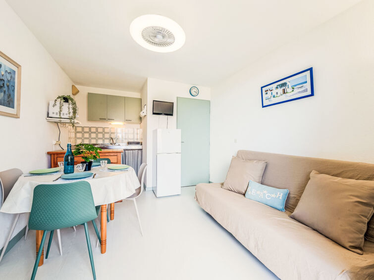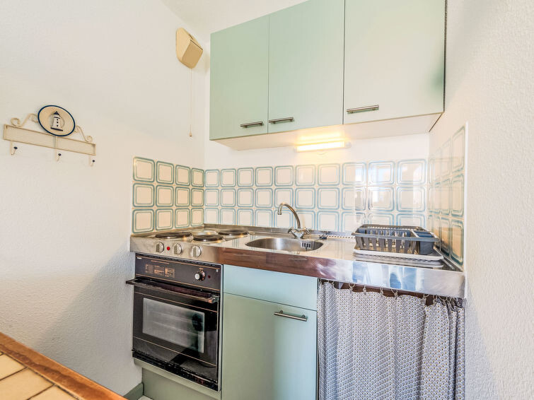 Appartement 2-kamers 25 m2 op de 1e verdieping. Mooi ingericht: woon-/eetkamer met 1 2-pers divanbed (140 cm, lengte 190 cm), TV (Flatscreen TV), DVD. Uitgang naar de loggia. 1 kamer met 1 bed (120 cm, lengte 190 cm), 1 x 1 stapelbedden (90 cm, lengte 190 cm). Kookhoek (3-pits kookplaat, oven, magnetron, diepvriezer, elektrische koffiemachine). Douche/WC. Geen verwarmingsmogelijkheid. Balkonmeubilair. Zijdelings uitzicht op zee. Ter beschikking: wasmachine, strijkijzer, haardroger. Internet (Internet (WiFi), extra). Maximaal 1 huisdier/hond toegestaan. Rookmelders. Loggia voorzien van glas. Aanbod door een particulier volgens art. 155, IV van CGI. FR6640.430.5