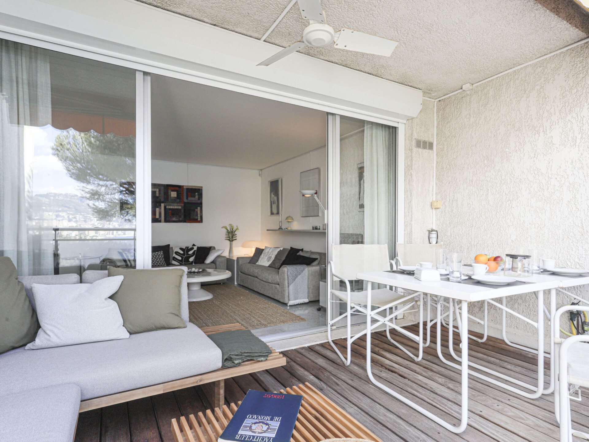 "Parc Massolin", appartement 3-kamers 73 m2 op de 1e verdieping. Licht, mooi en modern ingericht: woon-/eetkamer met eettafel, Sat-TV en air-conditioning. Uitgang naar het balkon. 1 kamer met 1 2-pers bed (160 cm, lengte 200 cm). Uitgang naar het balkon. 1 kamer met 2 bedden (90 cm, lengte 190 cm), douche/WC. Uitgang naar het balkon. Keuken (oven, afwasmachine, 3 inductiekookplaten, broodrooster, waterkoker, magnetron, diepvriezer, elektrische koffiemachine). Douche/WC. Air-conditioning, heteluchtverwarming. Balkon 18 m2. Balkonmeubilair. Mooi panoramazicht op zee. Ter beschikking: wasmachine, strijkijzer, kinderstoel, kinderbed. Internet (WiFi, gratis). Parkeerplaats (1 Auto). Niet rokers woning. Rookmelders. Aanbod door een particulier volgens art. 155, IV van CGI. 06104001675FC