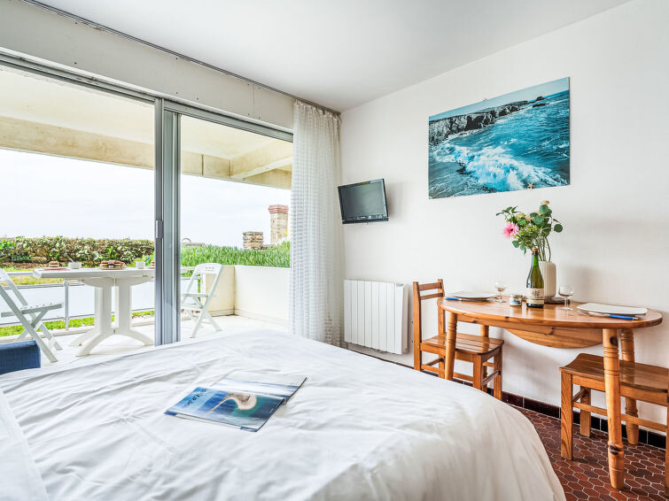"Penduick", studio 1-kamer 20 m2, op de begane grond. Comfortabel ingericht: woon-/eetkamer met 1 2-pers divanbed (140 cm, lengte 190 cm), TV (Flatscreen TV). Uitgang naar het terras. Keuken (2-pits kookplaat, mini-oven, afwasmachine, broodrooster, elektrische koffiemachine). Douche/WC. Elektrische verwarming. Terras 10 m2. Uitzicht op zee. Ter beschikking: wasmachine. Internet (WiFi, extra). Parkeerplaats nr. 11. 1 klein huisdier/hond toegestaan. Rookmelders. Aanbod door een particulier volgens art. 155, IV van CGI. 56186 000342 2W
