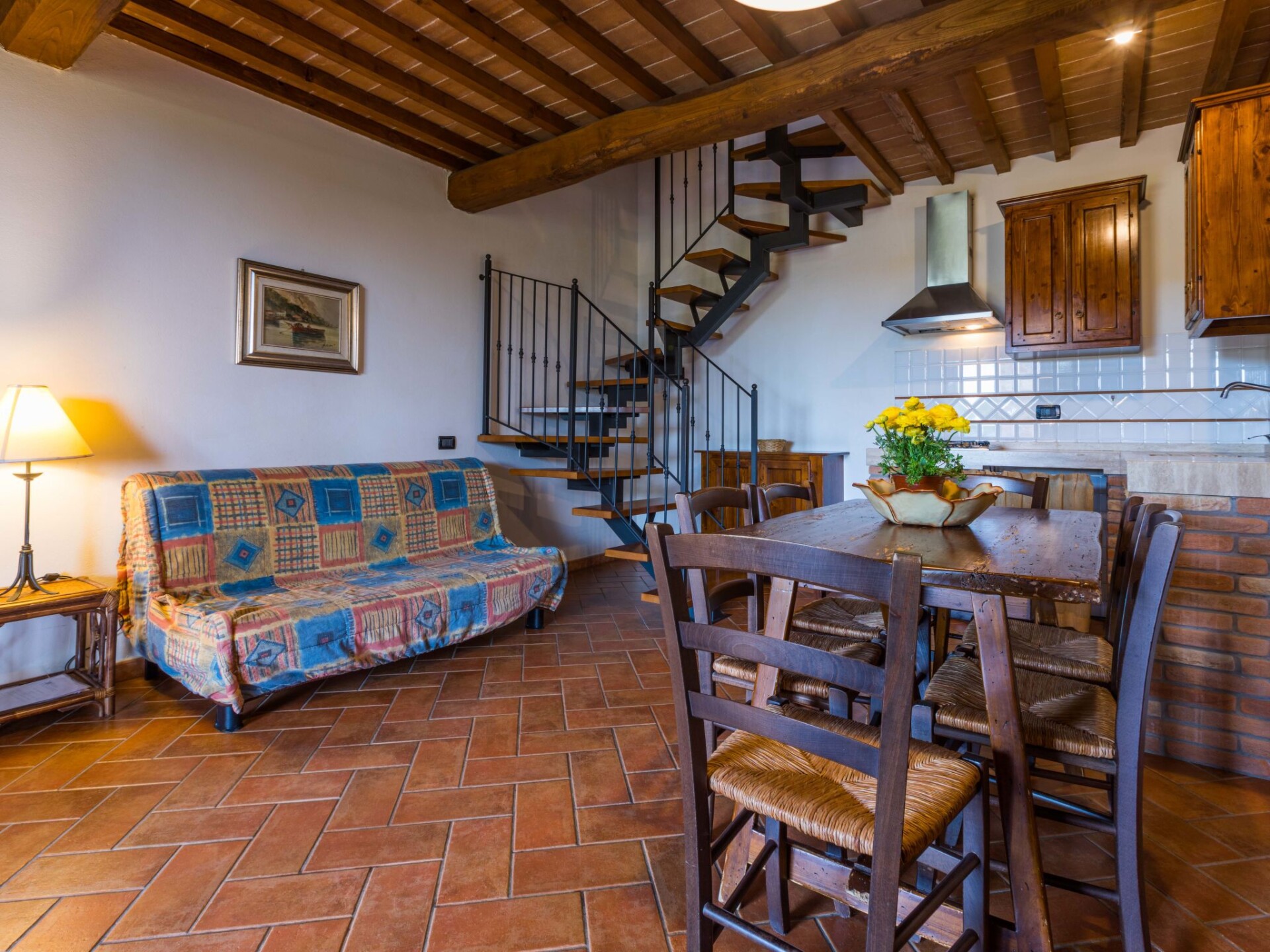 Appartement 3-kamers 52 m2 op 3 verdiepingen. Rustiek ingericht: woon-/slaapkamer met 1 2-pers divanbed, eettafel en Sat-TV. Open keuken (3 kookpitten (vlammen)). Bovenverdieping: 1 kamer met 1 2-pers bed. Douche/WC. 2e Verdieping: 1 open kamer met afgeschuinde daken met 1 2-pers bed. Douche/WC. Gas-verwarming. Zithoek in de tuin. Terrasmeubelen, barbecue. Ter beschikking: kinderbed. Internet (Internet (WiFi), gratis). Maximaal 1 huisdier/hond toegestaan. Privé ingang. IT049007B4PUUF384N