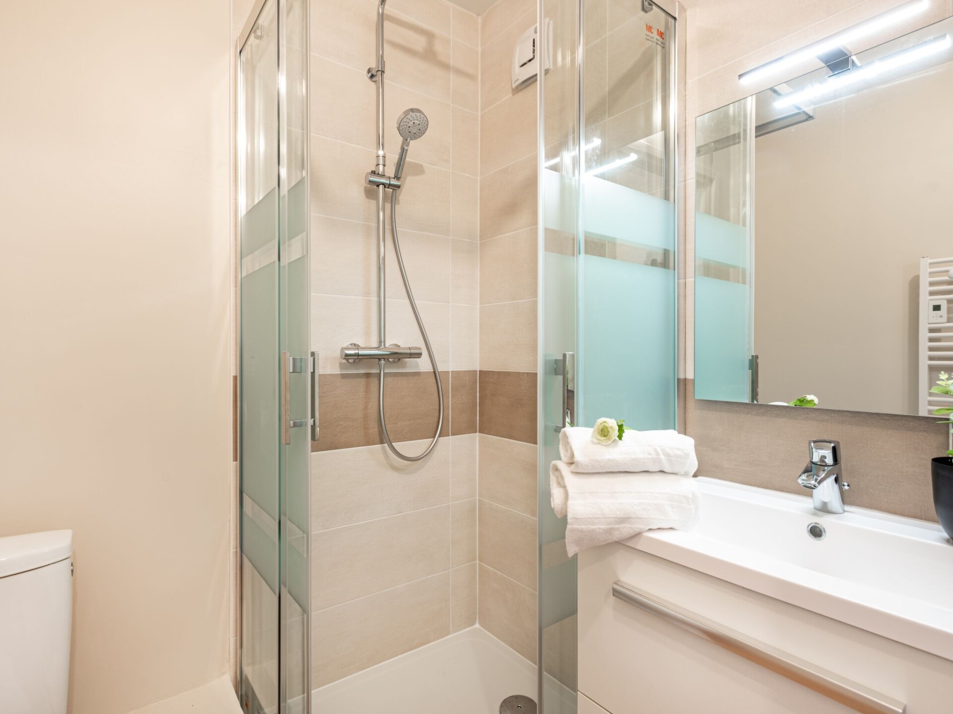 Studio 1-kamer 26 m2. Gerenoveerd in 2021, comfortabel ingericht: woon-/slaapkamer met 1 2-pers divanbed (1 x 140 cm, lengte 190 cm), TV (Flatscreen TV). Uitgang naar het balkon. Open keuken (afwasmachine, 3 inductiekookplaten, magnetron, grill). Douche/WC. Elektrische verwarming. Balkon 6 m2. Balkonmeubilair, ligstoelen (1). Uitzicht op de tuin. Ter beschikking: wasmachine, strijkijzer, haardroger. Internet (WiFi, gratis). Parkeerplaats (omheind, 1 Auto). Rookmelders. 5603400060392