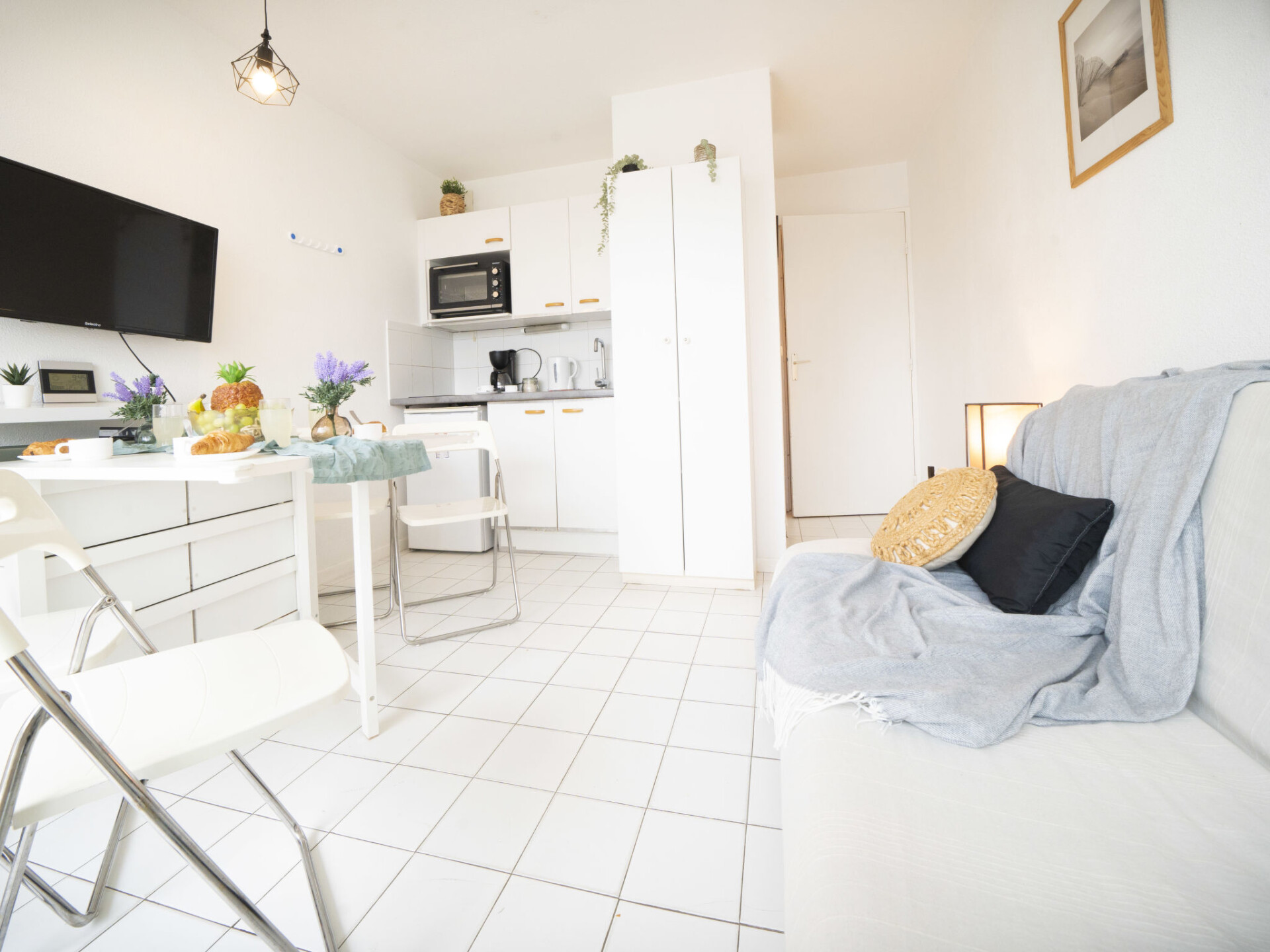 Residentie "Port Athéna". In de wijk La Motte du Couchant, 1.5 km van het centrum van La Grande Motte, 200 m van zee, 150 m van het strand. Openbare parkeerplaatsen in de straat extra. Winkelcentrum 100 m, restaurant, bushalte 200 m, treinstation "Montpellier" 25 km, zandstrand 150 m, thermaalbad "Thalasso Spa" 4 km. Jachthaven 1 km, golfterrein (18 holes) 4 km, zeilschool 900 m, tennis 3.5 km, manege 2 km. Attracties in de buurt: Seaquarium du Grau Du Roi 10 km, Les Remparts d'Aigues Mortes 12 km, Les Saintes Maries de la Mer 40 km. Vliegveld in de buurt 20 km van het huis.