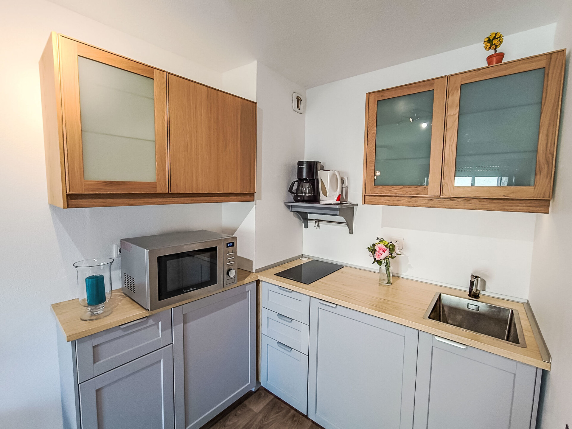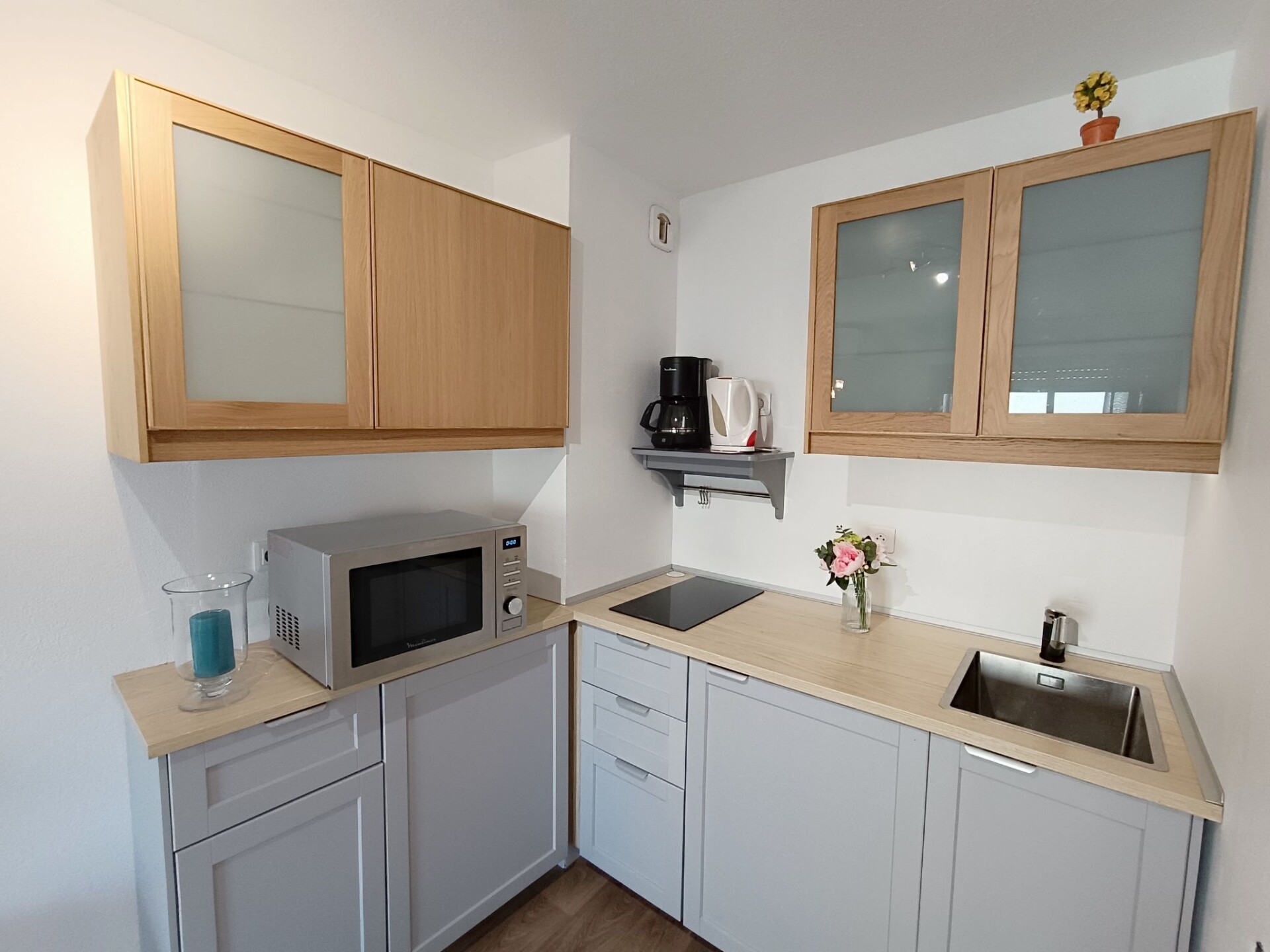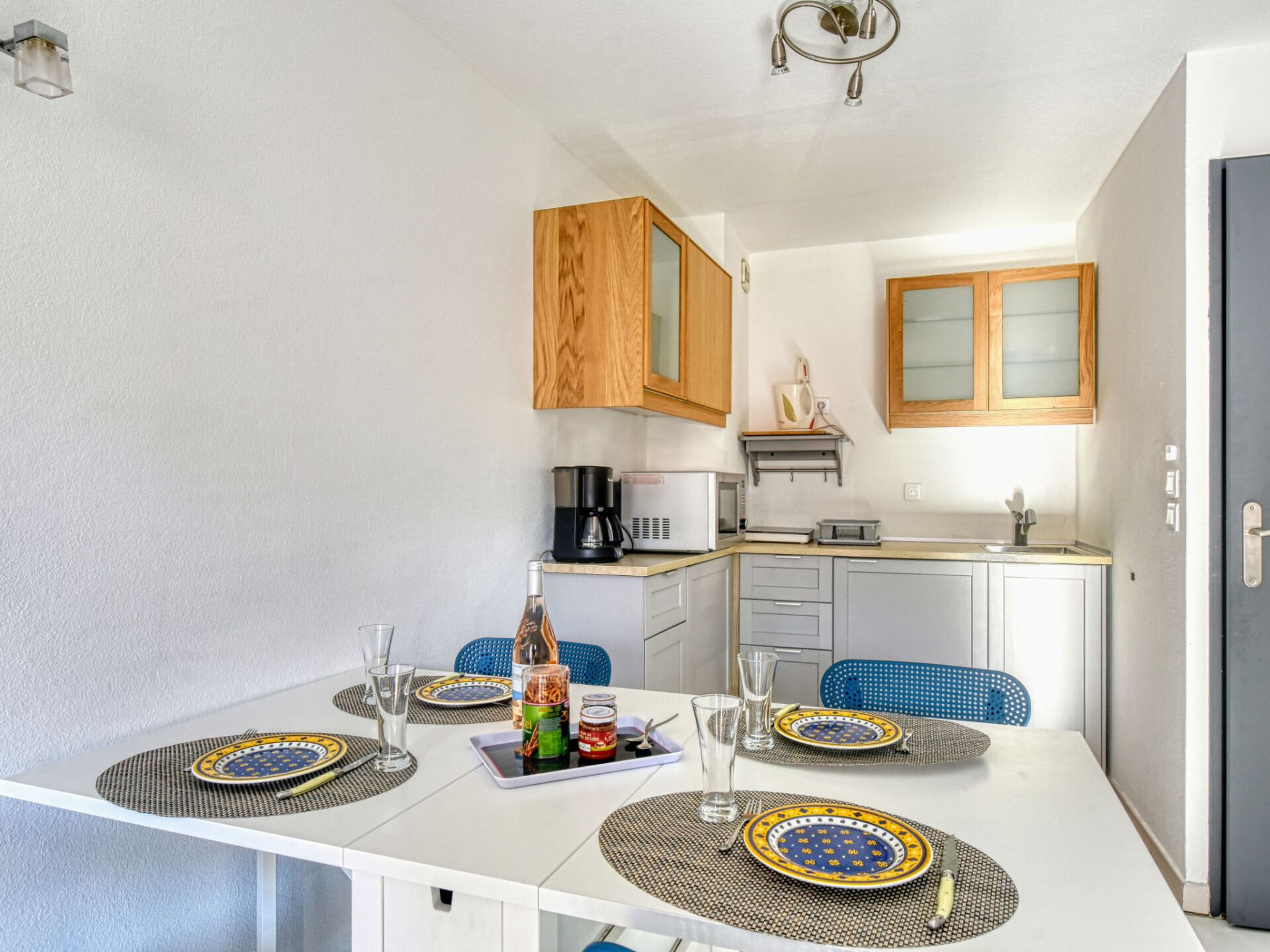 Appartement 2-kamers 29 m2 op de 3e verdieping. Het objekt is geschikt voor 2 volwassenen + 2 kinderen. Gerenoveerd in 2020: woon-/eetkamer met 1 2-pers divanbed (1 x 140 cm, lengte 200 cm), eethoek, TV en air-conditioning. Uitgang naar het terras. 1 kleine kamer met 1 2-pers bed (1 x 140 cm, lengte 190 cm). Kookhoek (1 inductiekookplaten, waterkoker, elektrische koffiemachine, combimagnetron). Douche, aparte WC. Elektrische verwarming. Terras. Terrasmeubelen. Ter beschikking: wasmachine. Internet (Internet (WiFi), extra). Parkeerplaats nr. 20 (overdekt), hoogte 190 cm, breedte 205 cm. Niet rokers woning. TV alleen FR. Rookmelders.