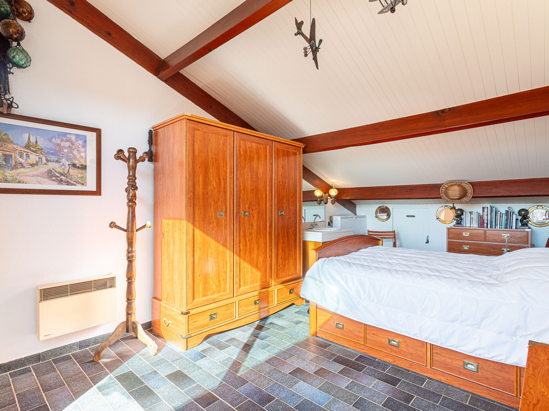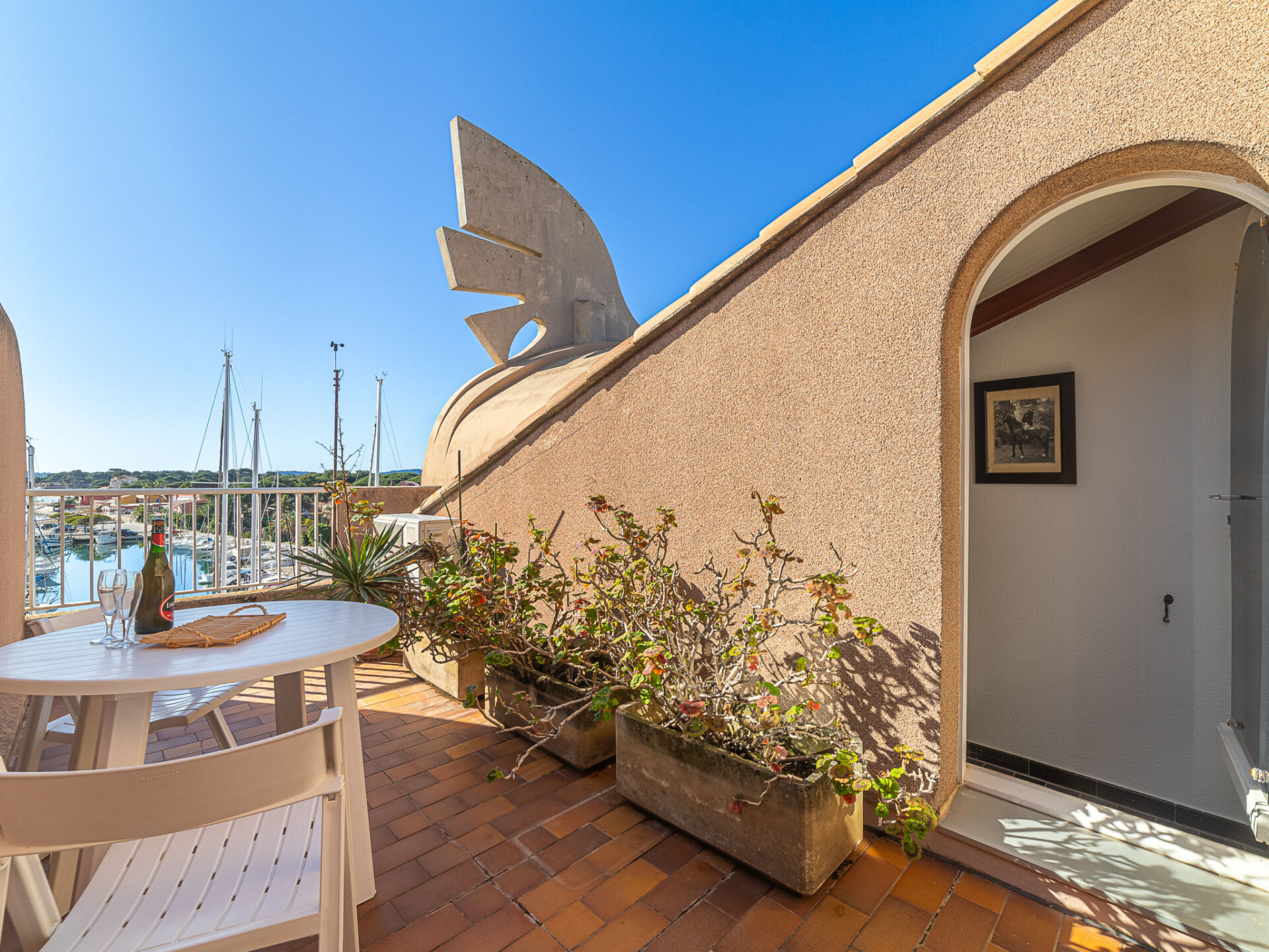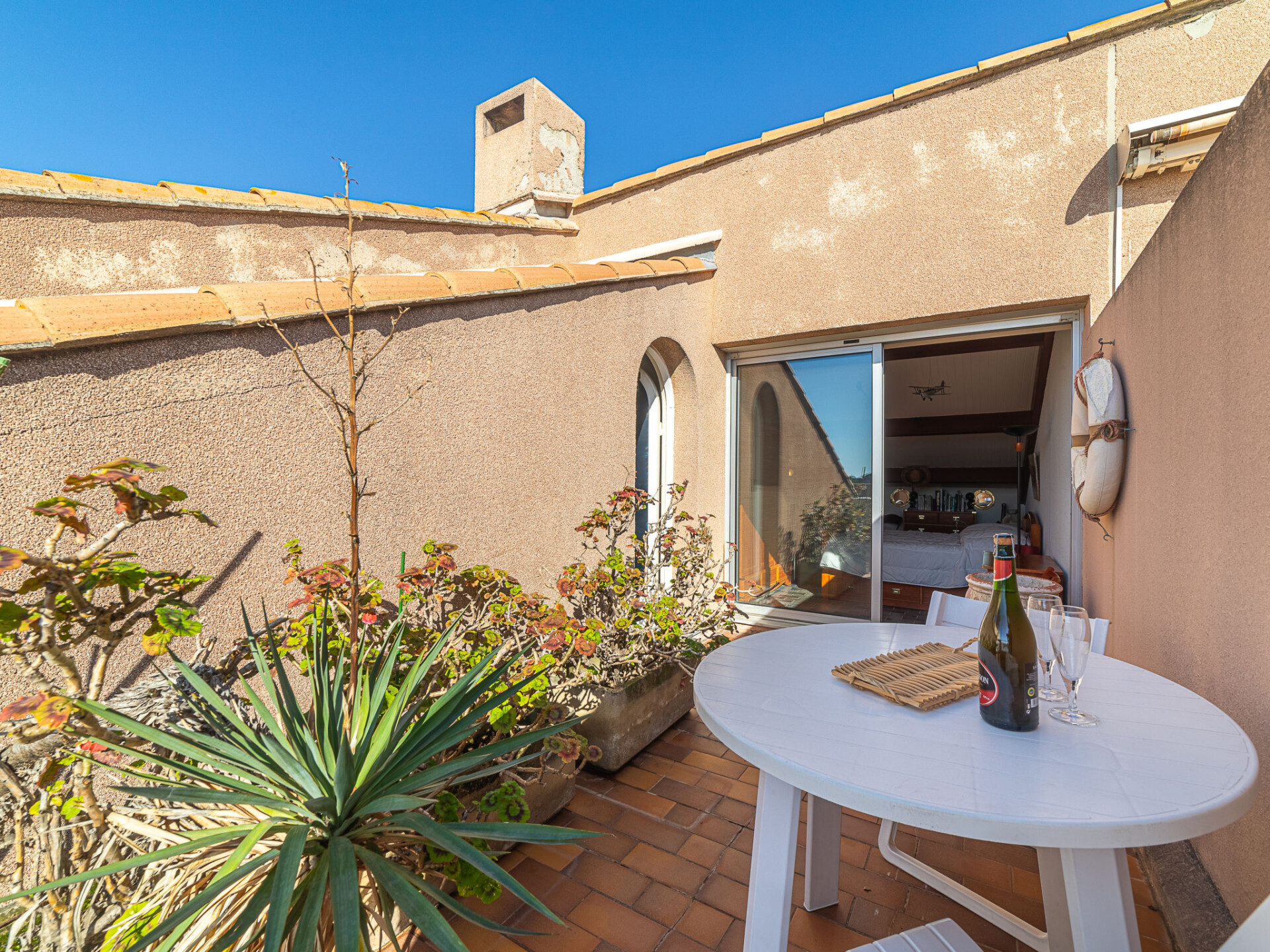 Appartement 2-kamers 43 m2 op 2 verdiepingen op de 3e verdieping. Licht, mooi ingericht: woon-/eetkamer met 1 2-pers divanbed (140 cm, lengte 190 cm), eettafel en TV (Flatscreen TV), stereo-installatie en air-conditioning. Uitgang naar het terras, op het zuiden. Kookhoek (mini-oven, afwasmachine, 3 keramische glas kookplaten, broodrooster, waterkoker, magnetron, diepvriezer, elektrische koffiemachine, pads voor de koffiemachine (Nespresso) extra). Badkamer, aparte WC. Elektrische verwarming. Bovenverdieping: 1 kamer met afgeschuinde daken met panoramavenster met 1 2-pers bed (140 cm, lengte 190 cm), wastafel. Uitgang naar het terras, op het zuiden. 2 terrassen, op het zuiden gelegen. Terrasmeubelen, ligstoelen. Zeer mooi uitzicht op zee. Ter beschikking: wasmachine. Internet (Internet (WiFi), gratis). TV alleen FR. Rookmelders. Aanbod door een particulier volgens art. 155, IV van CGI.