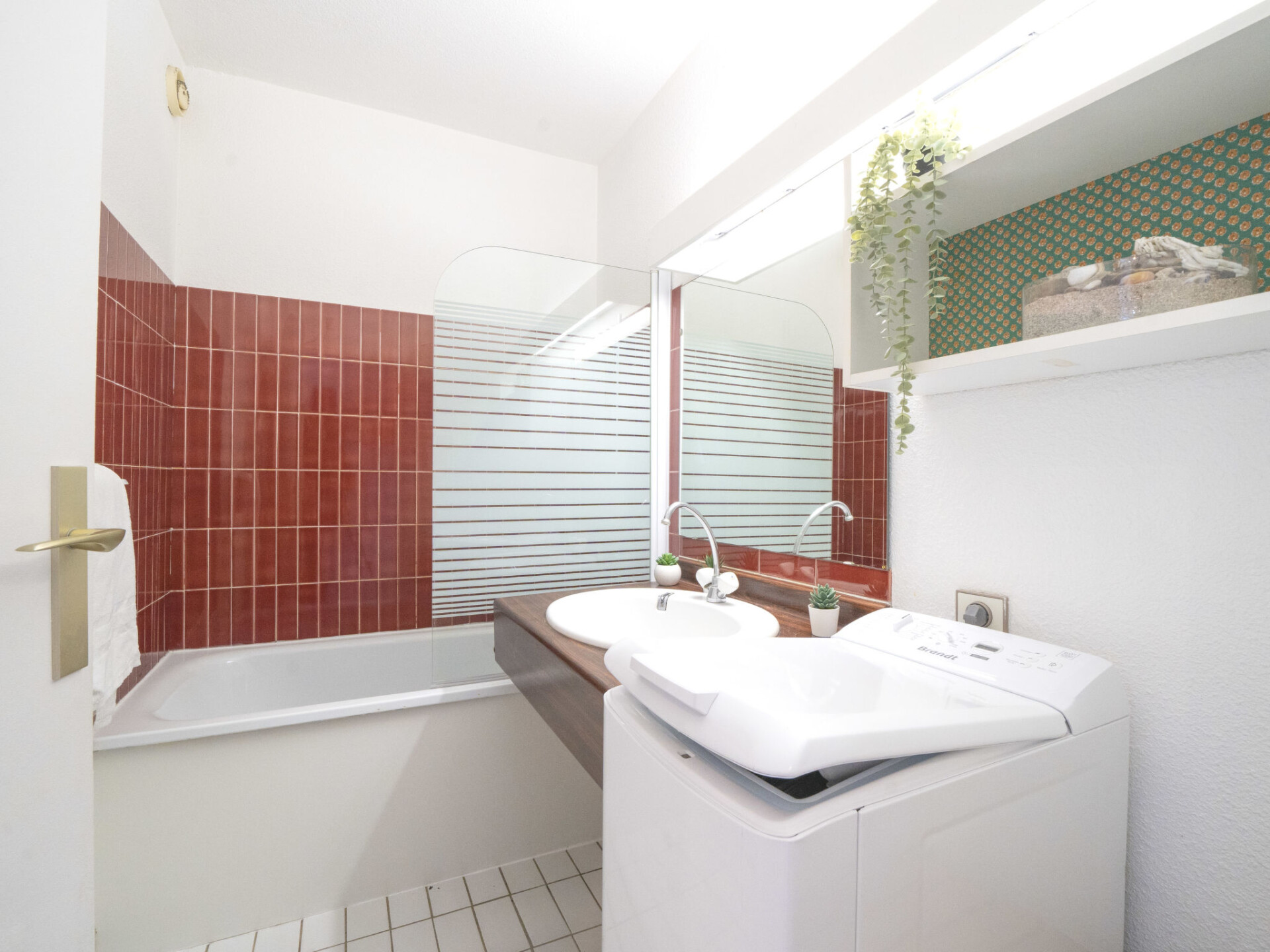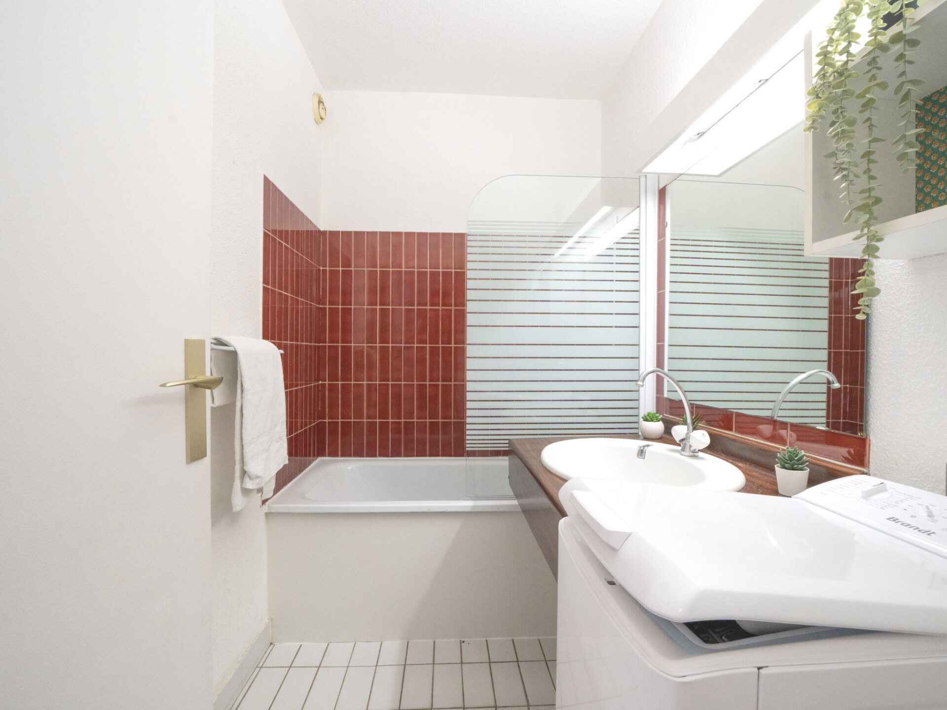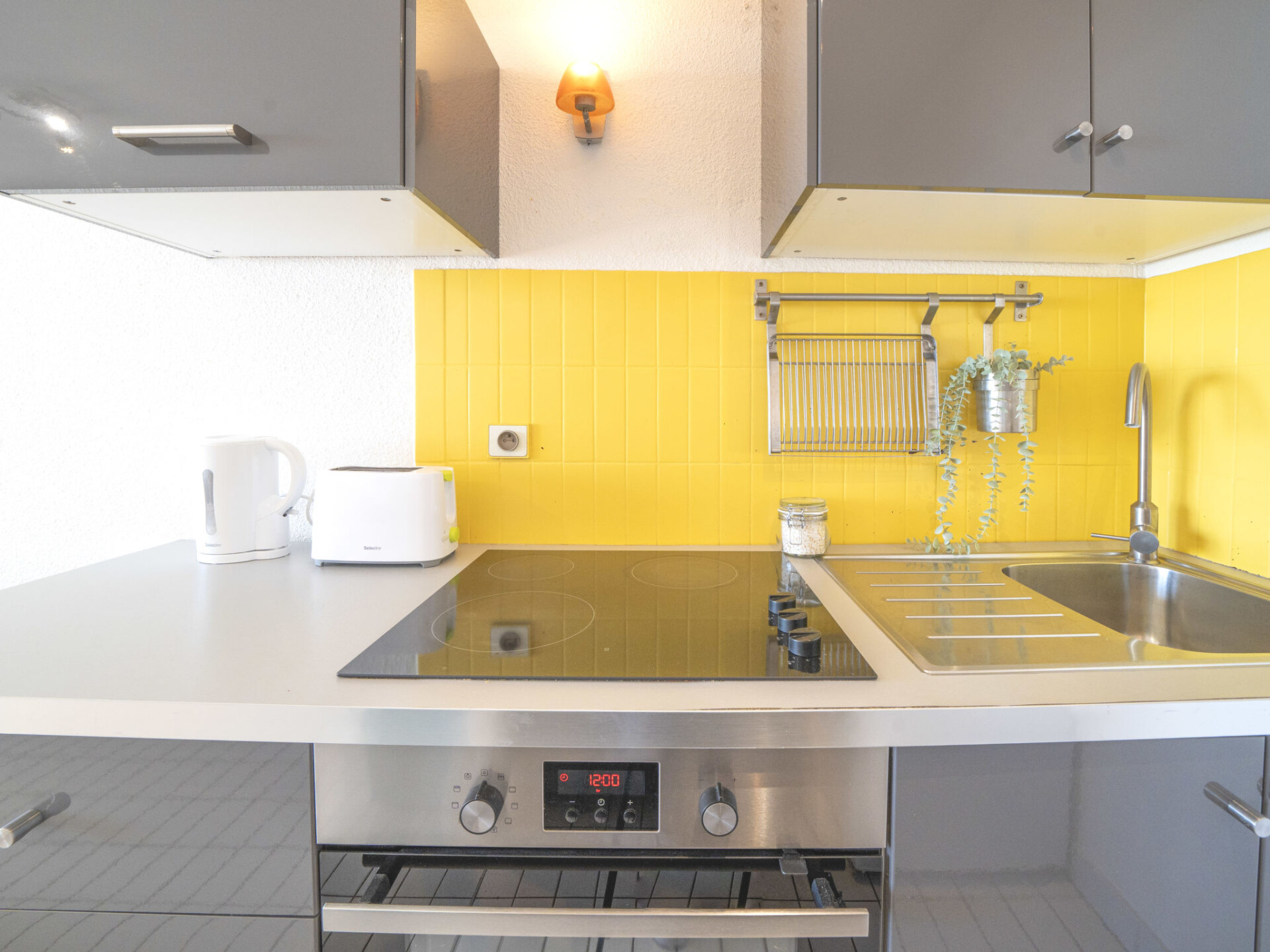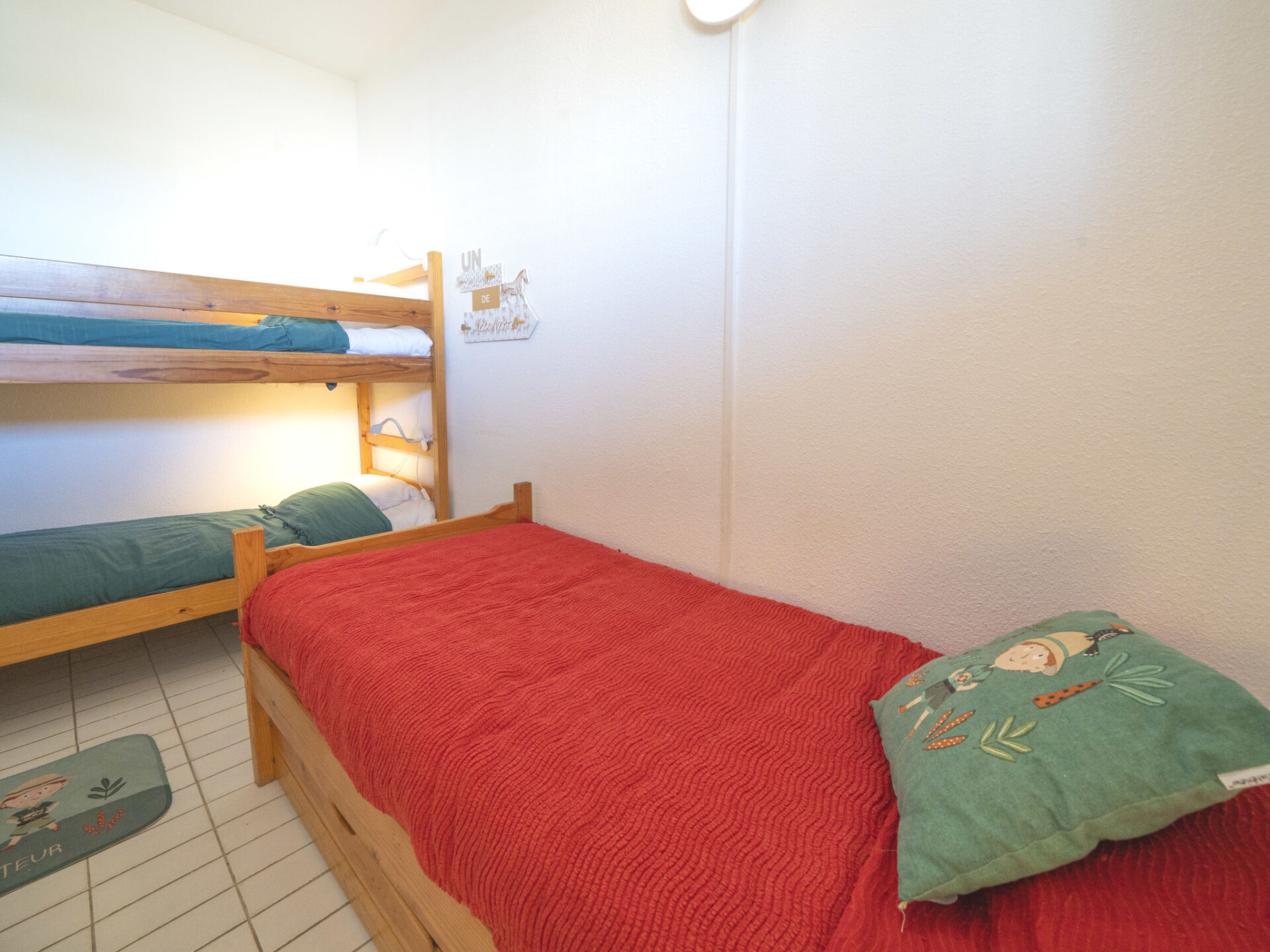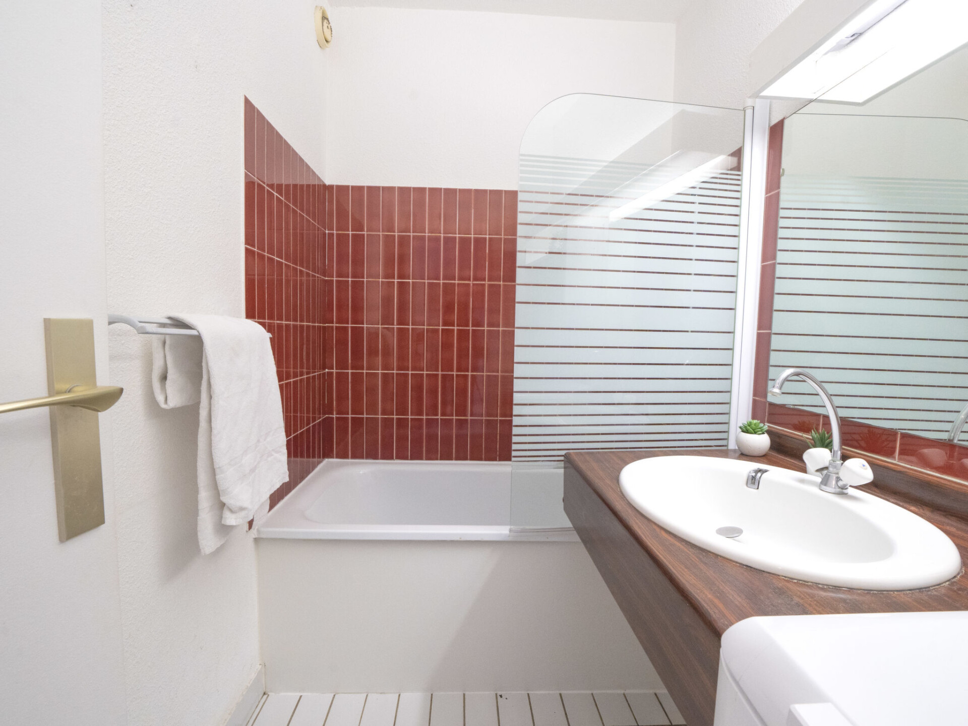 Appartement 2-kamers 42 m2 op de 5e verdieping, op het zuiden gelegen. Woon-/eetkamer met 1 2-pers divanbed (140 cm, lengte 190 cm), TV (Flatscreen TV). Uitgang naar het terras. 1 kamer met 1 bed (80 cm, lengte 190 cm), 1 x 2 stapelbedden (80 cm, lengte 190 cm). Open keuken (oven, 3 keramische glas kookplaten, broodrooster, waterkoker, magnetron, diepvriezer, elektrische koffiemachine). Badkamer, aparte WC. Terras 9 m2 gedeeltelijk overdekt, op het zuiden gelegen. Terrasmeubelen. Zeer mooi uitzicht op zee. Ter beschikking: wasmachine. Internet (Internet (WiFi), extra). Parkeerplaats. Rookmelders.