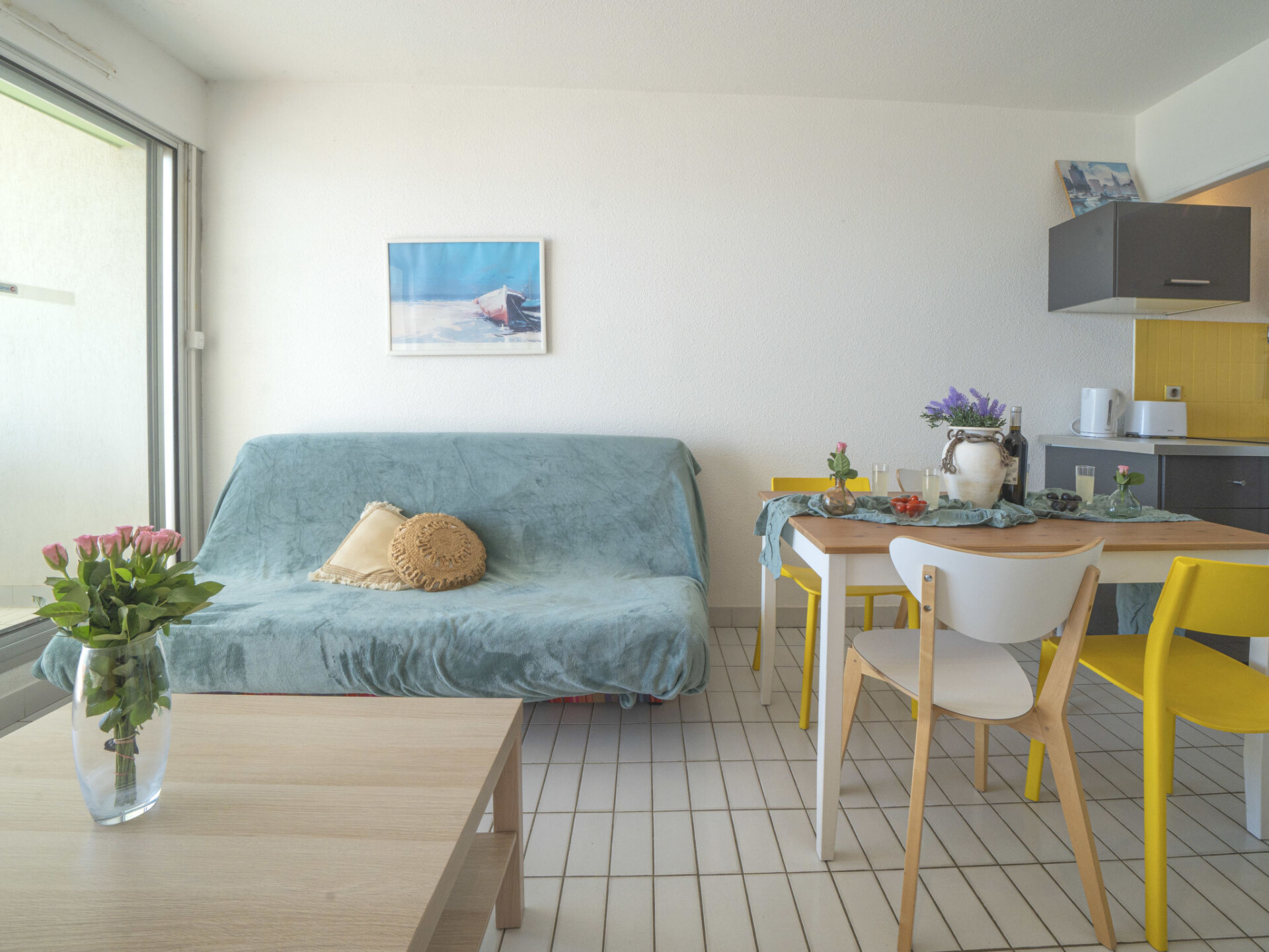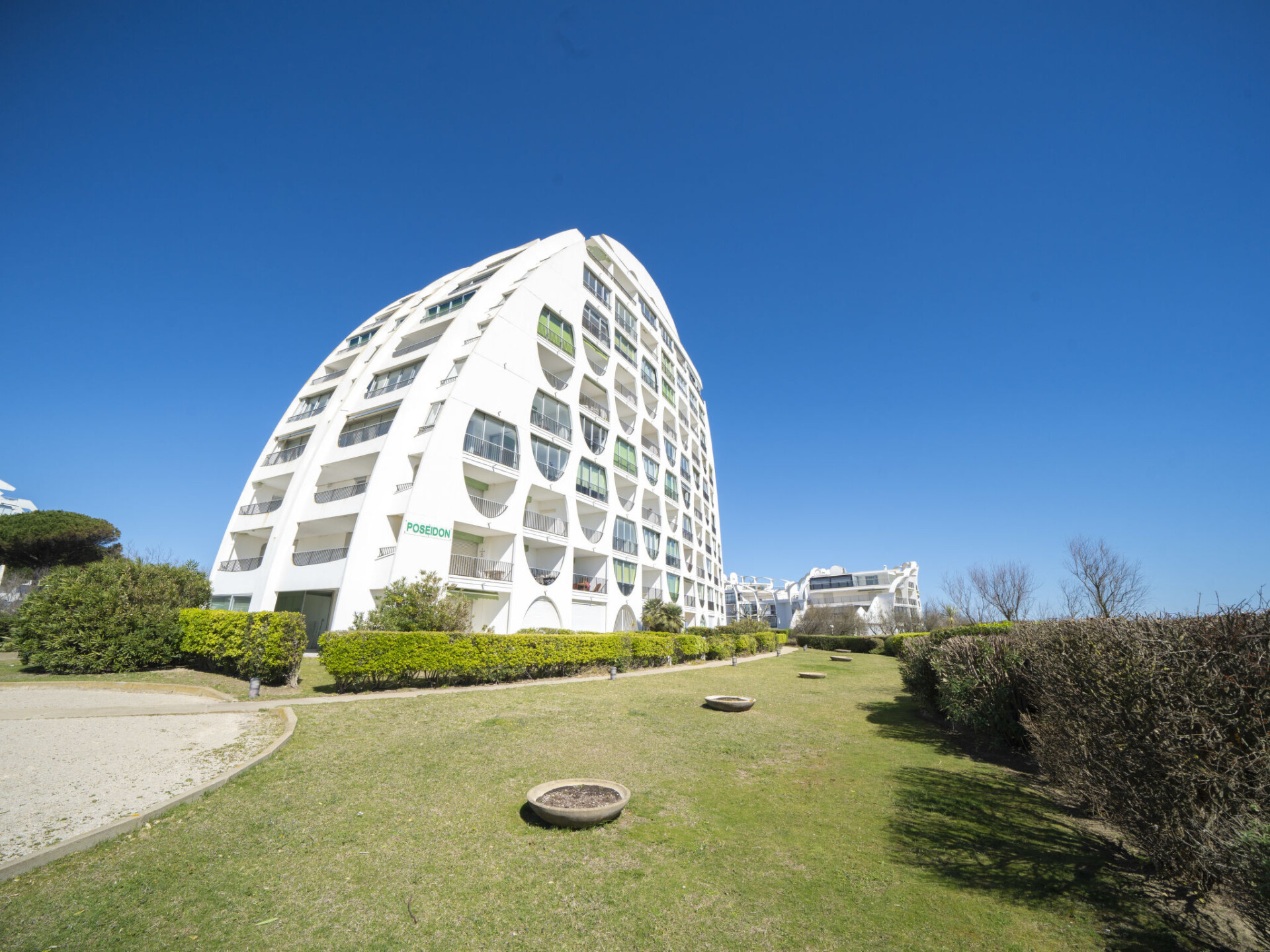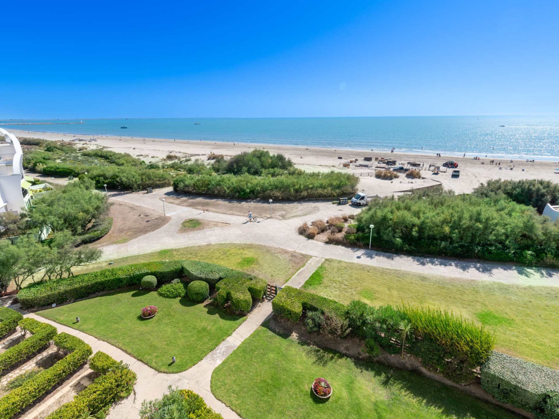 Residentie "Poséidon", van 8 verdiepingen. In de wijk La Motte du Couchant, 2 km van het centrum, 100 m van zee, 180 m van het strand, directe toegang tot het strand. In het complex: lift. Winkelcentrum 200 m, restaurant, bushalte 450 m, treinstation "Montpellier" 25 km, zandstrand 50 m, overdekt zwembad 3.3 km, thermaalbad "Thalasso Spa" 2.5 km. Jachthaven 1.3 km, golfterrein (18 holes) 3.6 km, zeilschool 1.3 km, tennis 3.3 km, manege 1.4 km. Attracties in de buurt: Le Seaquarium du Grau Du Roi 10 km, Les Remparts d'Aigues Mortes 12 km, Les saintes Maries de la Mer 40 km. Vliegveld in de buurt 20 km van het huis.