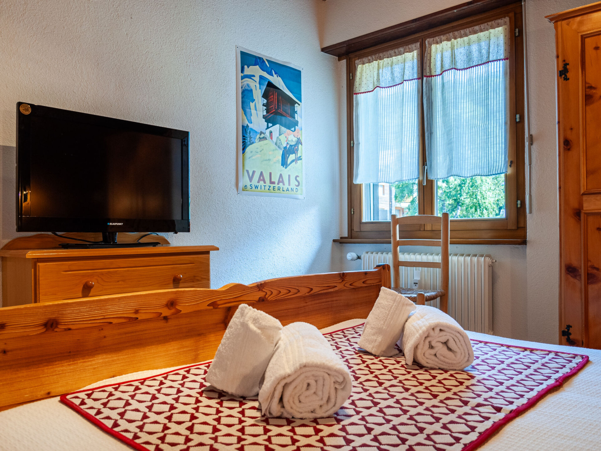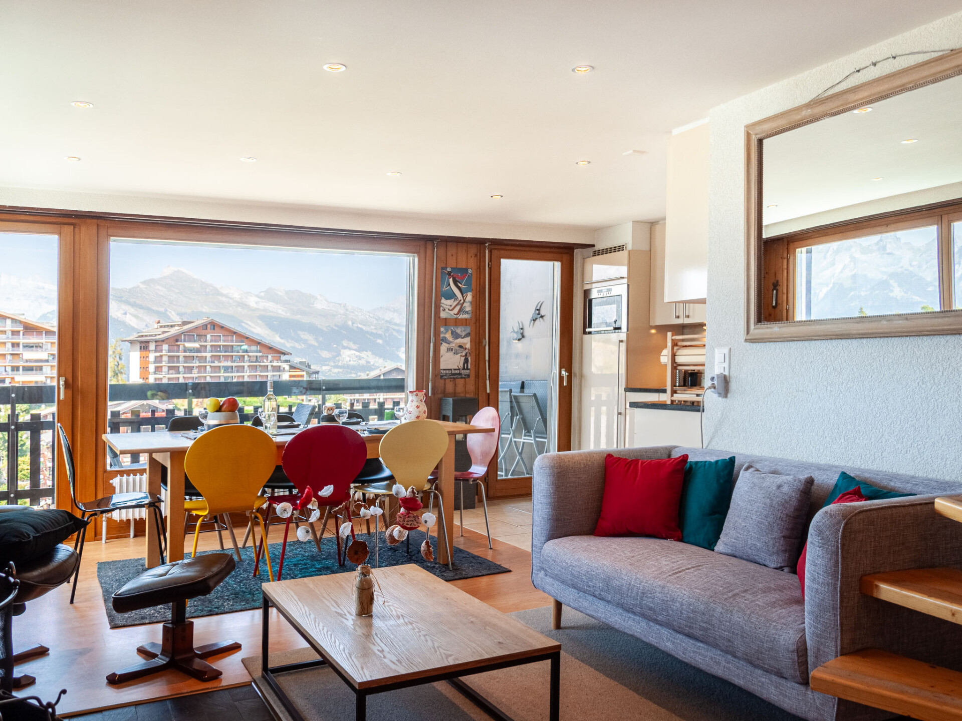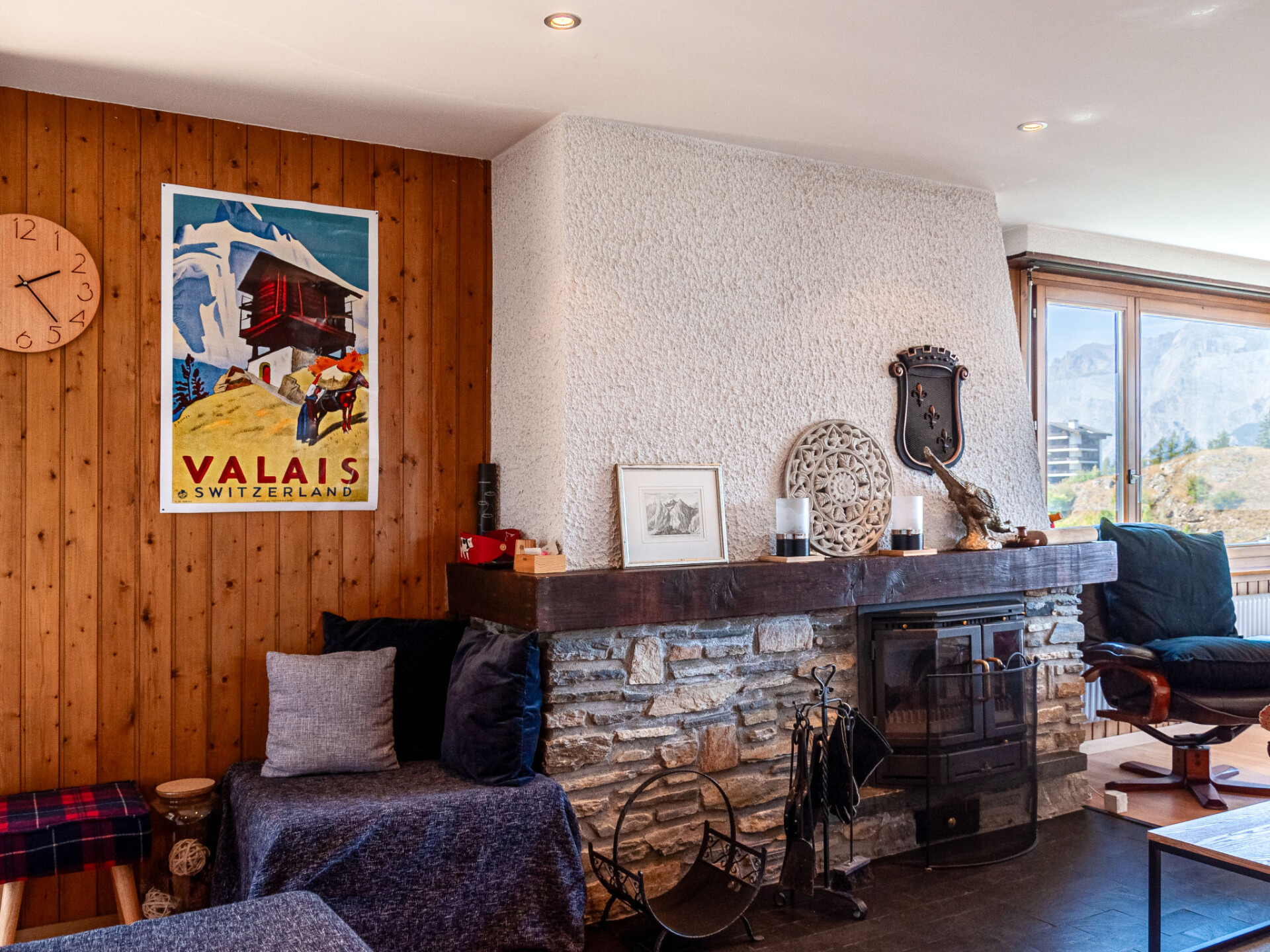 "Prameiraz 10", dakappartement 4-kamers 85 m2 op 2 verdiepingen op de 3e verdieping, op het noordwesten gelegen. Licht, gedeeltelijk afgeschuinde daken, gedeeltelijk gerenoveerd in 2012, mooi en smaakvol ingericht: kleine woon-/eetkamer, op het noordwesten met open haard en Kabel-TV. Uitgang naar het balkon, op het westen. 1 kamer met 1 2-pers bed (180 cm, lengte 200 cm). Open keuken (oven, afwasmachine, 4 keramische glas kookplaten, magnetron, elektrische koffiemachine, pads voor de koffiemachine (nespresso) extra, raclette oven, fondue Set (kaas)). Uitgang naar het balkon, op het noorden. Bad/WC. Bovenverdieping: 1 kamer met 1 2-pers bed (180 cm, lengte 200 cm), bad/WC. Uitgang naar het balkon, op het noorden. 1 kamer met 1 2-pers bed (160 cm, lengte 200 cm). Douche/WC. 2 balkons, op het noorden gelegen balkon, op het westen gelegen. Zeer mooi uitzicht op de bergen en de plaats. Ter beschikking: kinderbed. Internet(WiFi), gratis). Parkeerplaats nr. valaisia 9 (overdekt) op 100 m. Niet geschikt voor kleine kinderen. Niet rokers woning.