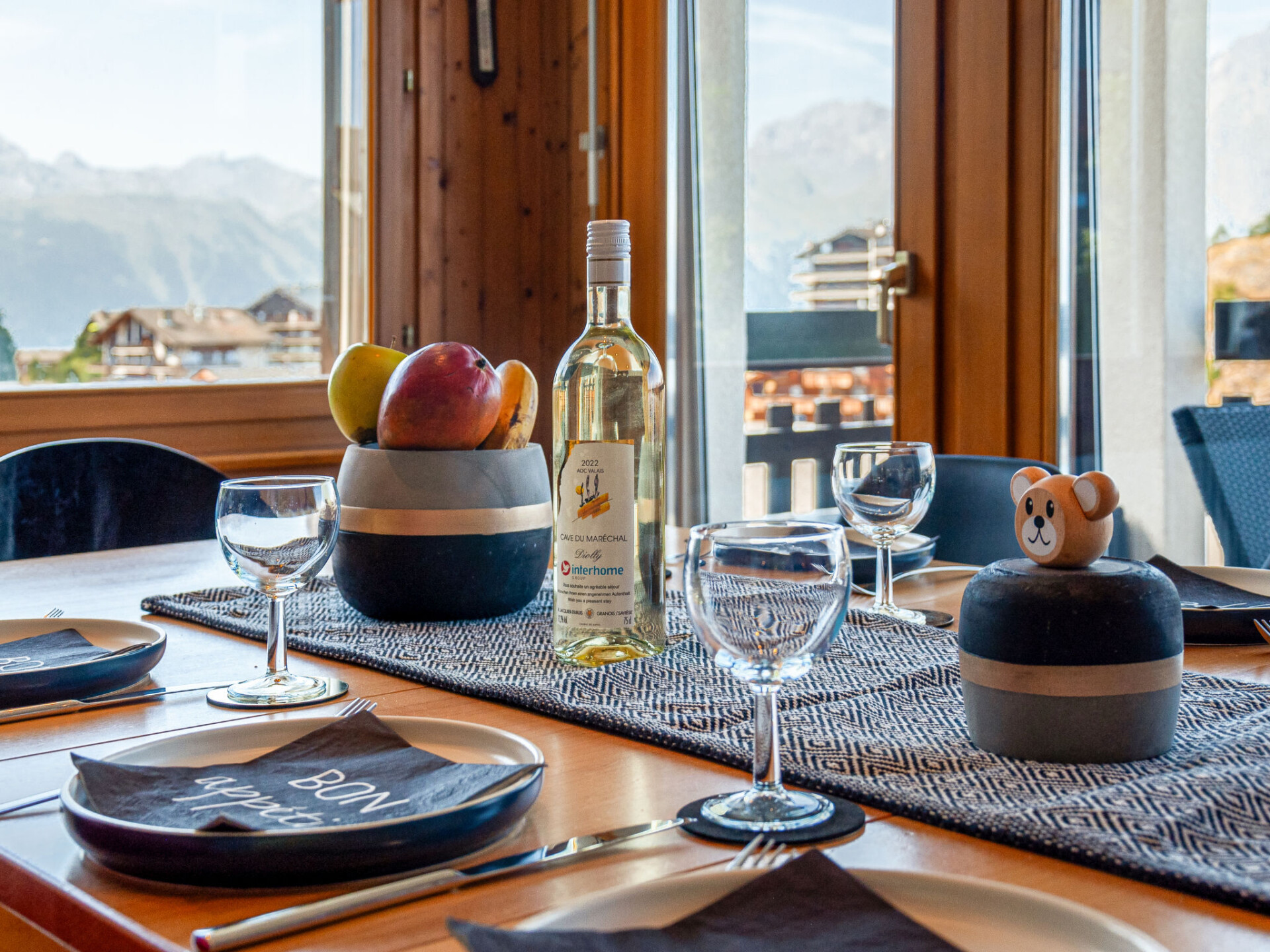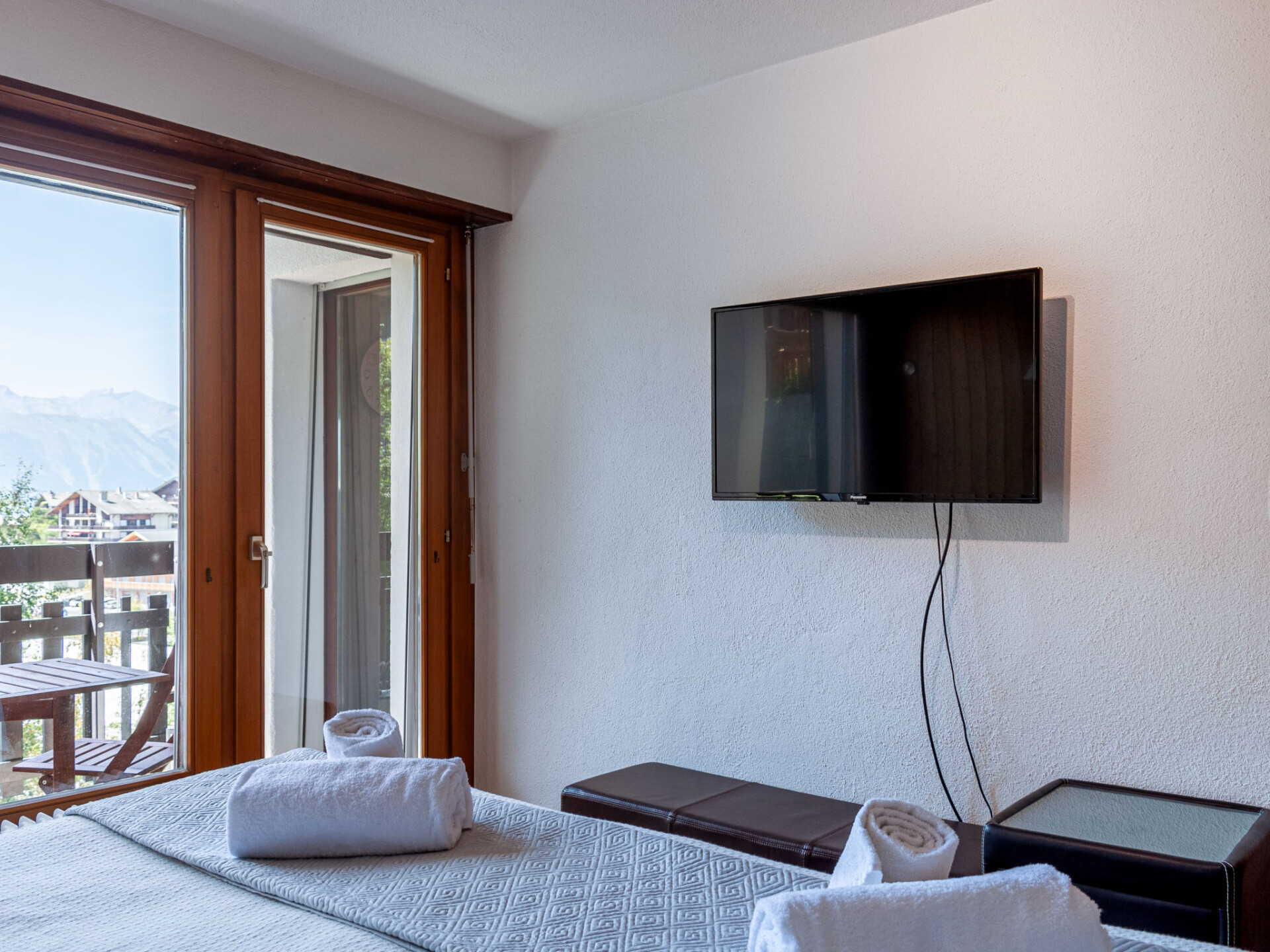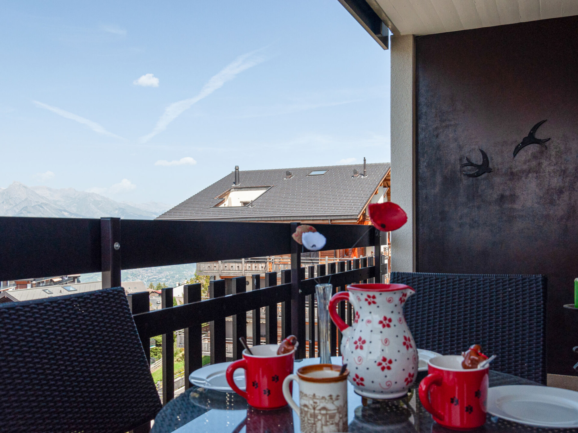 "Prameiraz 10", dakappartement 4-kamers 85 m2 op 2 verdiepingen op de 3e verdieping, op het noordwesten gelegen. Licht, gedeeltelijk afgeschuinde daken, gedeeltelijk gerenoveerd in 2012, mooi en smaakvol ingericht: kleine woon-/eetkamer, op het noordwesten met open haard en Kabel-TV. Uitgang naar het balkon, op het westen. 1 kamer met 1 2-pers bed (180 cm, lengte 200 cm). Open keuken (oven, afwasmachine, 4 keramische glas kookplaten, magnetron, elektrische koffiemachine, pads voor de koffiemachine (nespresso) extra, raclette oven, fondue Set (kaas)). Uitgang naar het balkon, op het noorden. Bad/WC. Bovenverdieping: 1 kamer met 1 2-pers bed (180 cm, lengte 200 cm), bad/WC. Uitgang naar het balkon, op het noorden. 1 kamer met 1 2-pers bed (160 cm, lengte 200 cm). Douche/WC. 2 balkons, op het noorden gelegen balkon, op het westen gelegen. Zeer mooi uitzicht op de bergen en de plaats. Ter beschikking: kinderbed. Internet(WiFi), gratis). Parkeerplaats nr. valaisia 9 (overdekt) op 100 m. Niet geschikt voor kleine kinderen. Niet rokers woning.