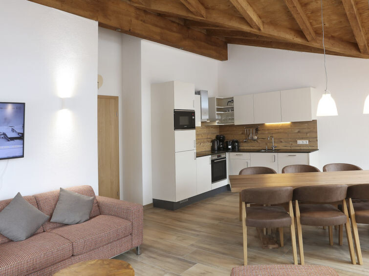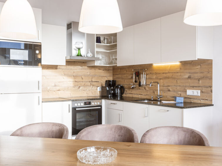 "Premium 324 für bis zu 8 Personen", appartement 5-kamers 104 m2. Licht, comfortabel en smaakvol ingericht: woonkamer met eethoek en Sat-TV (Flatscreen TV). 1 2-pers. kamer met douche/WC en Sat-TV (Flatscreen TV). 3 2-pers. kamers, elke kamer heeft Sat-TV (Flatscreen TV). Open keuken (oven, afwasmachine, 4 keramische glas kookplaten, broodrooster, waterkoker, magnetron, elektrische koffiemachine). 2 douche/WC's. Balkon. Balkonmeubilair. Mooi uitzicht. Ter beschikking: haardroger. Internet (Internet (WiFi), gratis). Niet rokers woning. 50616-001305-2020