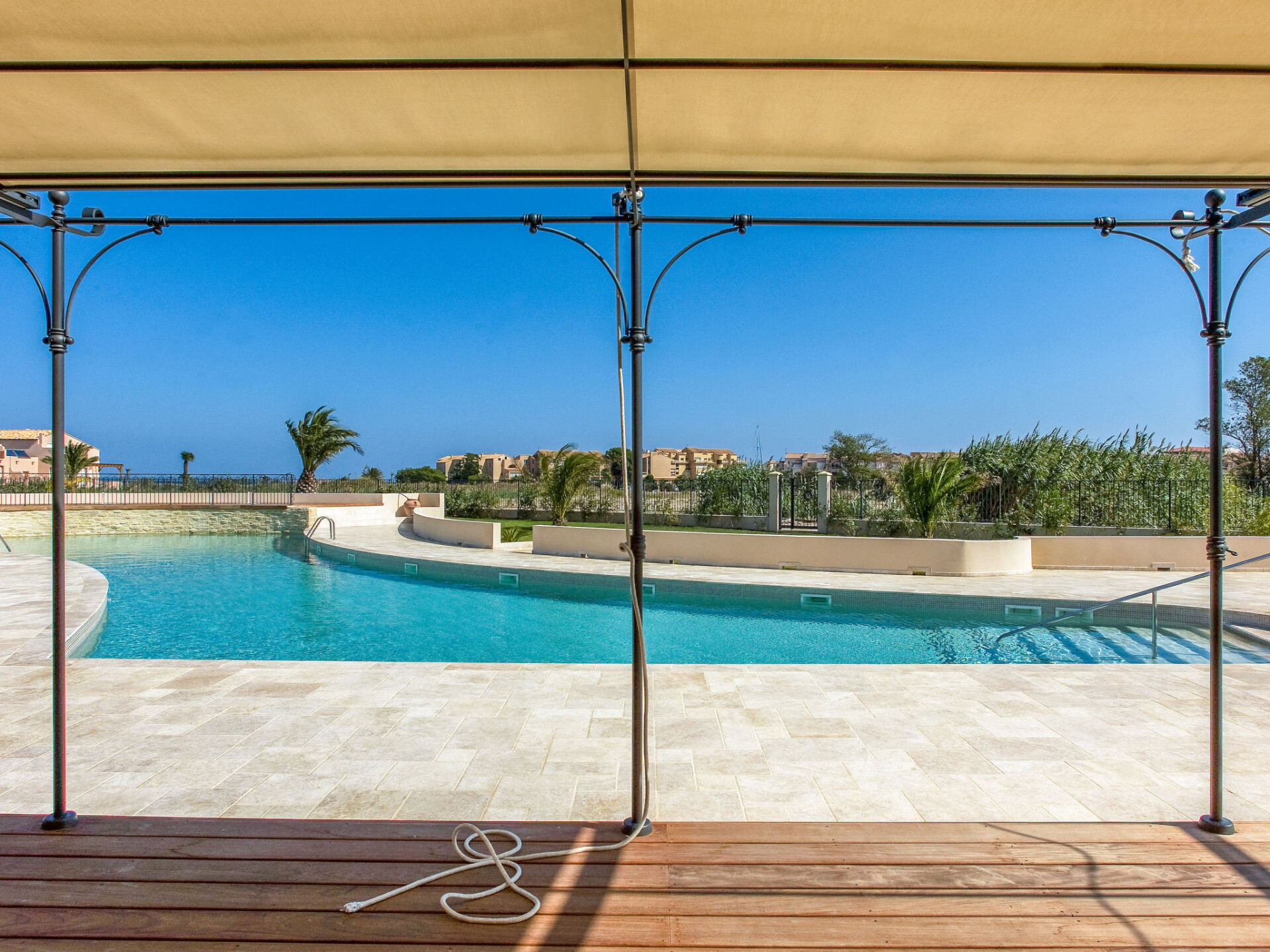Residentie "Presqu'île de la Lagune", van 2 verdiepingen, bouwjaar 2008. In de wijk La Lagune, 1.3 km van zee, 1.3 km van het strand. Voor medegebruik: verzorgde tuin, openluchtzwembad (10 x 20 m, 145 - 145 cm diepte, seizoensgebonden beschikbaarheid: 15.Jun. - 15.Sep.). Winkel, levensmiddelenwinkel 800 m, supermarkt 2 km, restaurant, bushalte 800 m, treinstation "Elne" 7 km, zandstrand "Plage Sud" 1.3 km, duikschool 2 km, lagune 50 m. Jachthaven 2.6 km, golfterrein (27 holes) 6 km, zeilschool 2.2 km, midgetgolf 4.4 km, manege 2.2 km, sportcentrum 900 m. Attracties in de buurt: Aqualand 1.5 km, Collioure 15 km, Perpignan 20 km, Barcelone 200 km. Wandelgebied Massif des Albères 12 km.