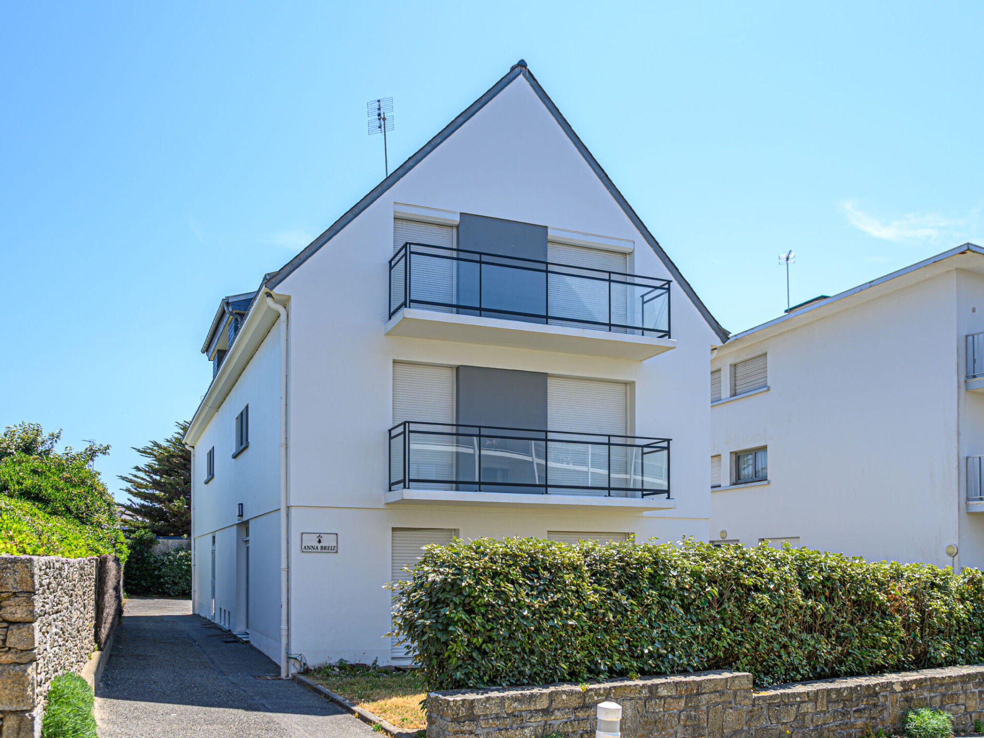 Quiberon: Residentie "Résidence Anna Breizh", van 3 verdiepingen. 30 m van zee, 300 m van het strand. Winkel 1 km, levensmiddelenwinkel 1 km, restaurant 1 km, bar 1 km, bushalte 200 m, zandstrand "Grande plage De Quiberon" 300 m, thermaalbad "Thalassothérapie" 600 m. Jachthaven 1 km, golfterrein (9 holes) 800 m. Attracties in de buurt: Casino de Quiberon 200 m, Thalassothérapie 600 m, Les Alignements de Carnac 30 km, Vannes 50 km, Belle Ile en Mer. De sleuteloverdracht vindt plaats bij het agentschap Interhome in Quiberon, 1 km.