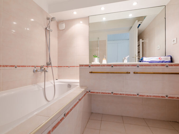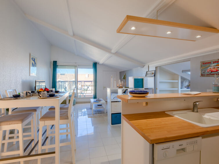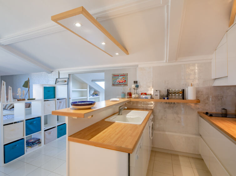 Dakappartement 1-kamer 40 m2 op de 5e verdieping. Comfortabel ingericht: woon-/eetkamer met 1 2-pers divanbed (1 x 160 cm, lengte 190 cm). Uitgang naar het balkon. Slaapnis met 2 bedden (90 cm, lengte 200 cm). Open keuken (afwasmachine, 2 keramische glas kookplaten, broodrooster, waterkoker, magnetron, elektrische koffiemachine) met eettafel. Badkamer, aparte WC. Elektrische verwarming, air-conditioning. Klein balkon 4 m2. Balkonmeubilair. Ter beschikking: wasmachine, haardroger. Internet (WiFi, gratis). Garage nr. 3, hoogte 185 cm. Niet rokers woning. TV alleen FR. Rookmelders. In plaats van een afgesloten slaapkamer bevinden sommige slaapgedeeltes zich in een open ruimte (galerij, nis, etc.). Aanbod door een particulier volgens art. 155, IV van CGI. 18