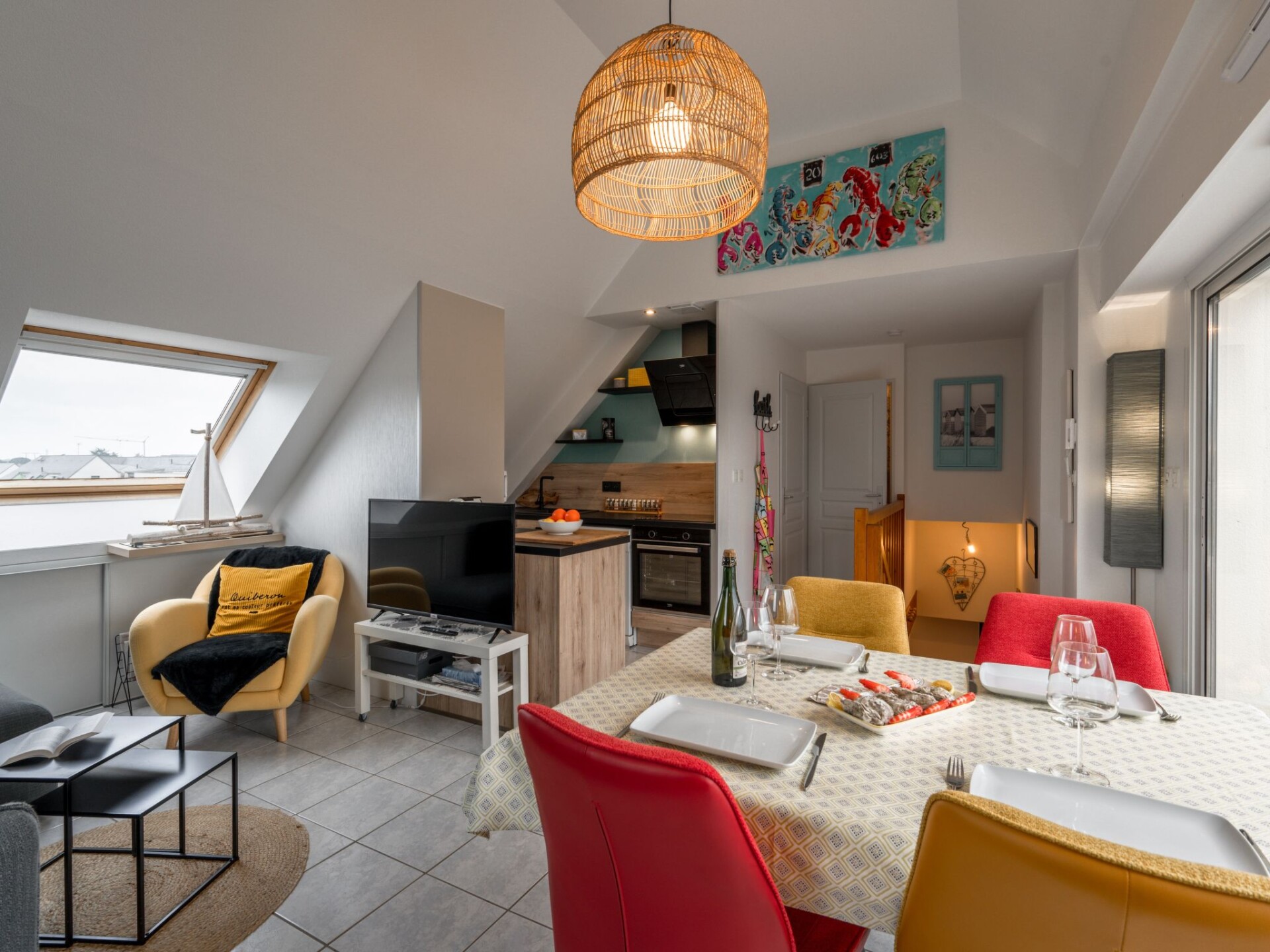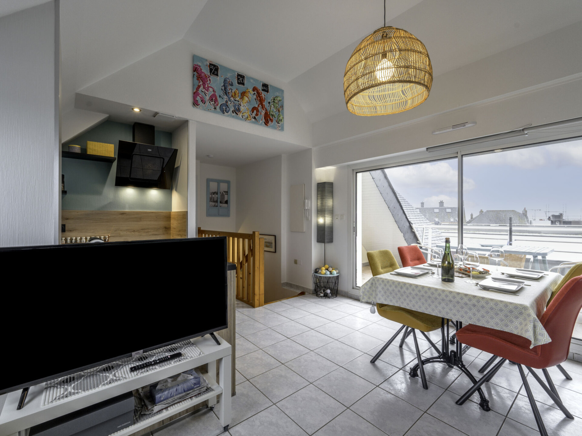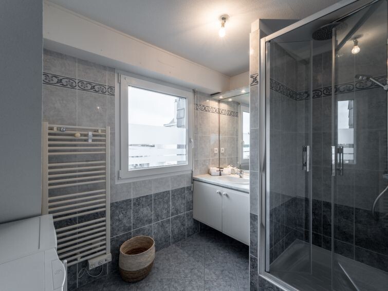 "Résidence Le Hoche", appartement 2-kamers 38 m2 op 2 verdiepingen op de 3e verdieping. Comfortabel ingericht: 1 kamer met 1 2-pers bed (1 x 140 cm, lengte 190 cm), TV en Flatscreen TV. Bovenverdieping: woon-/eetkamer met 1 2-pers divanbed (160 cm, lengte 200 cm), TV (Flatscreen TV). Uitgang naar het terras. Keuken (oven, afwasmachine, 3 inductiekookplaten, elektrische koffiemachine, pads voor de koffiemachine (NESPRESSO) extra, combimagnetron). Douche, aparte WC. Elektrische verwarming. Terras 12 m2, op het zuiden gelegen. Terrasmeubelen. Ter beschikking: wasmachine. Internet (WiFi, extra). Parkeerplaats. Rookmelders. 56186 000803 GR
