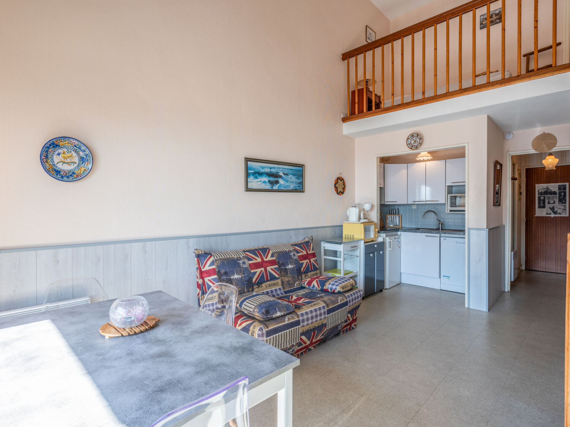 Maisonette 2-kamers 44 m2 op de 2e verdieping, op het zuiden gelegen. Comfortabel ingericht: woon-/eetkamer met panoramavenster met TV (Flatscreen TV). Kookhoek (oven, afwasmachine, 3 keramische glas kookplaten, waterkoker, magnetron, elektrische koffiemachine). Bad/WC. Bovenverdieping: doorloopkamer met 1 bed (90 cm, lengte 190 cm). 1 kamer met 1 2-pers bed (1 x 140 cm, lengte 190 cm). Balkon 3 m2, op het zuiden gelegen. Balkonmeubilair. Uitzicht op zee. Ter beschikking: wasmachine. Internet (WiFi, extra). Parkeerplaats. Maximaal 1 klein huisdier/hond toegestaan. Rookmelders. 56186 00052264