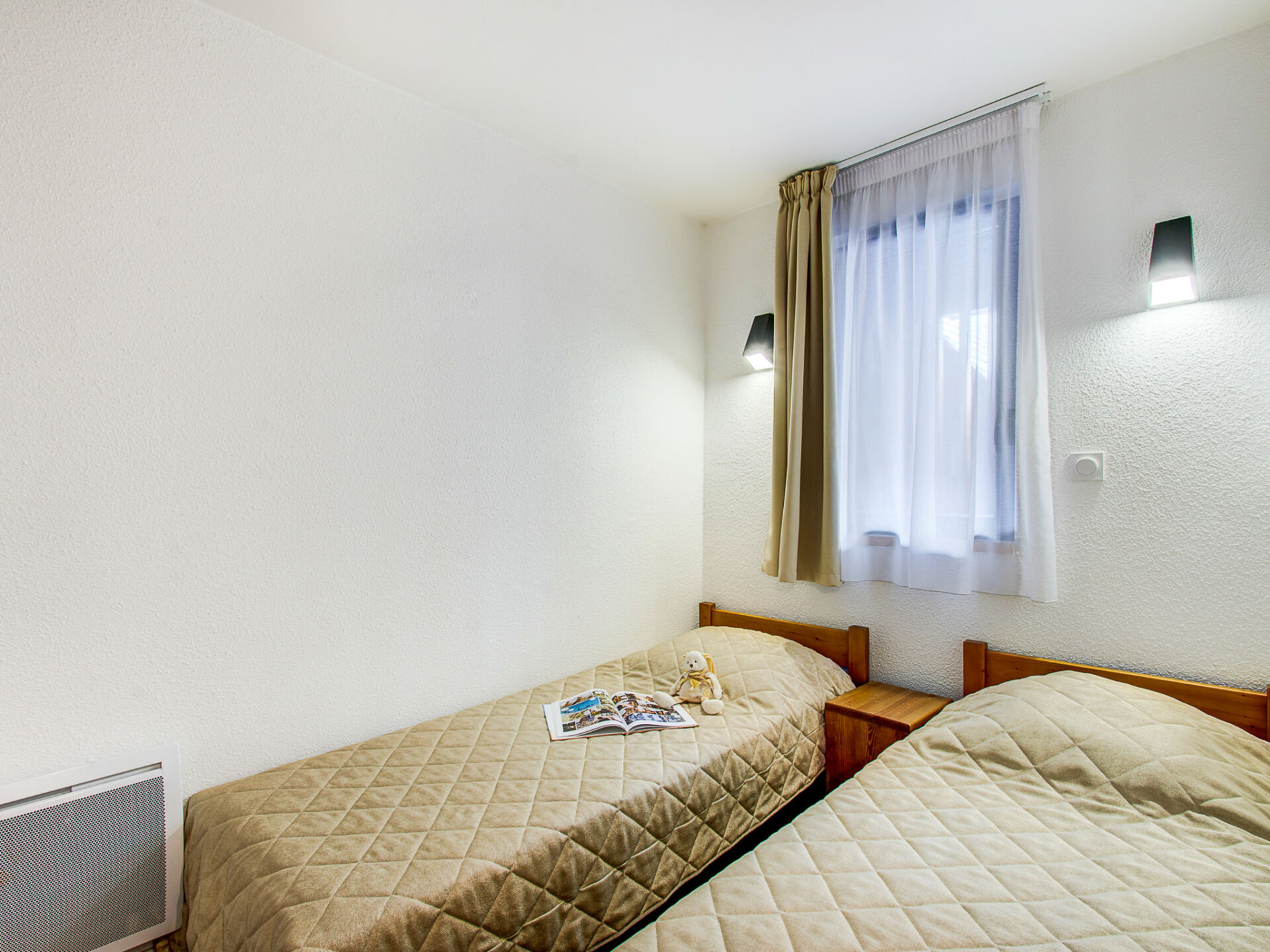 "Privilège/ Studio cabine 4 pers.", appartement 2-kamers 25 m2. Doelmatig ingericht: woon-/slaapkamer met 2 divanbedden en TV. Slaapnis met 1 x 2 stapelbedden. Kookhoek (afwasmachine, 2 keramische glas kookplaten, magnetron). Douche/WC. Elektrische verwarming. Balkon. Ter beschikking: Internet (WiFi). Maximaal 1 huisdier/hond toegestaan. In plaats van een afgesloten slaapkamer bevinden sommige slaapgedeeltes zich in een open ruimte (galerij, nis, etc.).