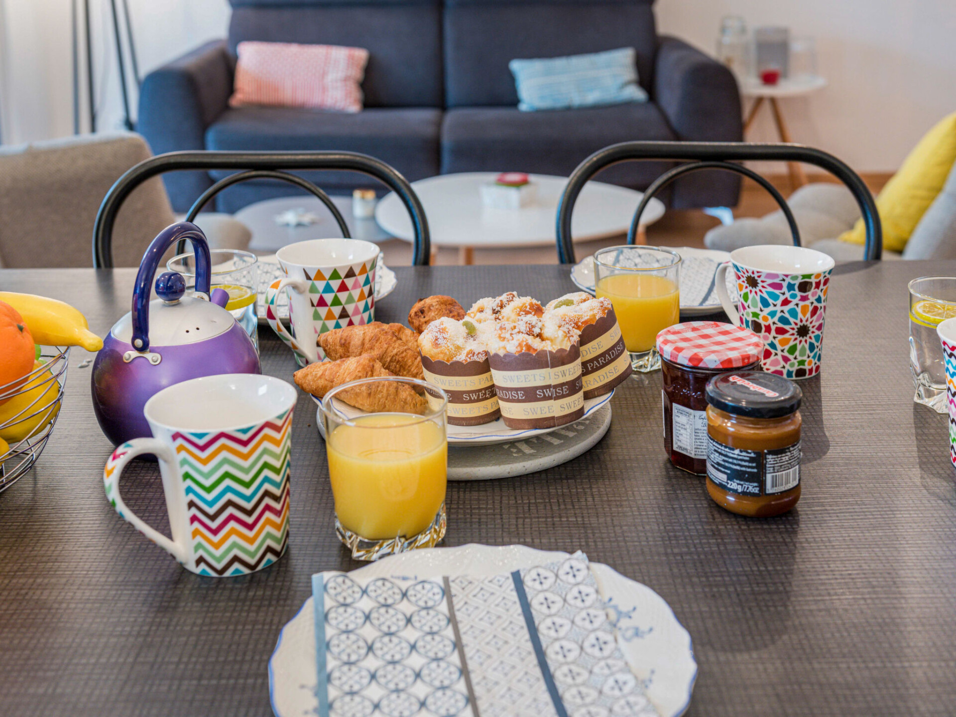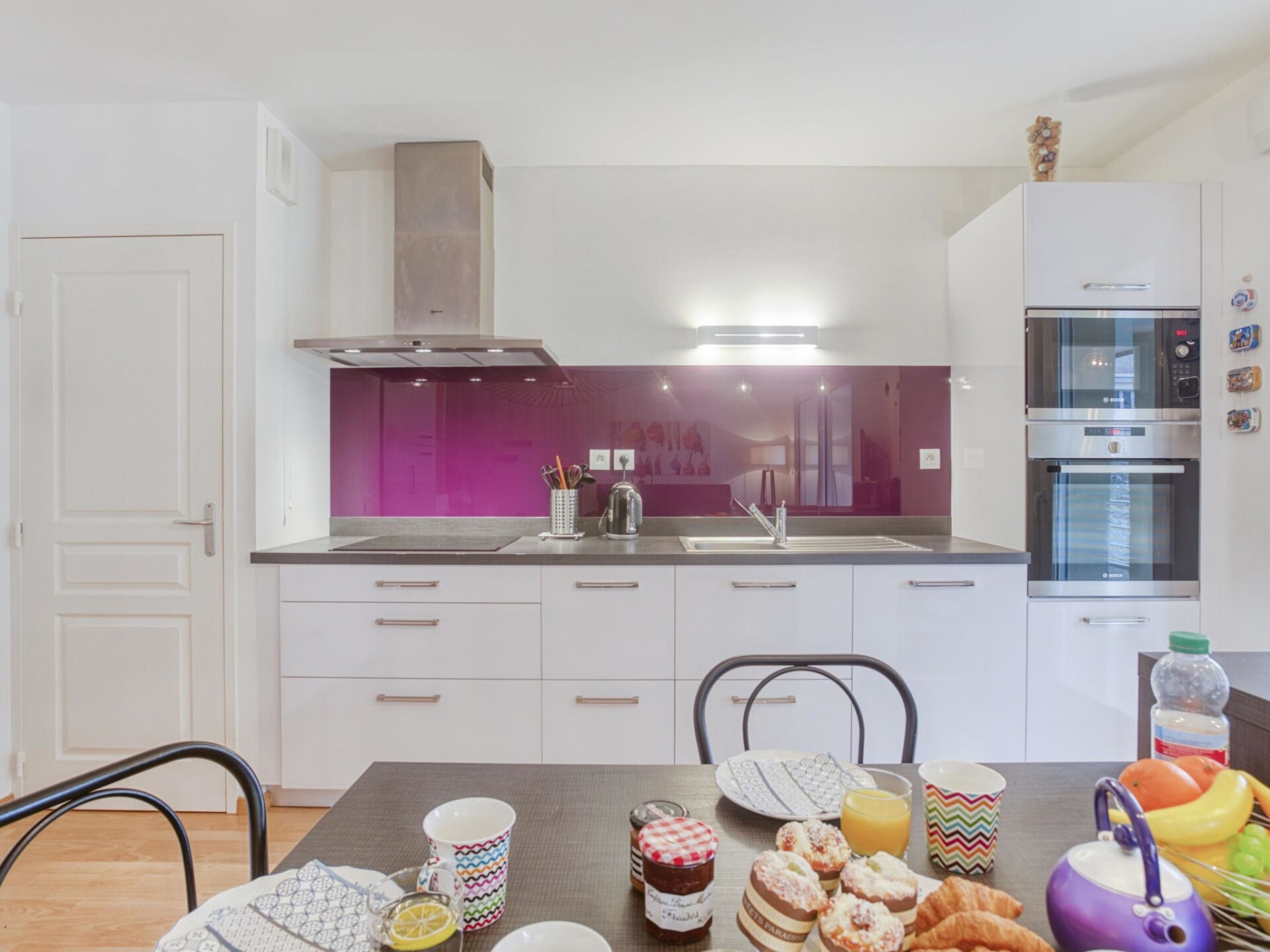Appartement 3-kamers 65 m2 op 2 verdiepingen op de 1e verdieping. Comfortabel ingericht: eetkamer met TV (Flatscreen TV). Uitgang naar het balkon. Open keuken (3-pits kookplaat, oven, afwasmachine, waterkoker, elektrische koffiemachine, pads voor de koffiemachine (NESPRESSO) extra, combimagnetron). Aparte WC. Bovenverdieping: 1 kamer met 2 bedden (90 cm, lengte 190 cm). Uitgang naar het balkon. 1 kamer met 1 2-pers bed (1 x 160 cm, lengte 190 cm). Uitgang naar het balkon. Douche. Elektrische verwarming. 2 balkons 12 m2. Balkonmeubilair. Ter beschikking: wasmachine. Internet (WiFi, gratis). Parkeerplaats nr. 4. Rookmelders. 56186 000099 OK