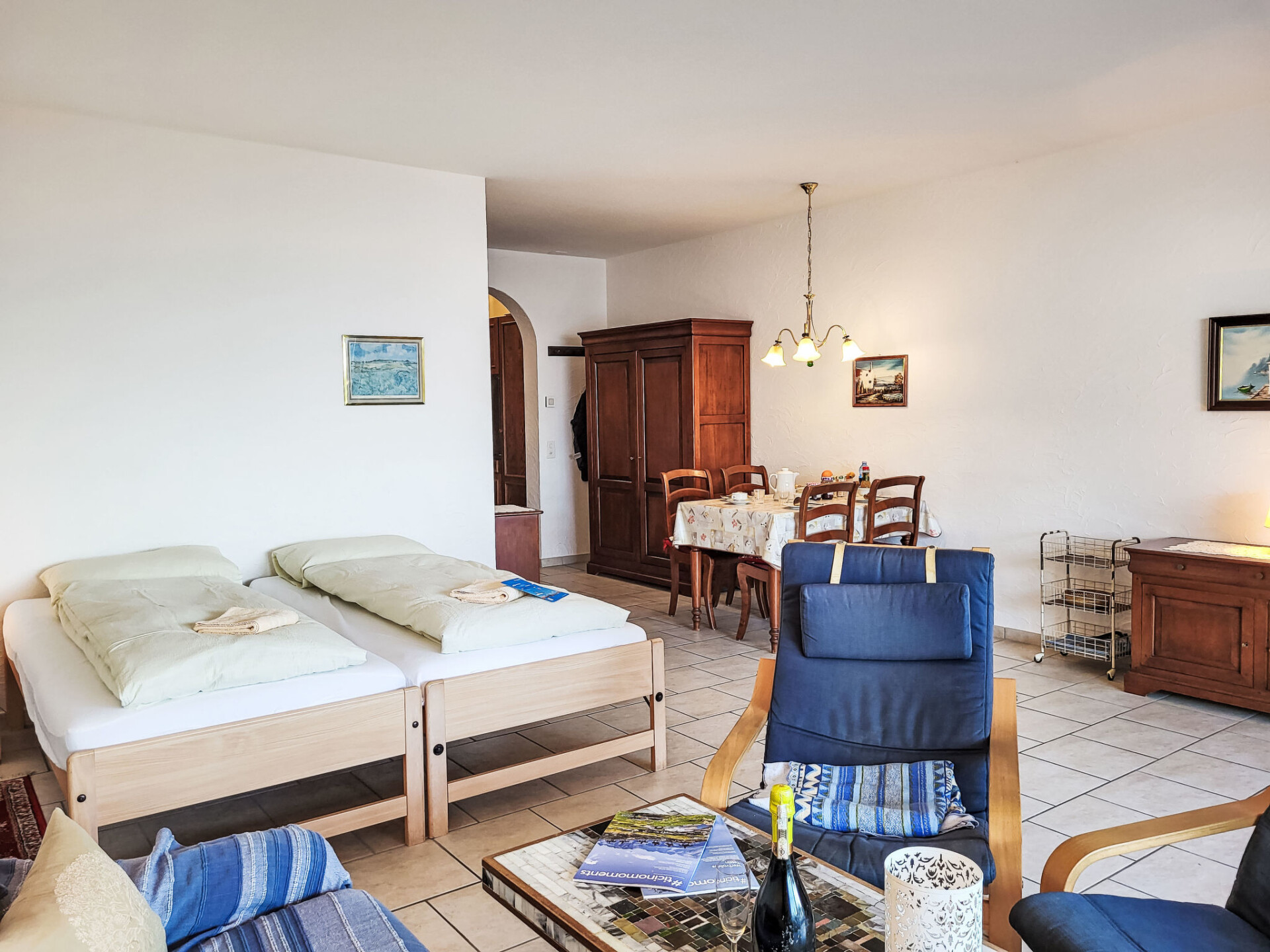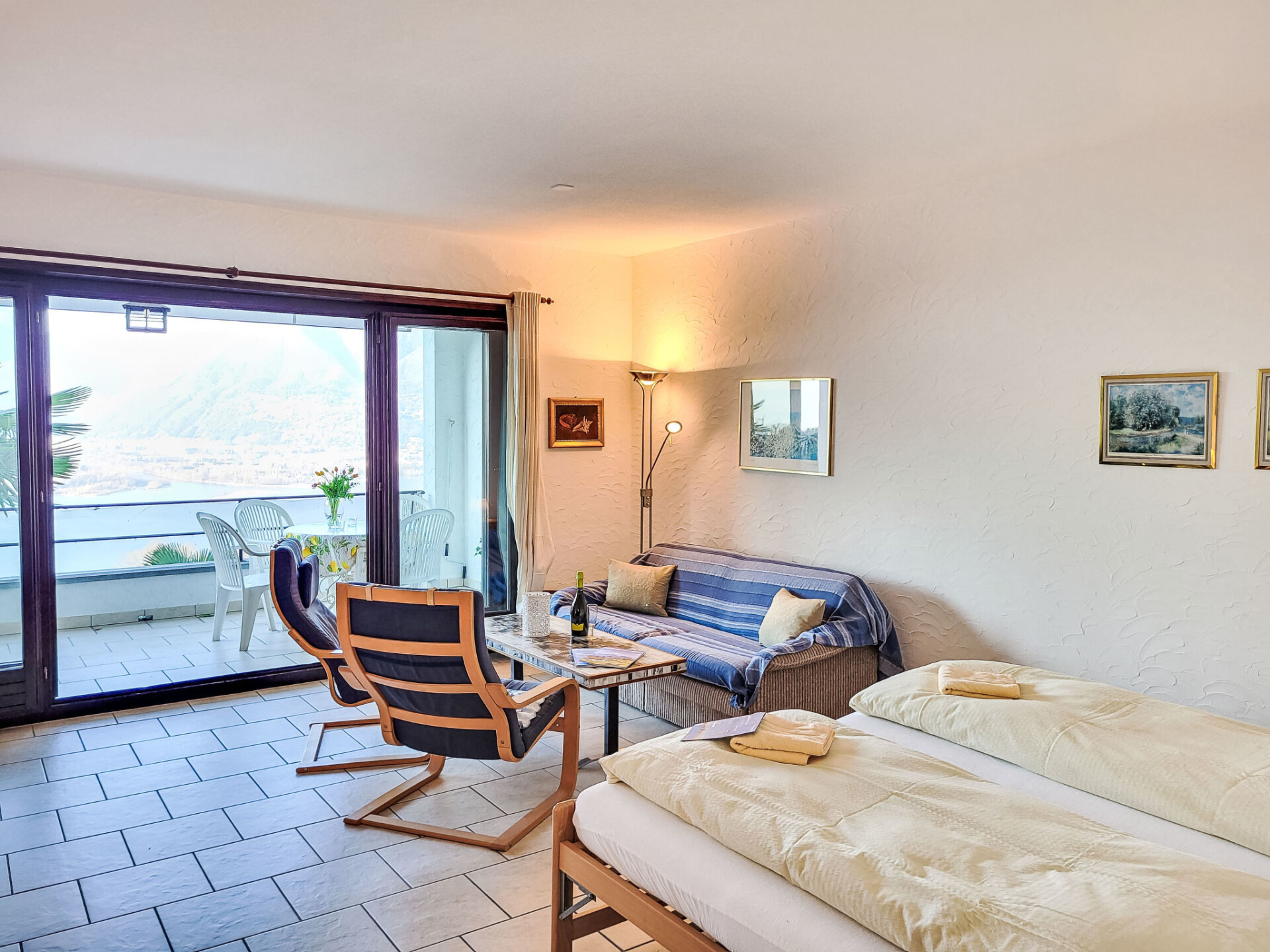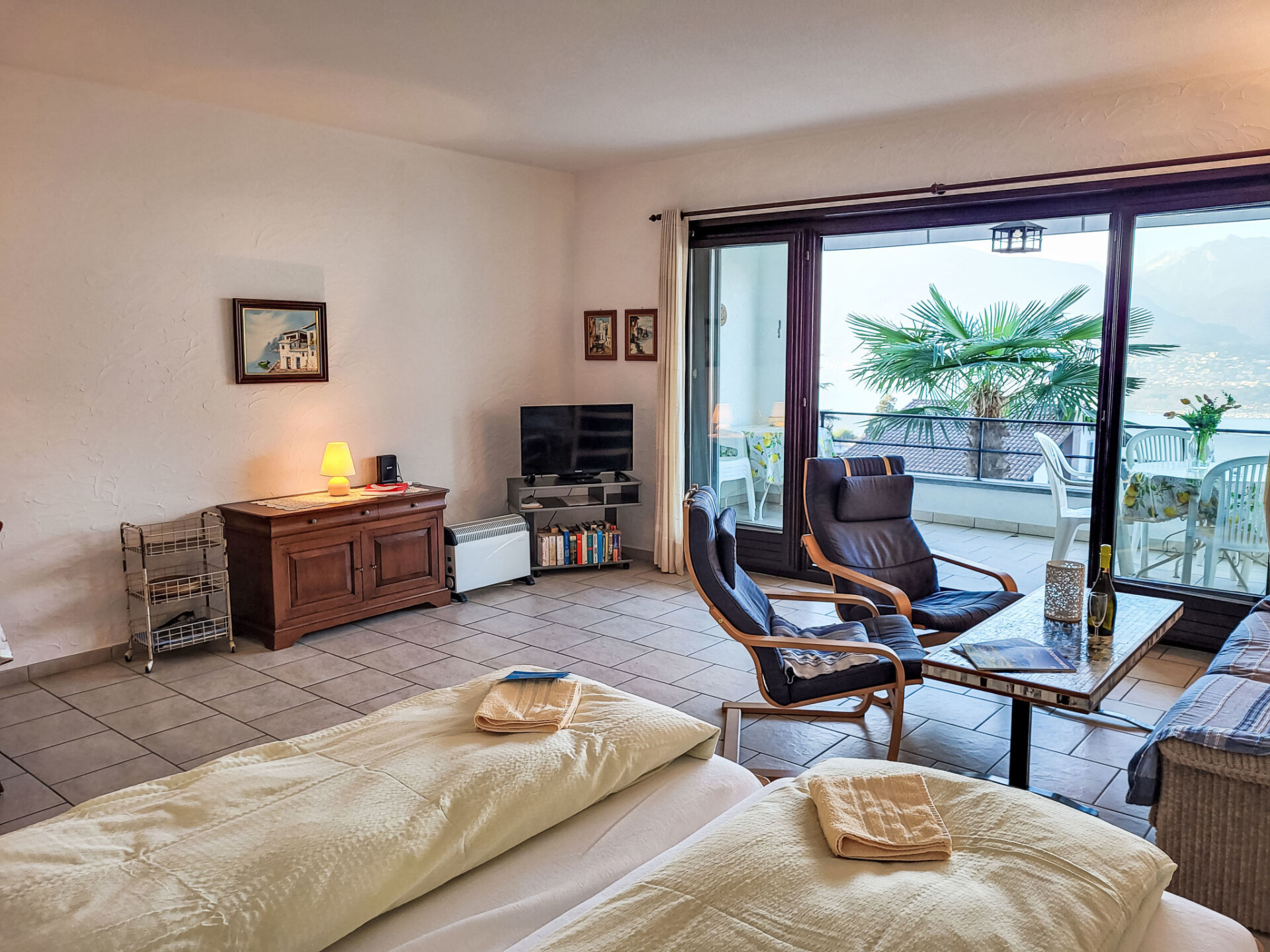 Piazzogna 19 km van Ascona: Moderne, comfortabele residentie "Miralago", omgeven door bomen en weiden. 4 huizen in de woning. 39 appartementen in de woning. Boven Vira (3 km), in het district Gambarogno, rustige, zonnige, verhoogde ligging tegen een helling, direct aan de bosrand, 3 km van het meer, aan een doodlopende weg, op het zuidoosten. Voor medegebruik: ligweide, openluchtzwembad hoekig verwarmd (170 - 170 cm diepte, seizoensgebonden beschikbaarheid: 15.Apr. - 15.Okt.) met trap en oprolbaar afdekscherm. Buitendouche, terras, tuinmeubelen. In het complex: receptie, salon, centrale verwarming, wasmachine (voor medegebruik, extra). Toegangsweg tot aan het huis het terrein. Parkeerplaats. Levensmiddelenwinkel, restaurant 300 m, bushalte 50 m. Midgetgolf 4.5 km, wandelroutes 100 m vanaf het huis. Attracties in de buurt: Parco Botanico, Piazzogna 300 m, Mercato Luino IT, Mercato Ponte Tresa IT, Bellinzona Unesco-Mercato, Swissminiature, Melide, Schokomuseum, Caslano. Bekende meren kunnen gemakkelijk worden bereikt: Lago Maggiore, Lago di Lugano, Lago di Como, Lago Orta. Wandelgebied Gambarogno, Indemini, Monte Tamaro und Splash and SPA, Rivera, Locarno - Ascona Cardada. De vier karakteristieke Tessiner huizen beschikken over een prachtig panorama over het meer. Per appartement is 1 parkeerplaats gratis, elke volgende kost CHF 35.00/week.