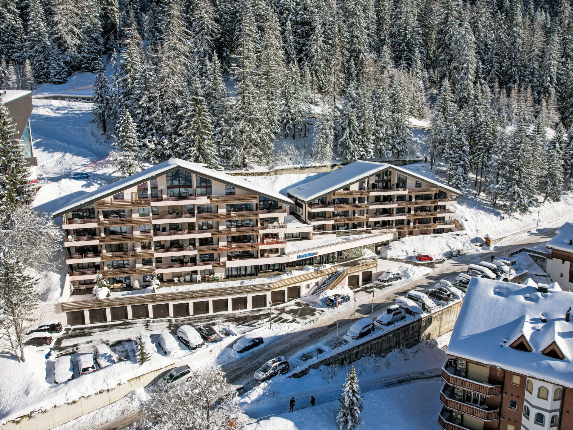 Residentie "Ringstrasse (Utoring)". In de plaats, 500 m van het centrum, 20 m van het skigebied. In het huis: bar, salon, tafeltennis, speelkamer, lift, bergruimte voor fietsen, berging voor ski's, centrale verwarming, wasmachine, droger (extra). Broodjesservice en drankjesservice. Toegangsweg tot aan het huis (bergweg). In de winter sneeuwkettingen aanbevolen, 's winters 4x4 aanbevolen. Parkeerplaats bij het huis, Openbare parkeergarage op 50 m, extra. Levensmiddelenwinkel, supermarkt, restaurant 500 m, bushalte "Leukerbad, Bristol" 250 m, openluchtzwembad 500 m, thermaalbad 300 m. Tennis 500 m, kabelbaan, kabelbaan op, ski faciliteiten, skipisten 20 m, rodelbaan, langlaufloipe 500 m, ijsbaan 1 km. Bekende skigebieden kunnen gemakkelijk worden bereikt: Leukerbad Torrent 20 m. Wandelgebied Gemmi 1 km. Het huis staat op een beboste helling op het zuidwesten, direct naast de Torrent-kabelbanen. Slechts een korte trappenweg scheidt het huis van het dalstation. Parkeermogelijkheid: in de winter parkeerplaats CHF35.00/week, garage CHF 70.00/week, in de zomer parkeerplaats gratis, garage CHF 35.00/week.