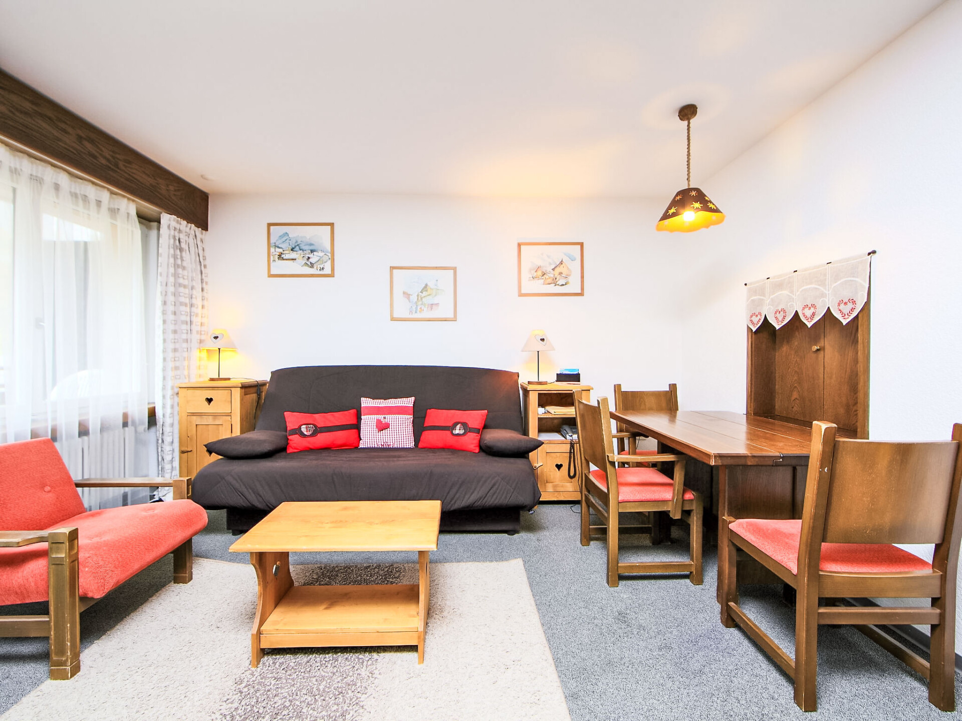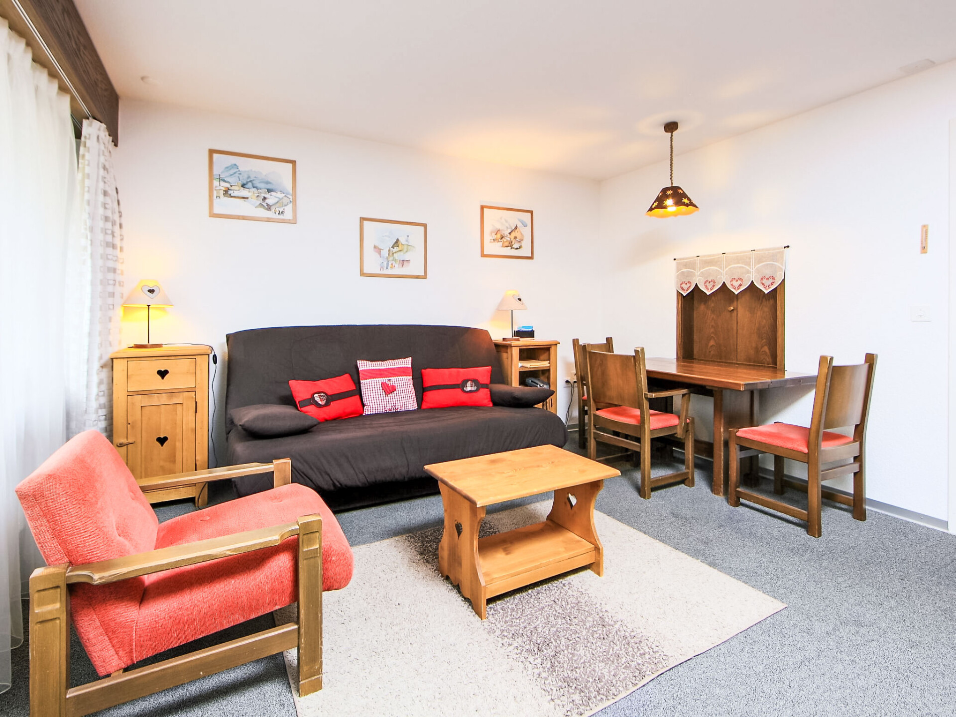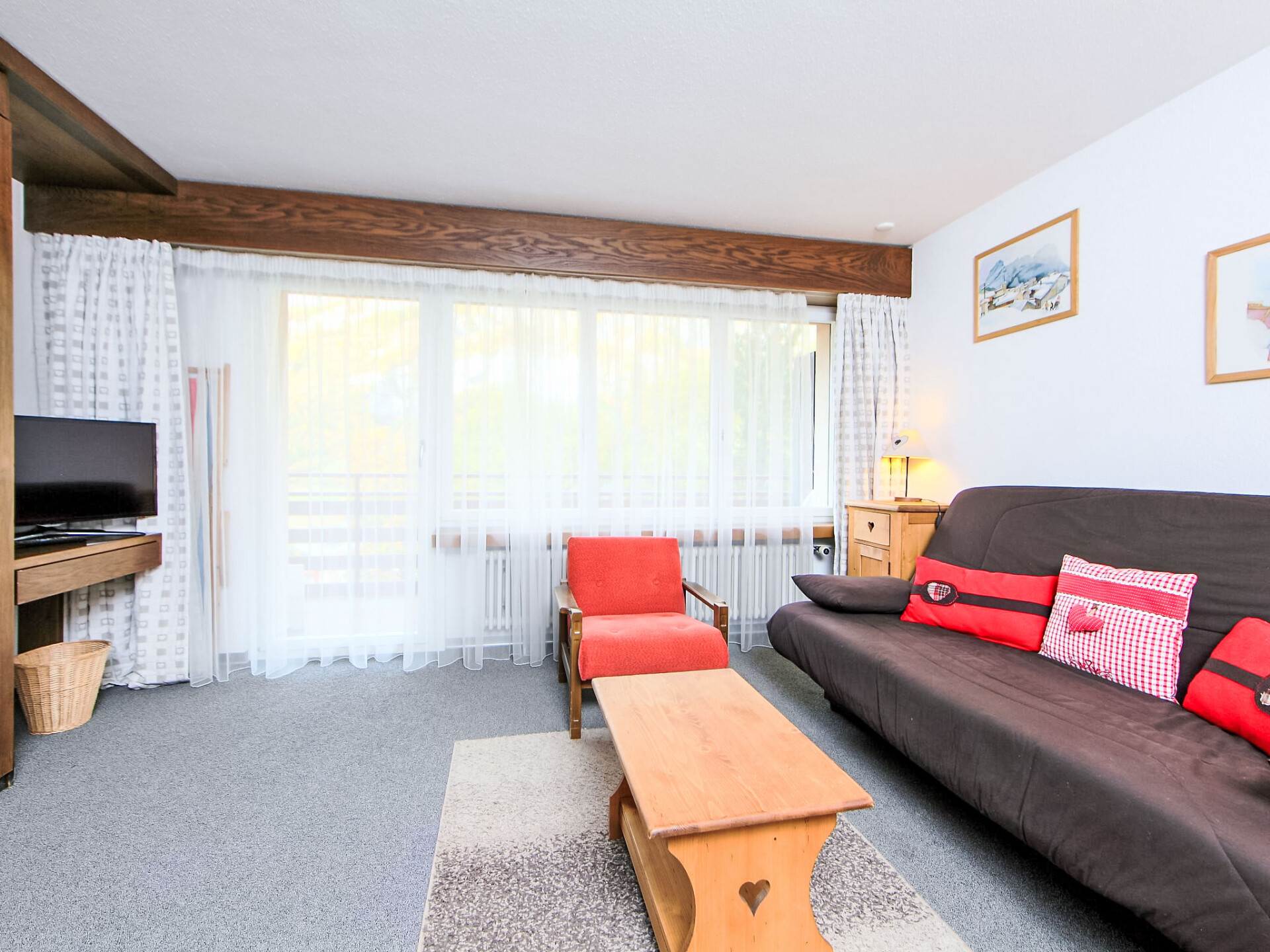 "Ringstrasse Apt 115", appartement 1-kamer 43 m2 op de 1e verdieping. Doelmatig en gezellig ingericht: woon-/eetkamer met 2 kastbedden, TV en Kabel-TV (Flatscreen TV). Uitgang naar het balkon. Keuken (oven). Bad/WC. Balkon. Balkonmeubilair. Mooi uitzicht op de bergen, het landschap en de plaats. Ter beschikking: Internet (WiFi, gratis). Niet rokers woning.