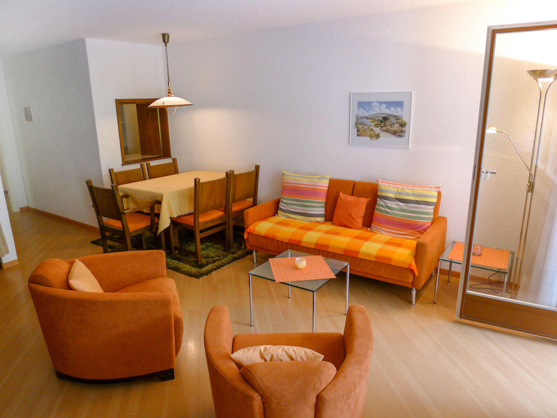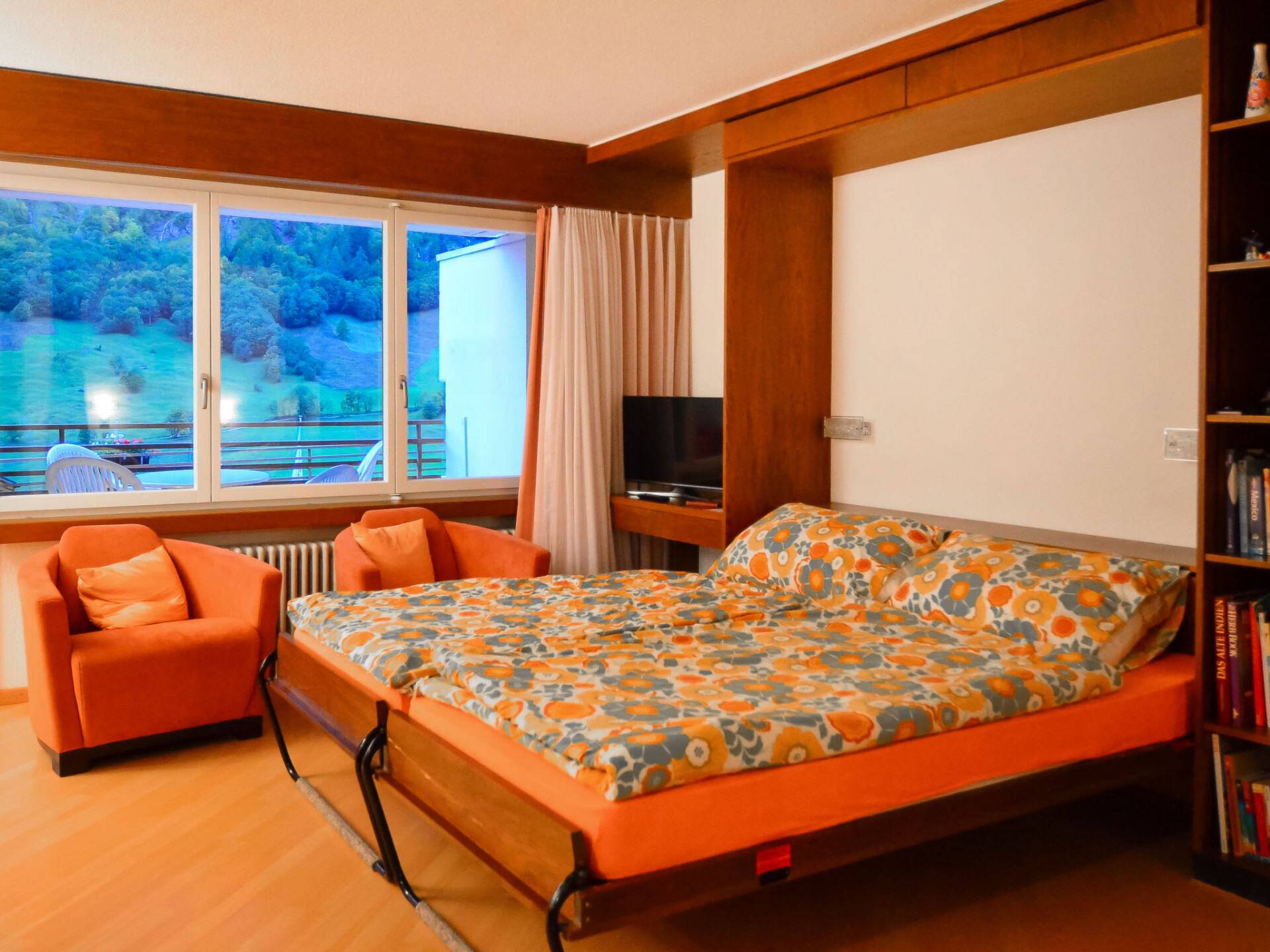 "Ringstrasse Apt 126", appartement 1-kamer 51 m2 op de 1e verdieping. Doelmatig en gezellig ingericht: woon-/eetkamer met 2 kastbedden en Kabel-TV (Flatscreen TV). Uitgang naar het terras. Slaapnis met gordijn met 2 bedden. Keuken (3-pits kookplaat, oven, broodrooster, waterkoker, elektrische koffiemachine, pads voor de koffiemachine (Nespresso) extra, raclette oven, fondue Set (kaas)) met doorgeefluik. Bad/WC, aparte WC. Terras 10 m2, op het zuidwesten gelegen. Terrasmeubelen. Mooi uitzicht op de bergen, het landschap en de plaats. Ter beschikking: kinderbed (extra). Internet (WiFi, gratis). Niet rokers woning. Maximaal 1 huisdier/hond toegestaan. In plaats van een afgesloten slaapkamer bevinden sommige slaapgedeeltes zich in een open ruimte (galerij, nis, etc.).