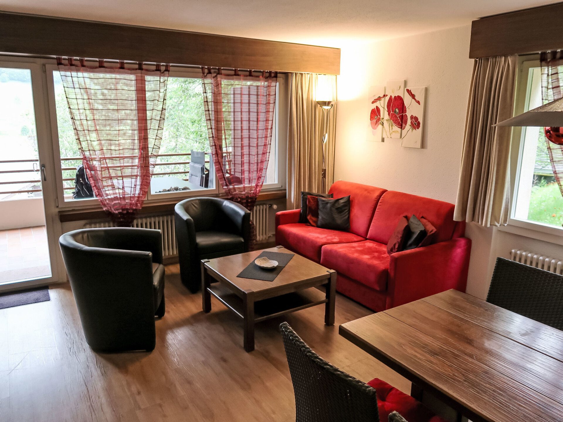 "Ringstrasse Apt 216", appartement 2-kamers 58 m2 op de 2e verdieping. Gerenoveerd in 2022, mooi en gezellig ingericht: woon-/eetkamer met 2 kastbedden en Kabel-TV (Flatscreen TV). 1 2-pers. kamer. Keuken (oven, afwasmachine, 4 keramische glas kookplaten, broodrooster, waterkoker, magnetron, elektrische koffiemachine, pads voor de koffiemachine (Nespresso) extra). Bad/WC, aparte WC. Balkon. Terrasmeubelen. Uitzicht op de bergen en het dal. Ter beschikking: Internet (WiFi, gratis). Niet rokers woning. Maximaal 1 huisdier/hond toegestaan.