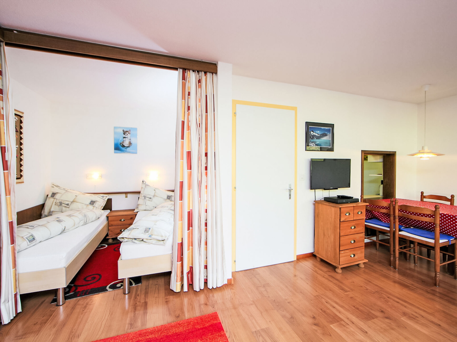 "Ringstrasse Apt 312", appartement 1-kamer 50 m2 op de 3e verdieping. Doelmatig ingericht: woon-/eetkamer met 2 kastbedden en Kabel-TV (Flatscreen TV), stereo-installatie. Slaapnis met gordijn met 2 bedden. Keuken (3-pits kookplaat, oven, elektrische koffiemachine, pads voor de koffiemachine (Nespresso) extra). Bad/WC. Balkon. Terrasmeubelen. Uitzicht op de bergen en het dal. Ter beschikking: Internet (WiFi, gratis). Niet rokers woning.